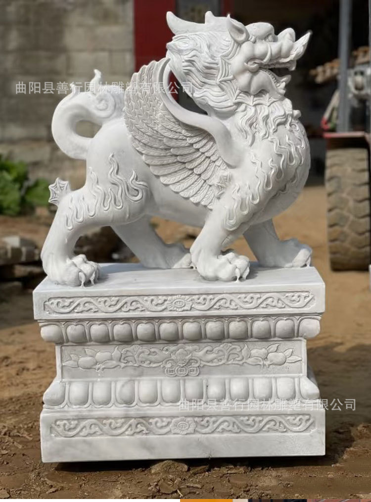 Большая каменная резьба по камню, белый мраморный, мраморный Кирин Вилла Компания Каменное украшение перед отелем