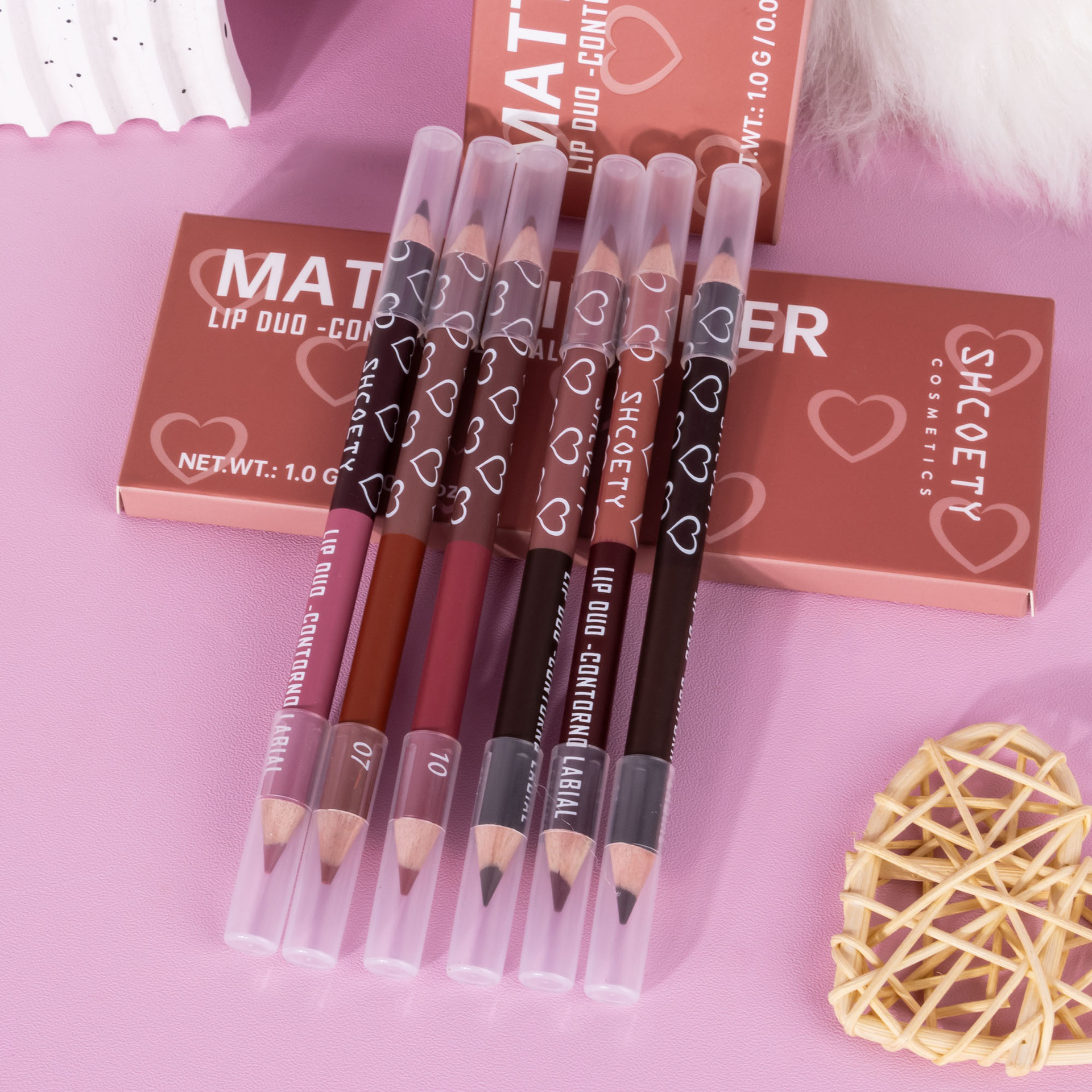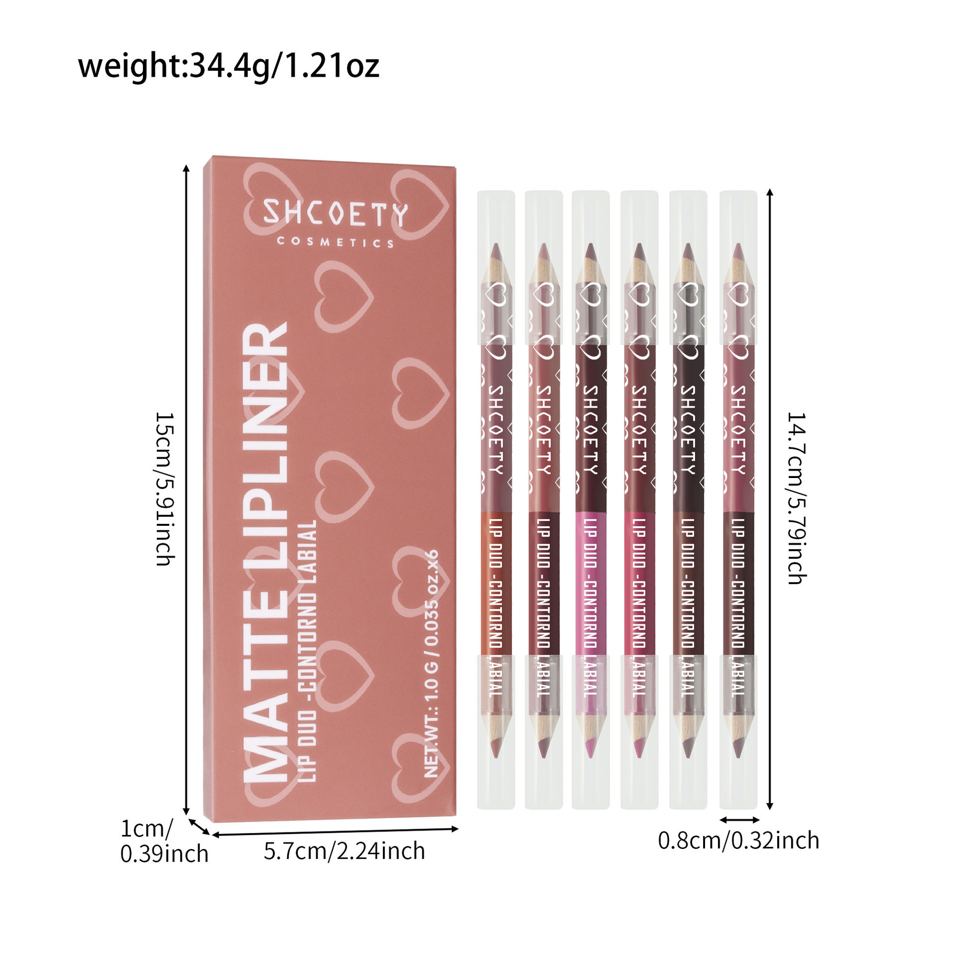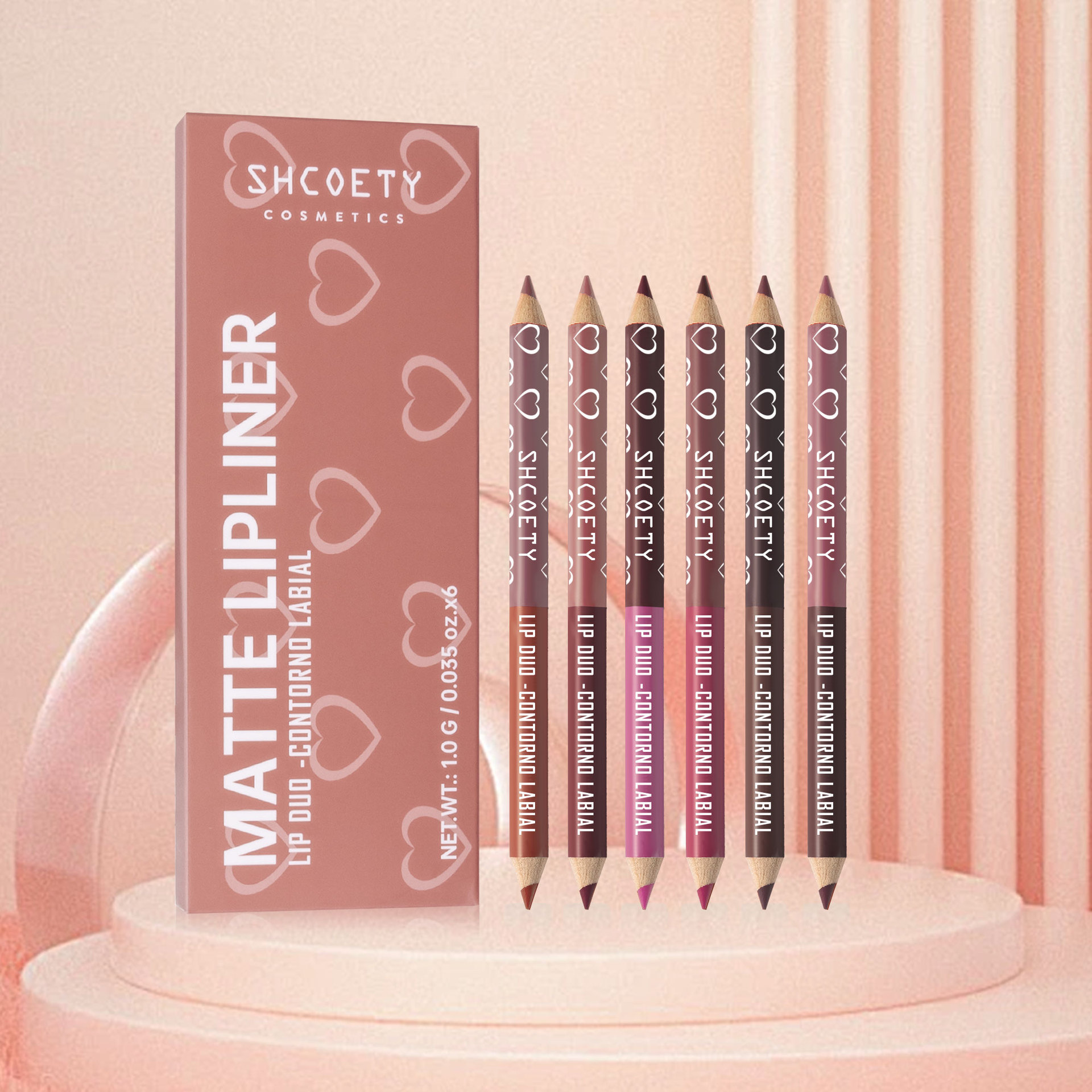 SHCOETY трансграничный 6 деревянный стержень для губной подводки двухголовый двухцветный матовый, долговечный, легко окрашивает неприлипая чашки