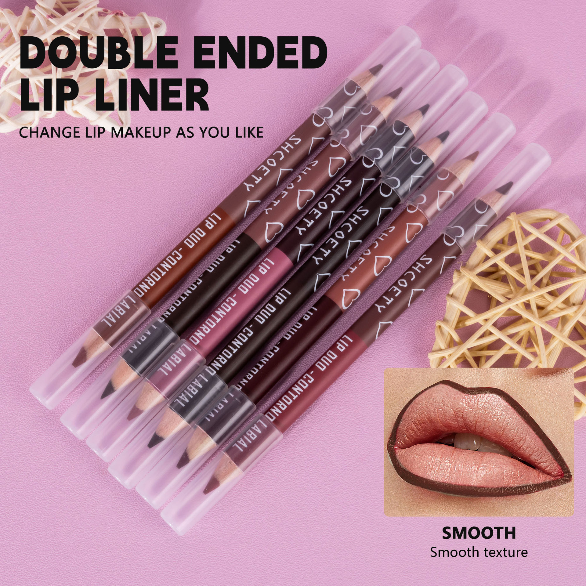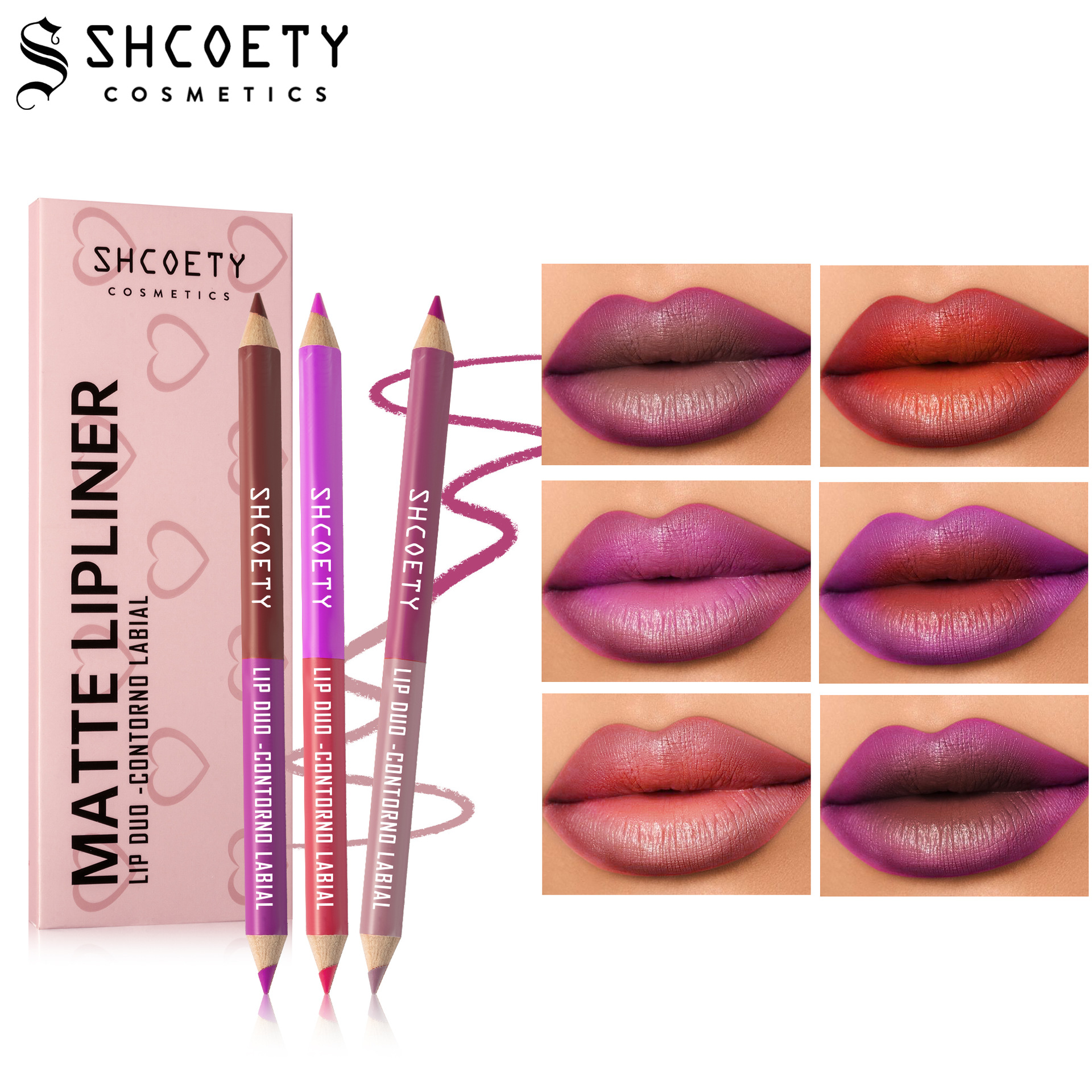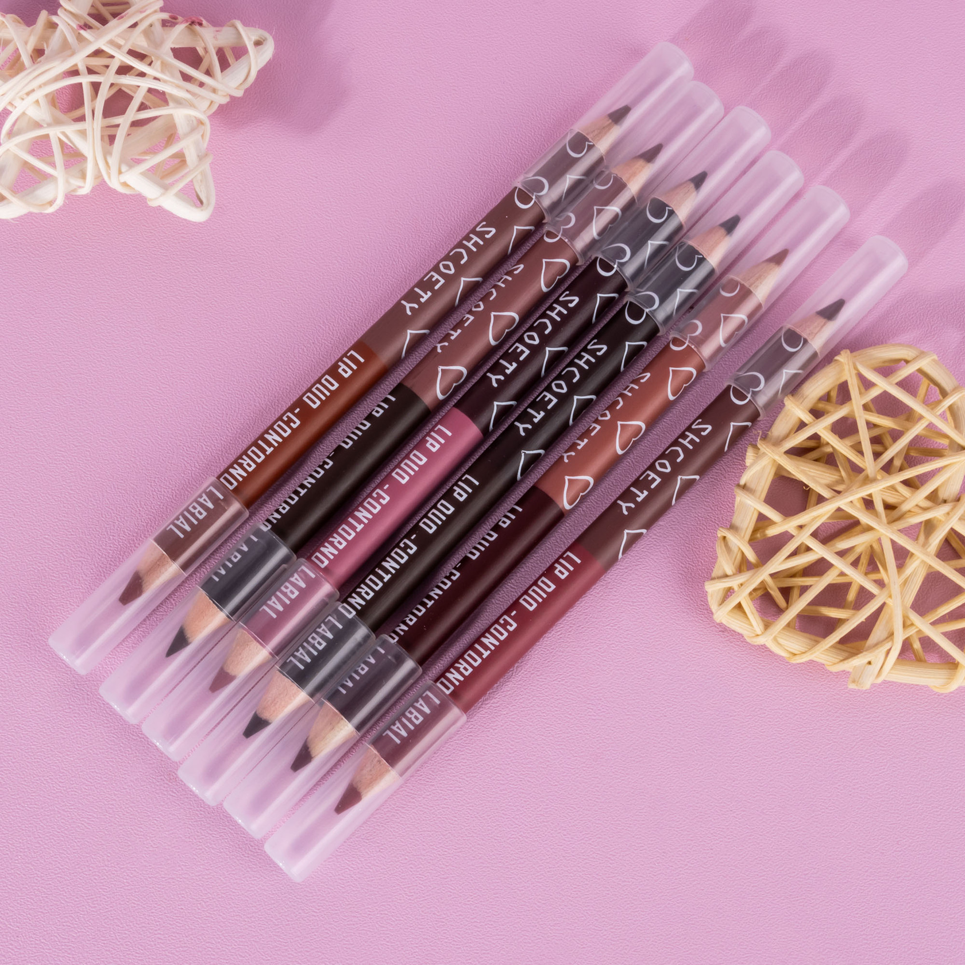 SHCOETY трансграничный 6 деревянный стержень для губной подводки двухголовый двухцветный матовый, долговечный, легко окрашивает неприлипая чашки