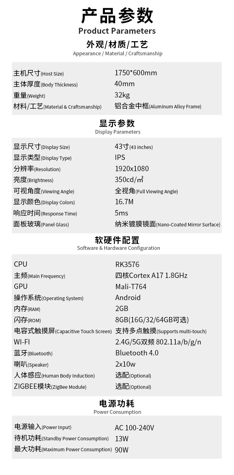 Умное волшебное зеркало 43inch с сенсорным экраном, настенное/напольное, для занятий спортом, йогой, фитнесом, танцами, с ИИ-тренером, трансграничная кастомизация