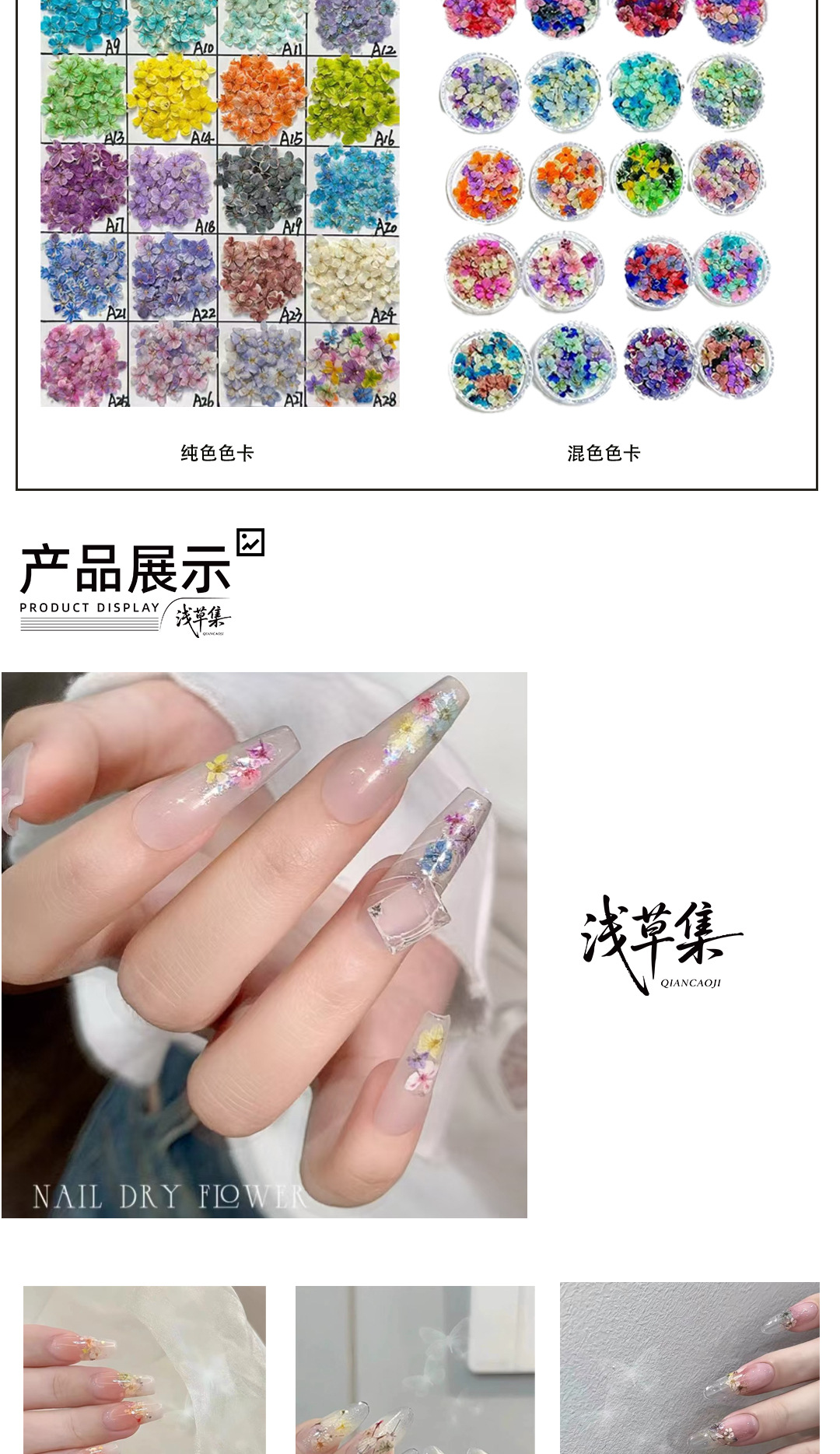 Японский стиль мини-маникюр сухой цветок натуральный цветок