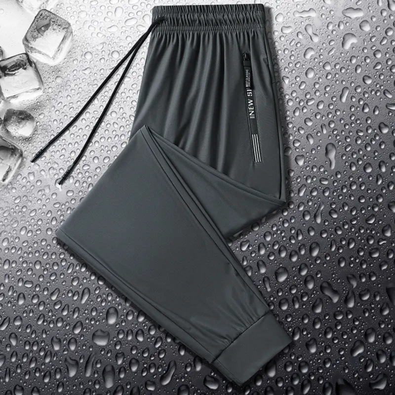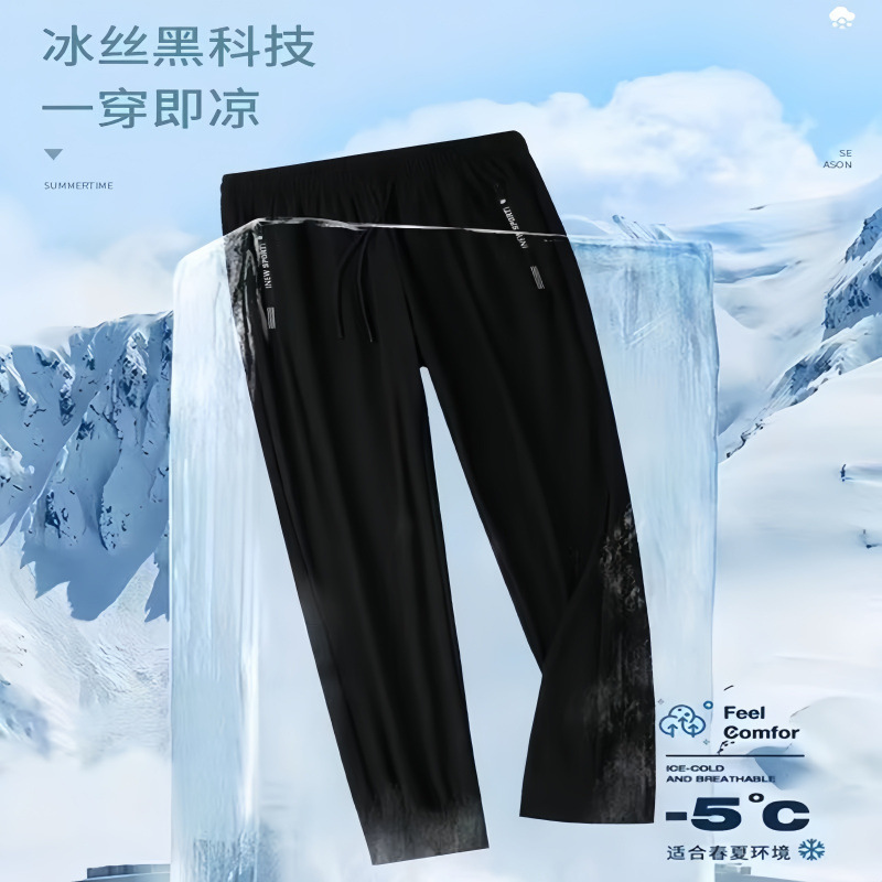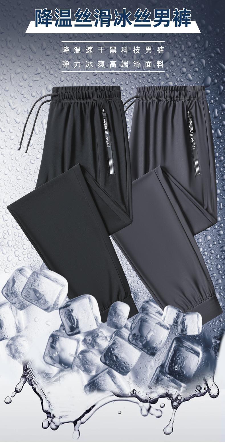 [Частный эксклюзивный] Мужчины и женщины с одной и той же модели с прохладным ледяным шелком с высокой застежкой-молнией повседневные брюки с прямой трубкой на выбор
