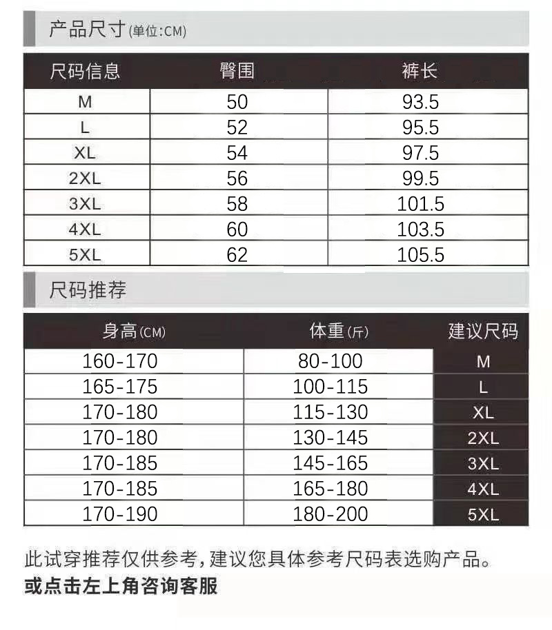 М(【Рекомендация 40-50kg ]; L(【Рекомендация 50-57.5kg 】); XL ([Рекомендуется 57.5-65kg]); 2XL ([рекомендуется 65-72.5kg]); 3XL ([рекомендуется 72.5-80kg]); 4XL ([рекомендуется 80-90kg]); 5XL ([Рекомендуется 90-100kg])