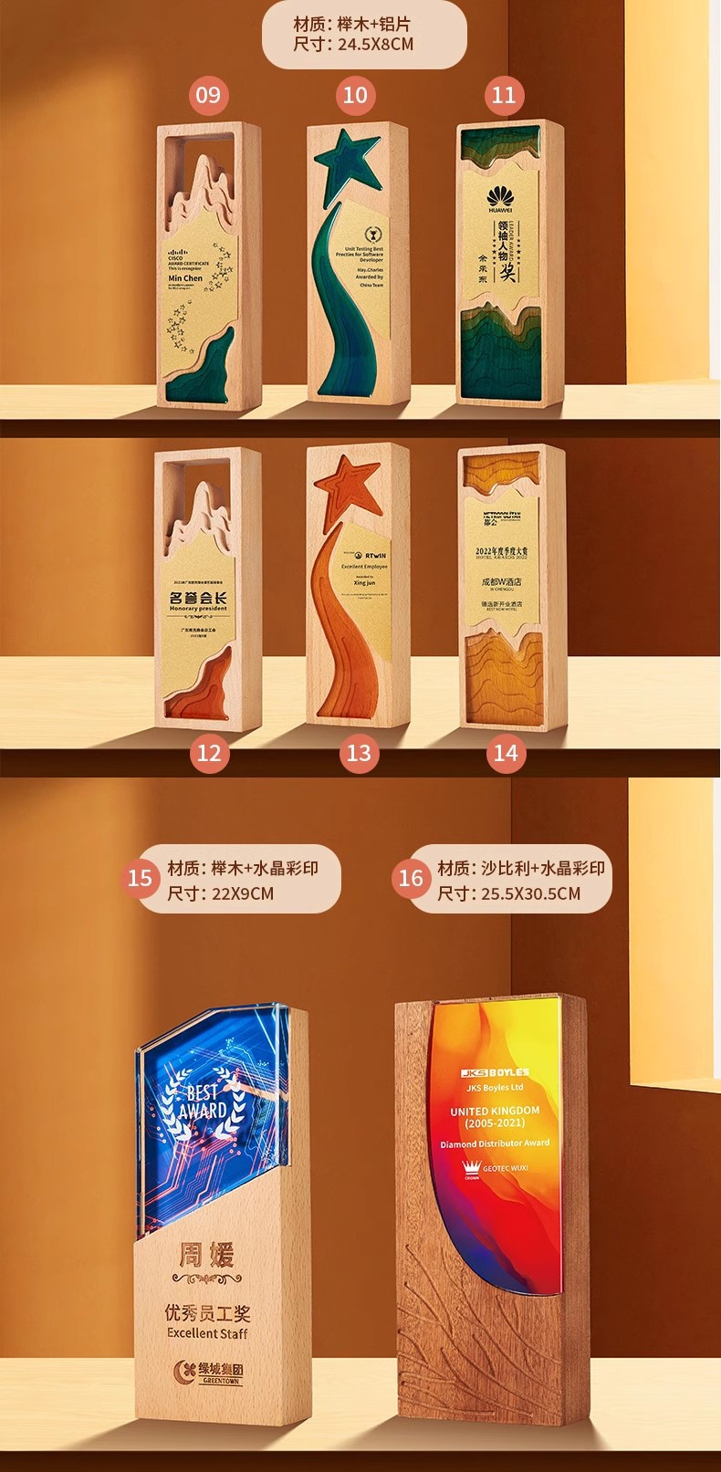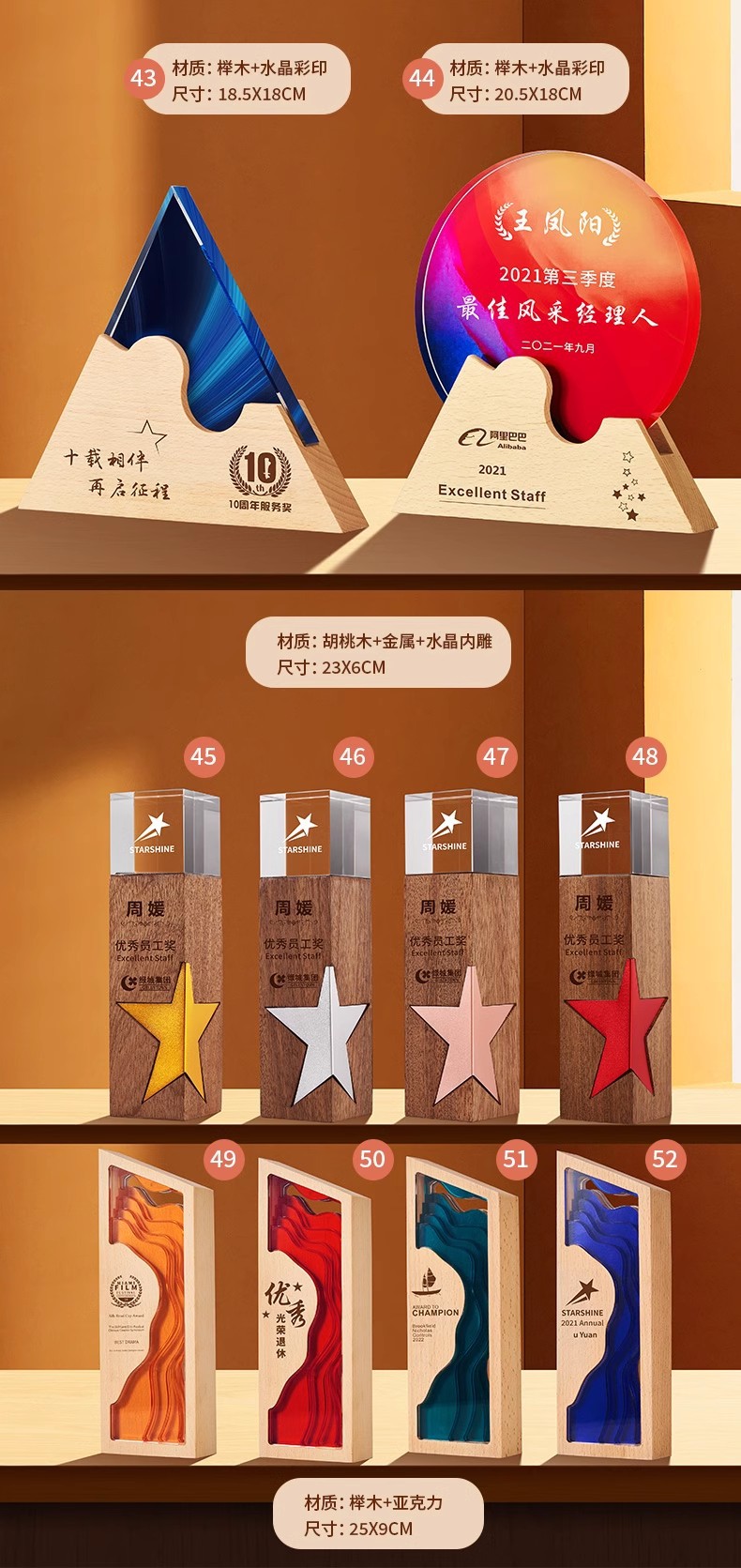 Индивидуальная деревянная наградная табличка в форме пятиконечной звезды для поощрения выдающихся дилеров, награда на ежегодном корпоративном собрании, памятная гравировка.