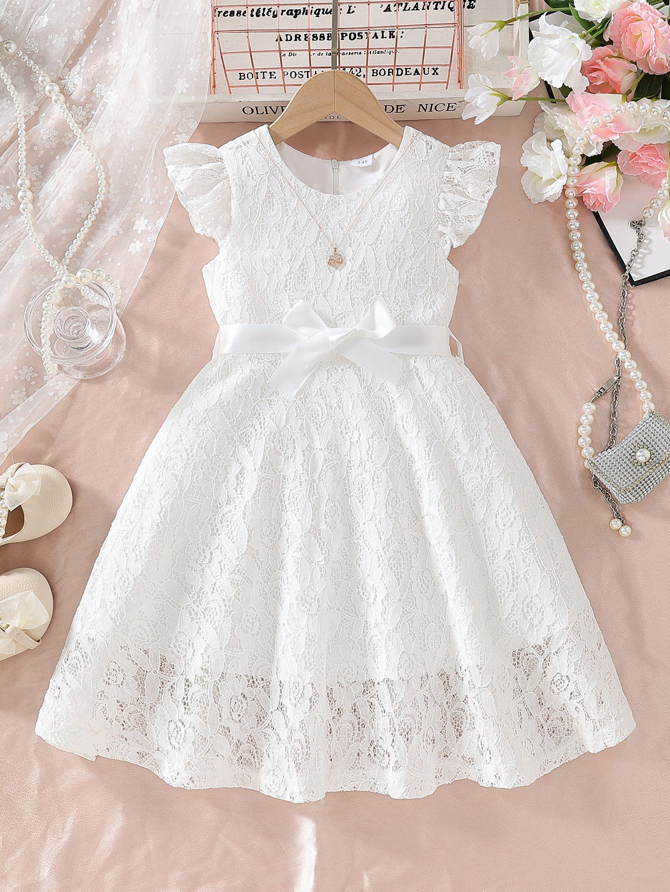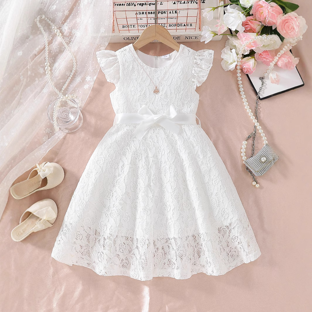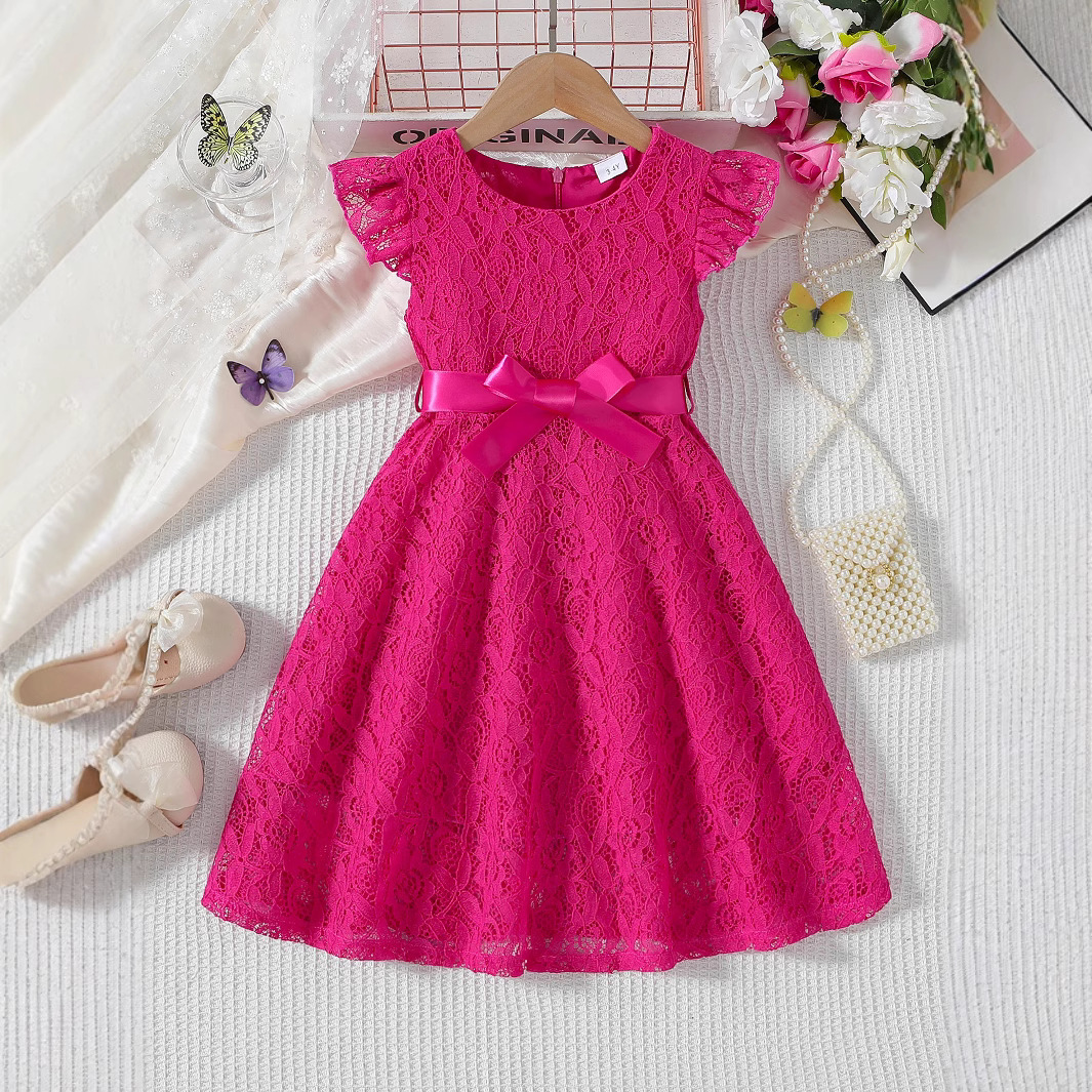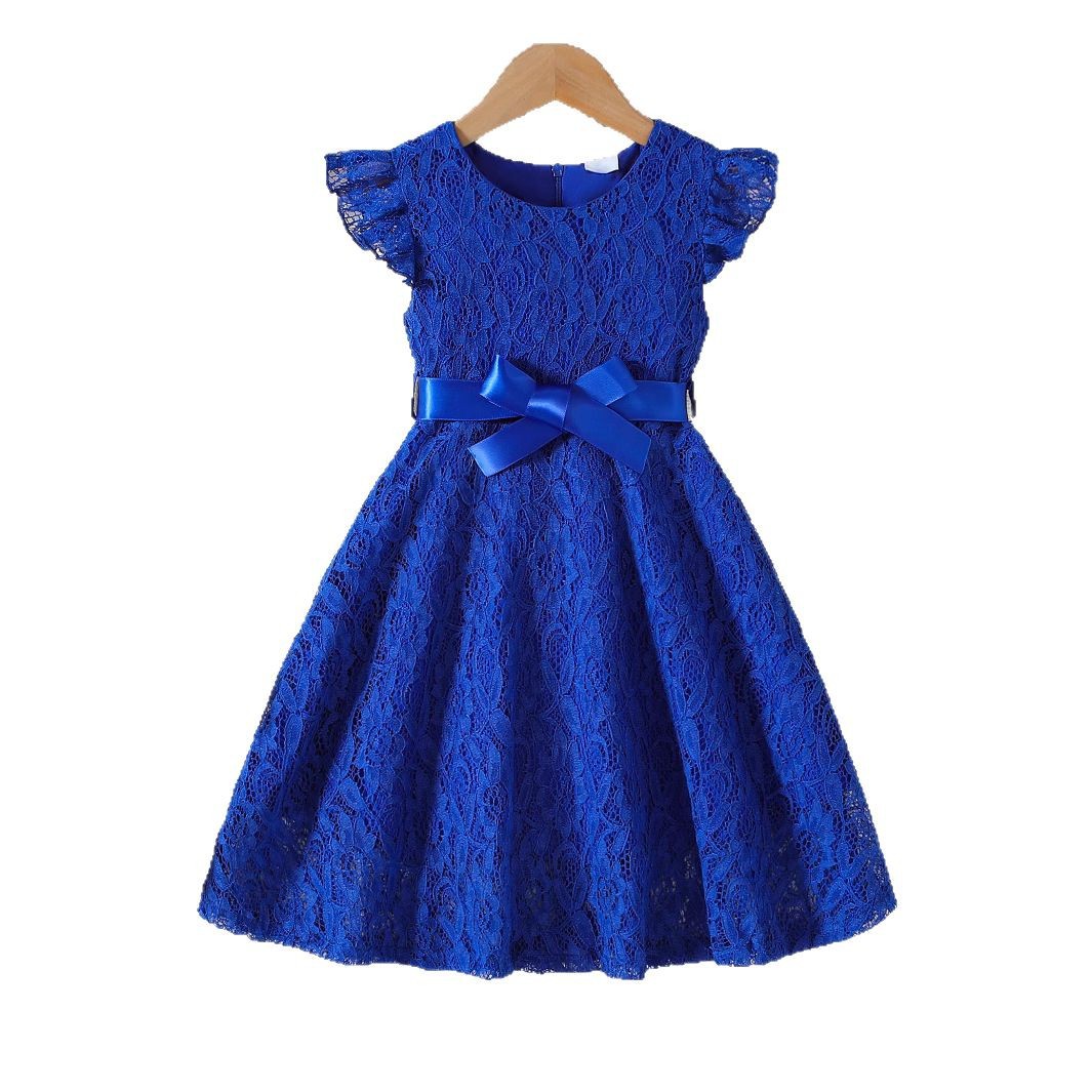 Amazon трансграничная детская одежда оптом для девочек элегантный сплошной цвет кружевное платье для фортепиано свадебное шоу с поясом