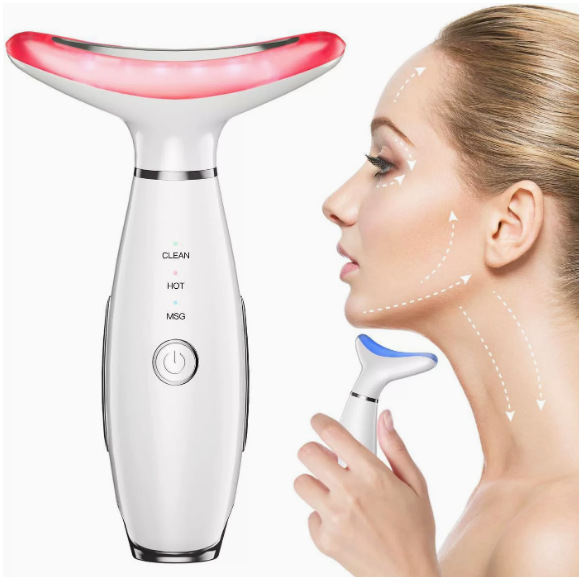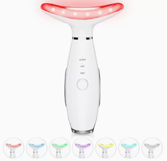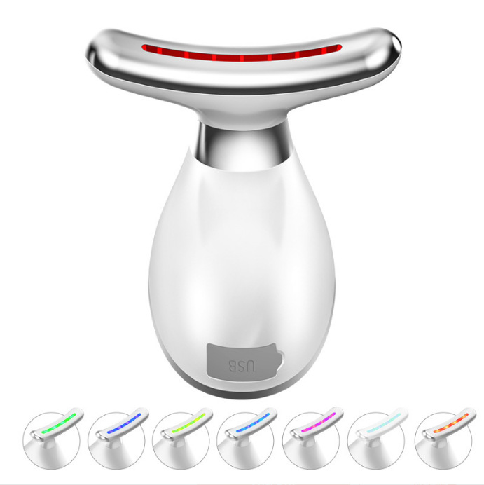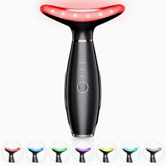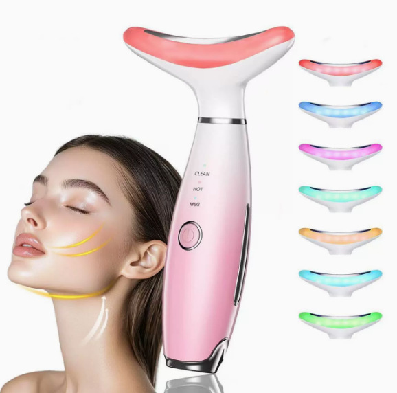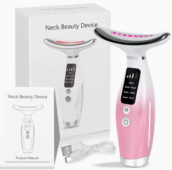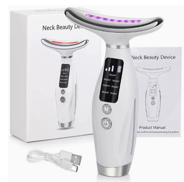 Новинка для трансграничной торговли: микротоковый прибор для красоты шеи для домашнего использования, семицветный световой прибор для ухода за лицом, вибрационный массажер EMS.