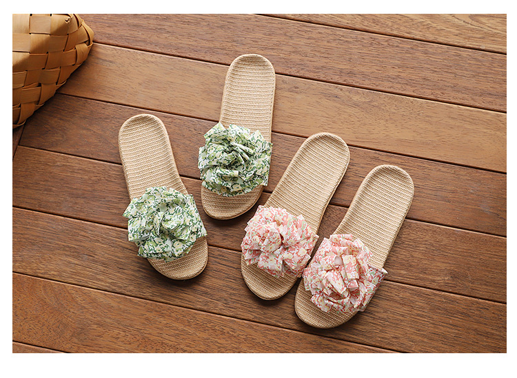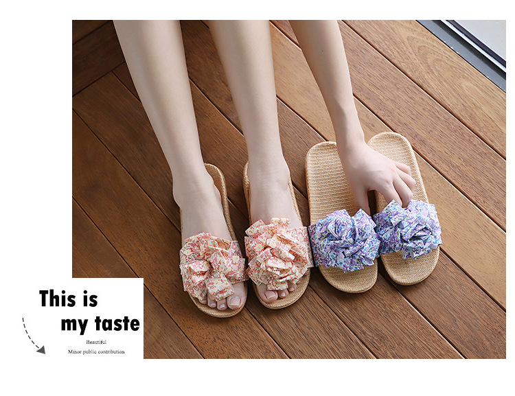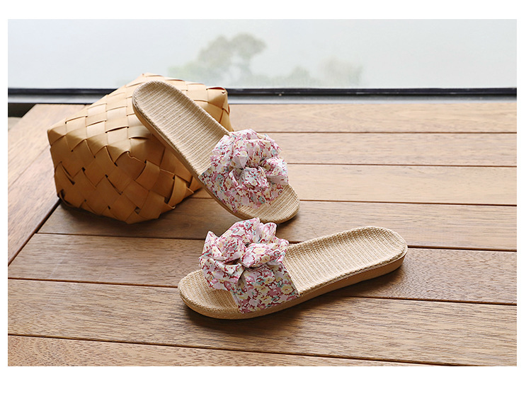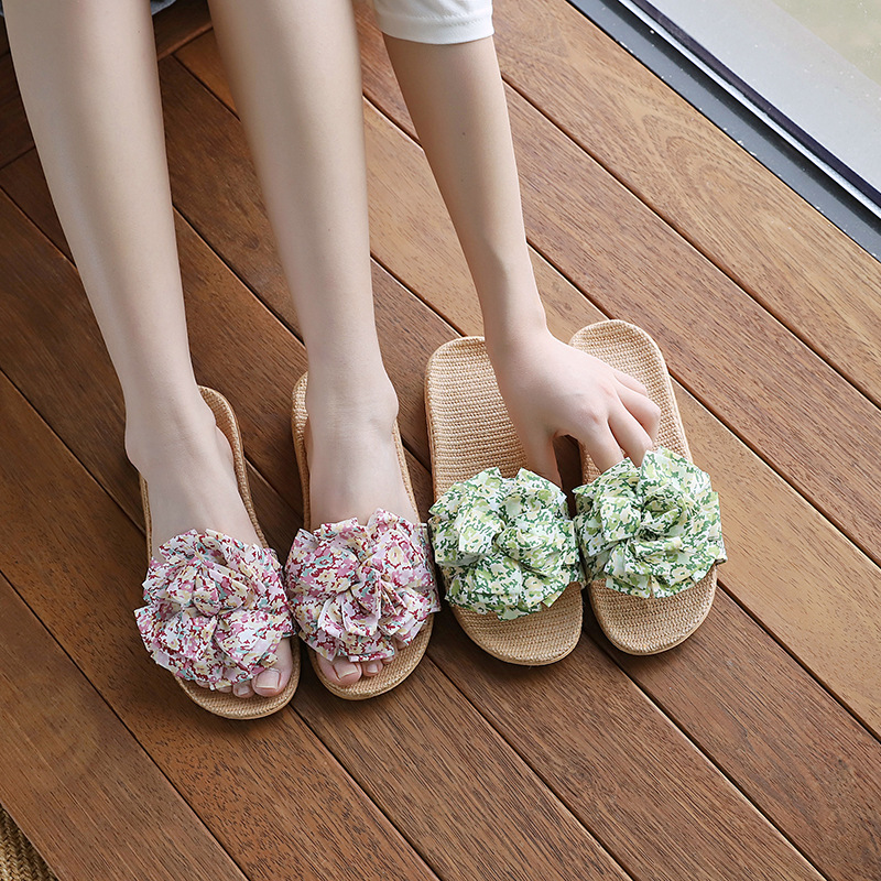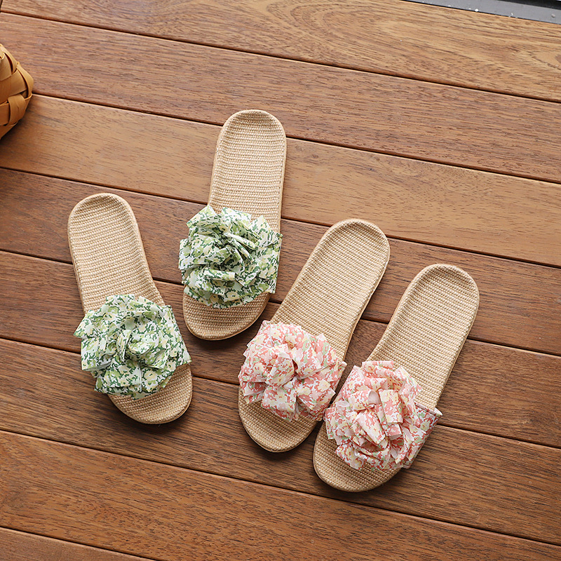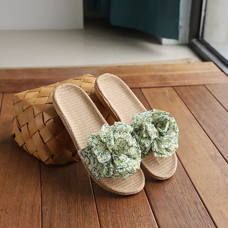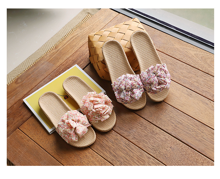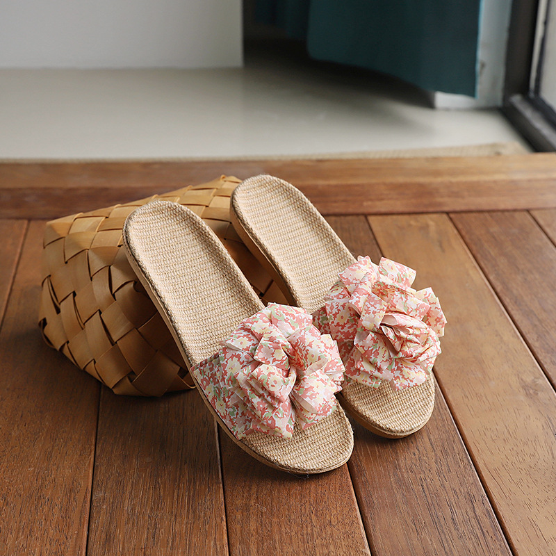 Льняные тапочки женский летний домашний интерьер 2025 новый корейский бант сладкий нескользкий домашний пол холодные тапочки