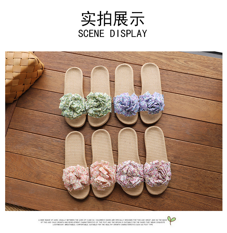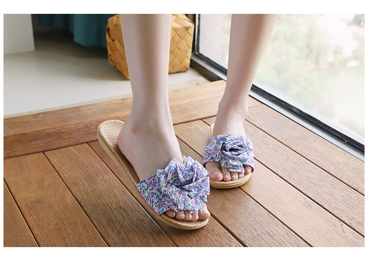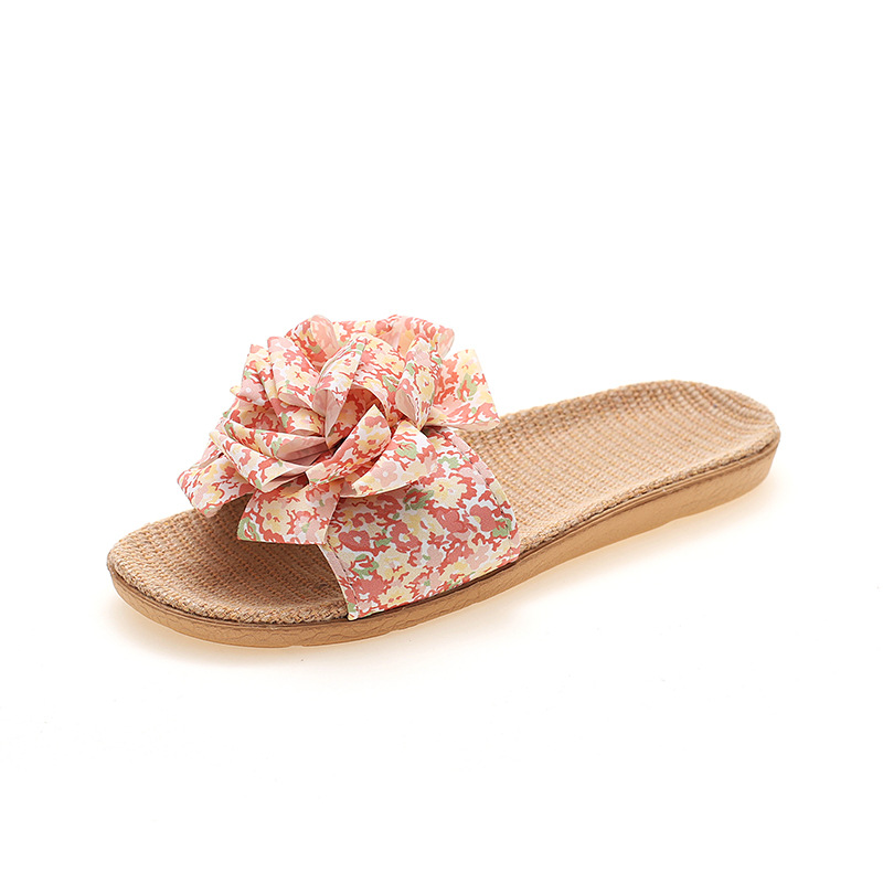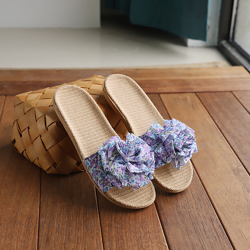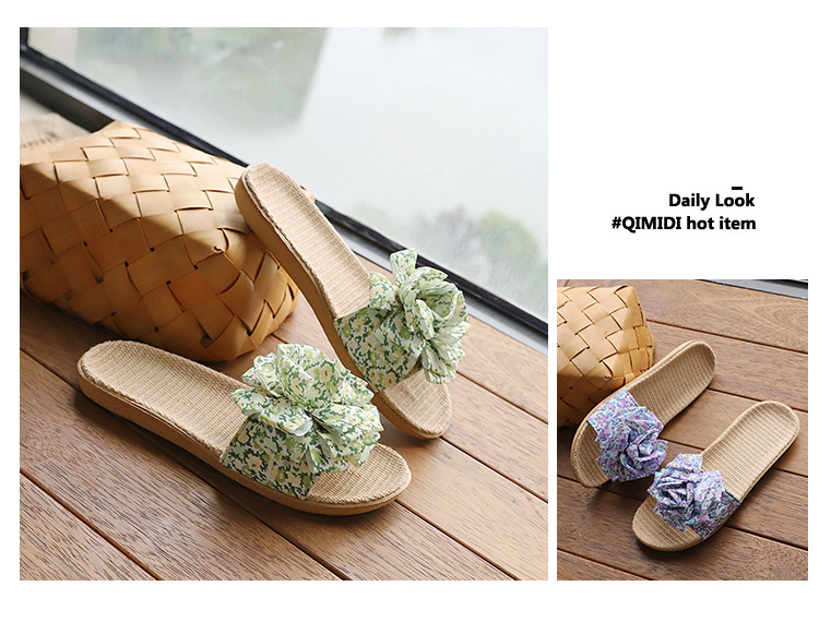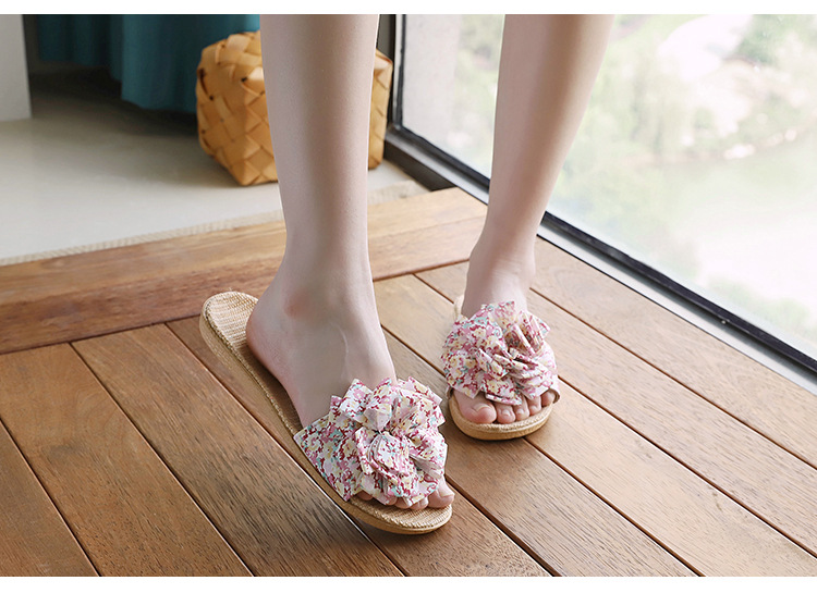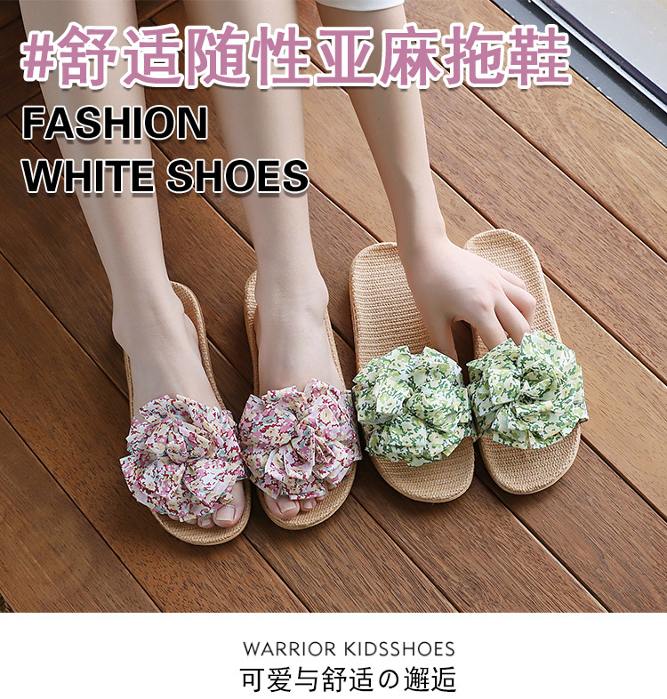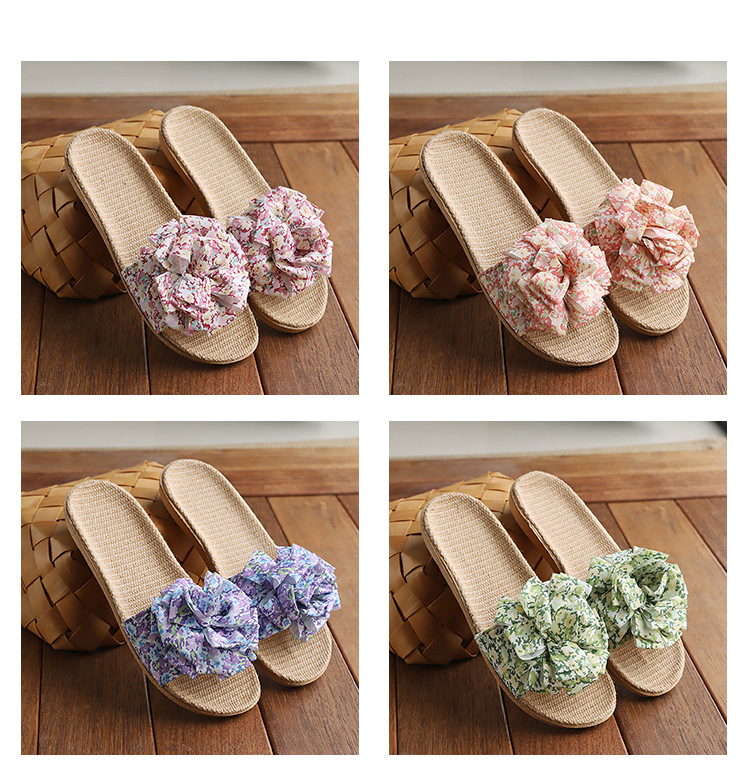 Льняные тапочки женский летний домашний интерьер 2025 новый корейский бант сладкий нескользкий домашний пол холодные тапочки
