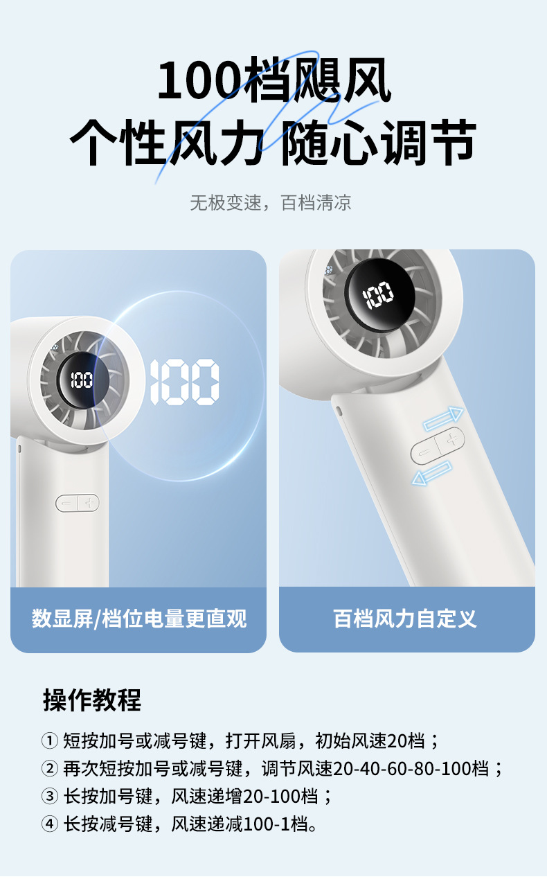 Новый высокоскоростной вентилятор на 100 скоростей, мощный уличный вентилятор с креплением на шею, портативный долговечный ручной высокоскоростной вентилятор.
