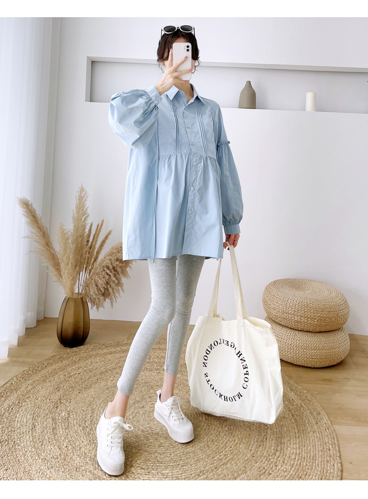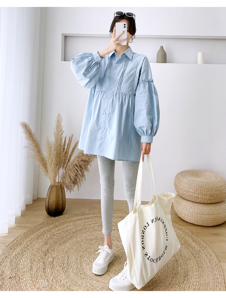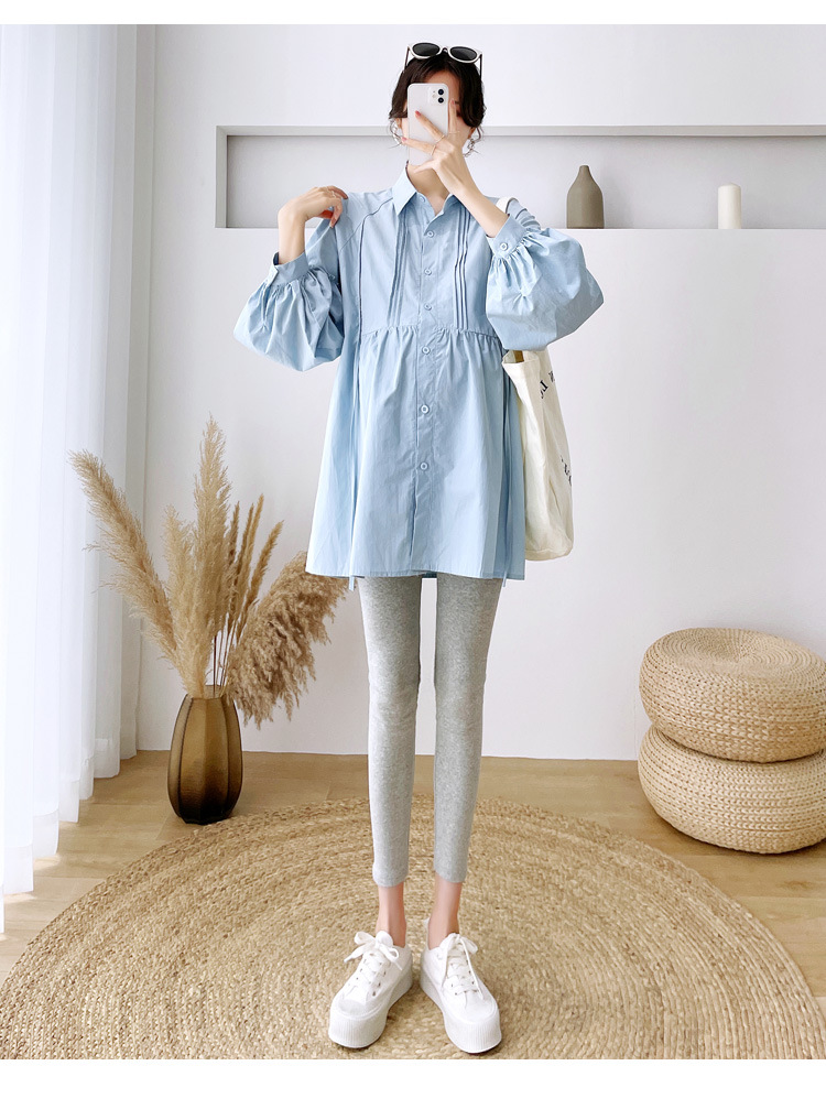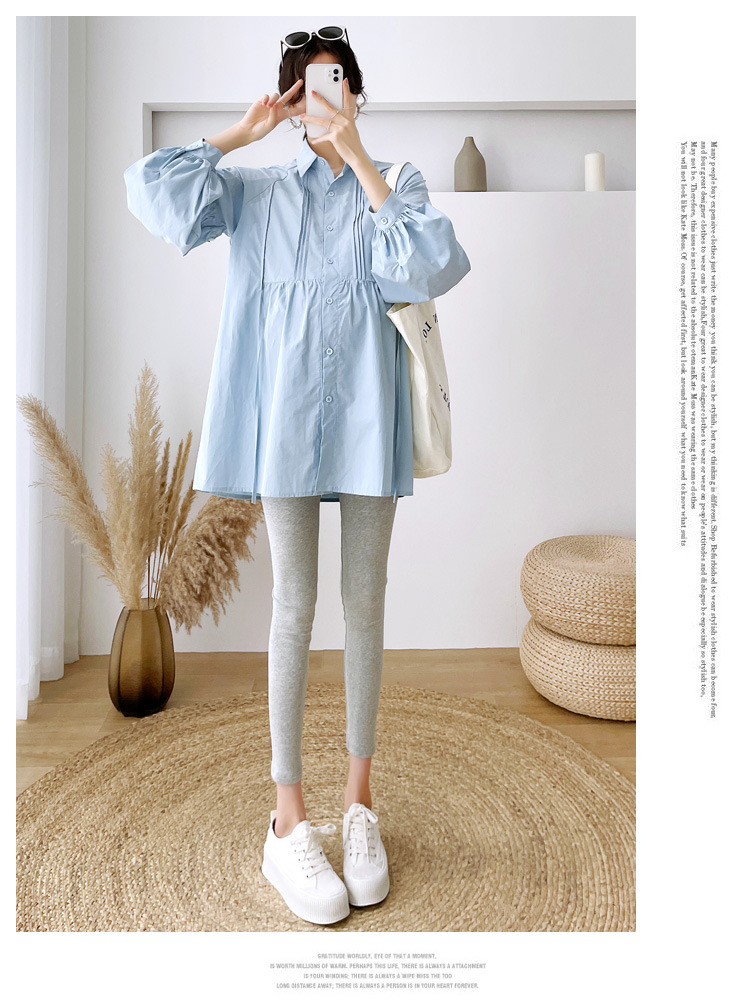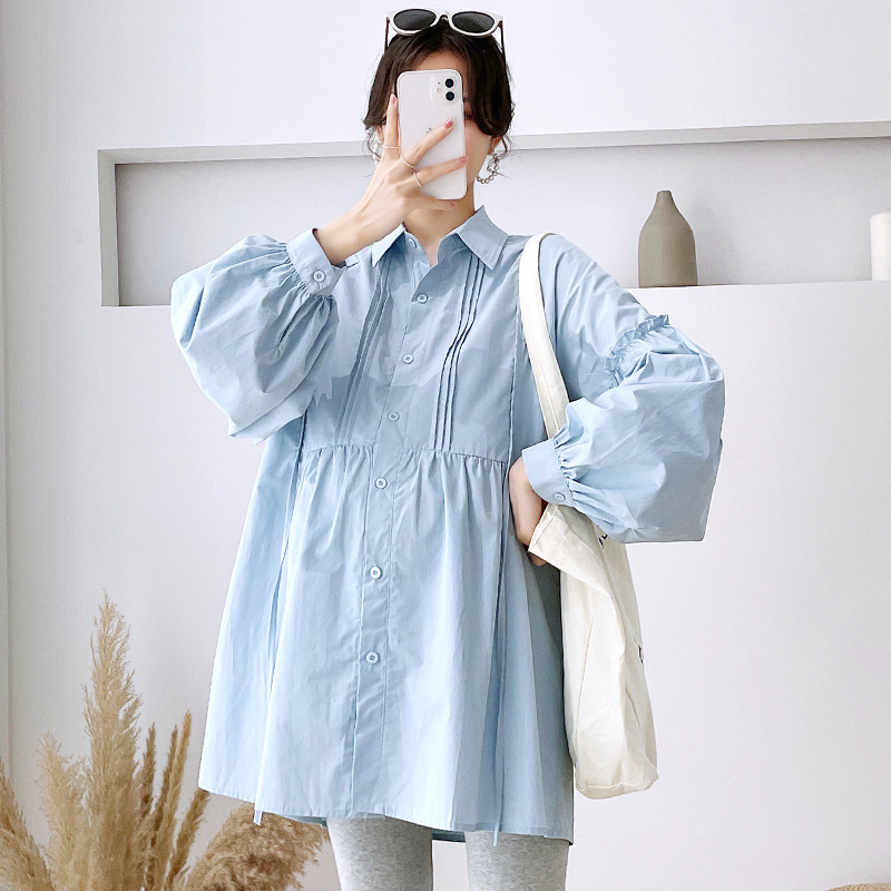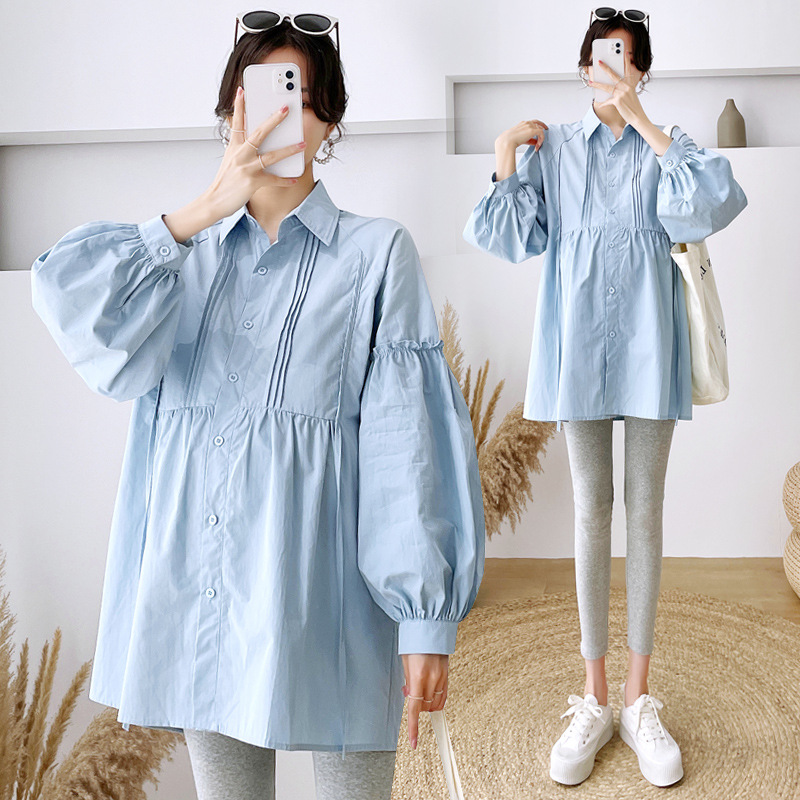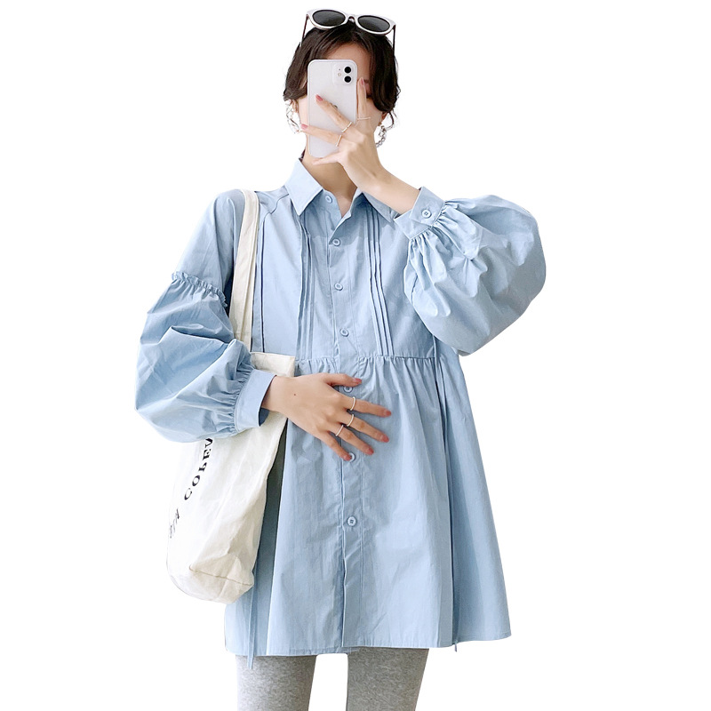 Реальный спот 2022 осень новый сплошной цвет с длинными рукавами для беременных свободный топ корейская модная рубашка синий