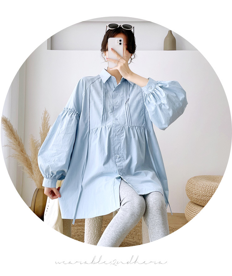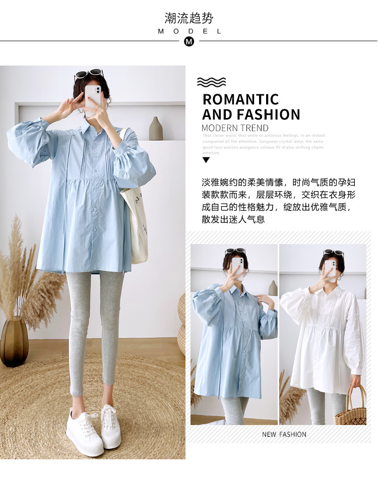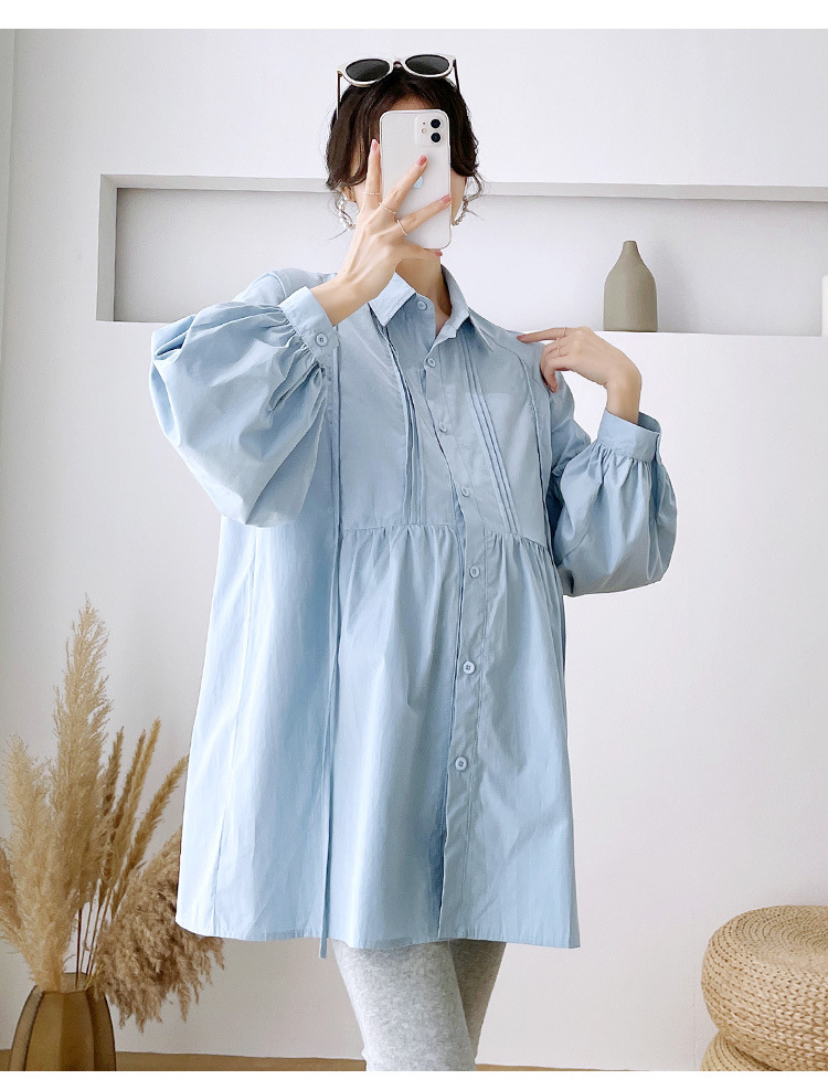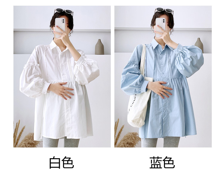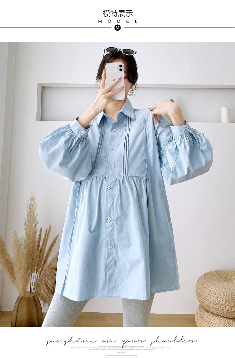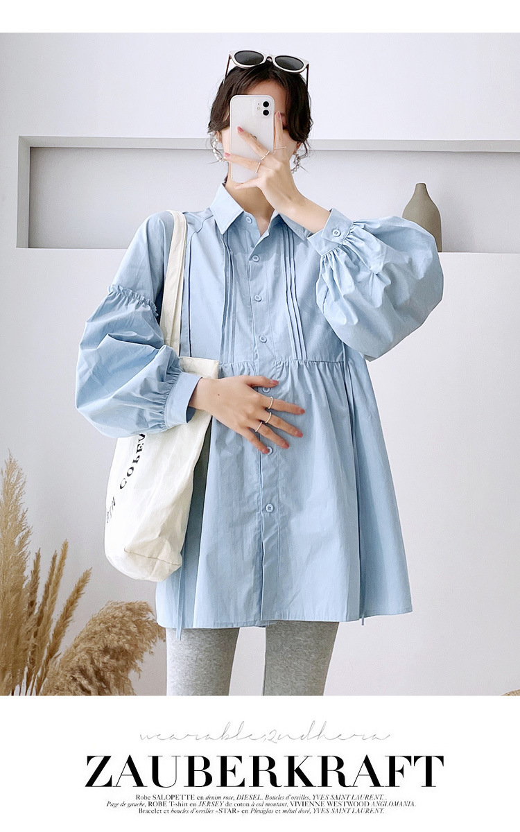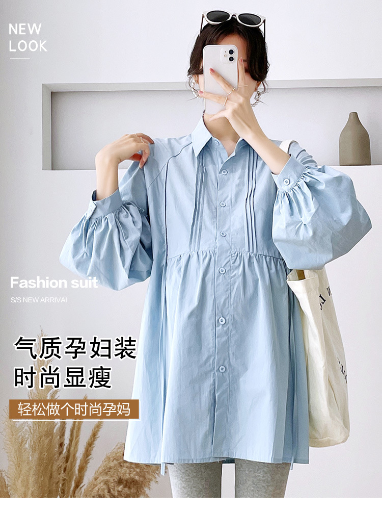 Реальный спот 2022 осень новый сплошной цвет с длинными рукавами для беременных свободный топ корейская модная рубашка синий