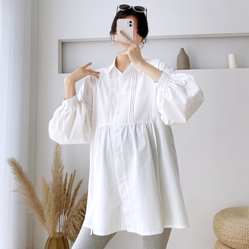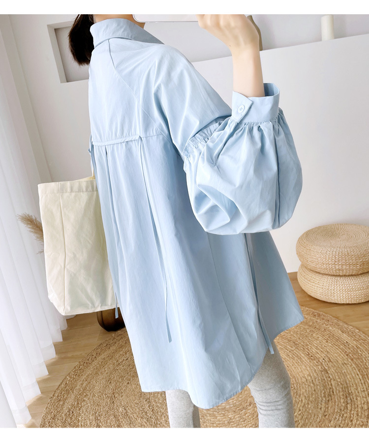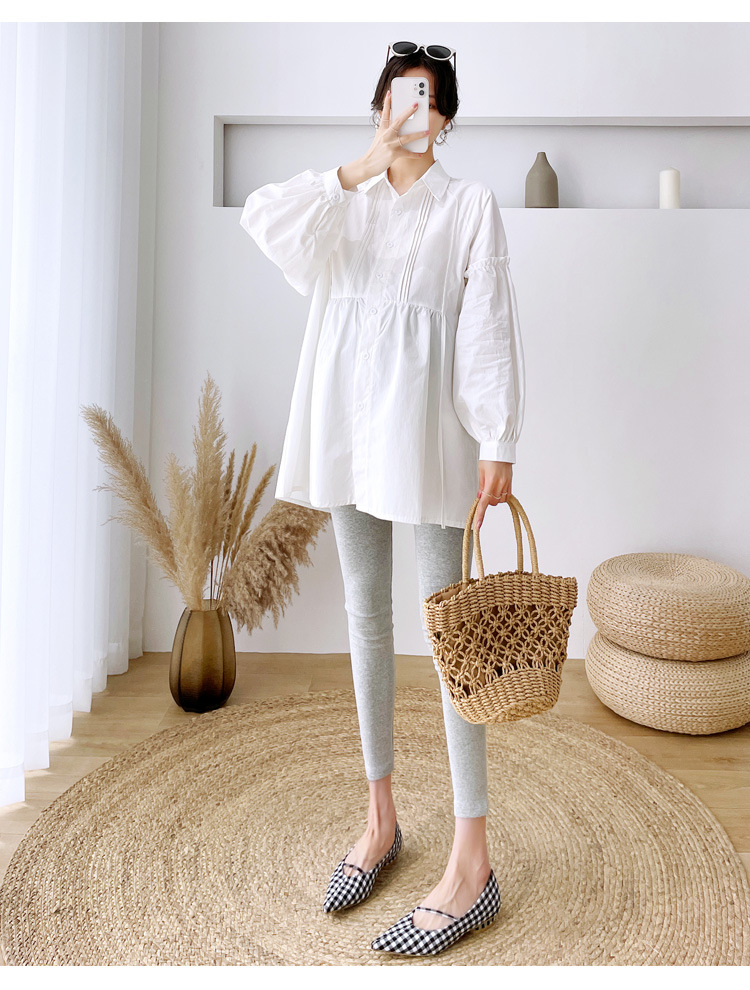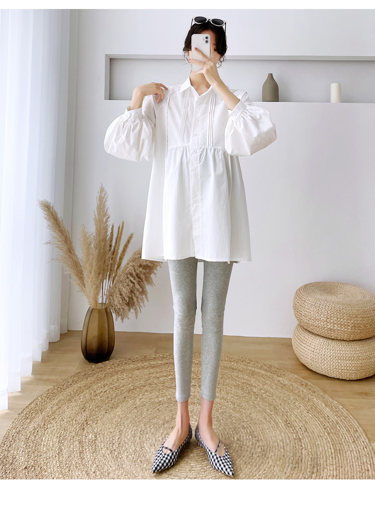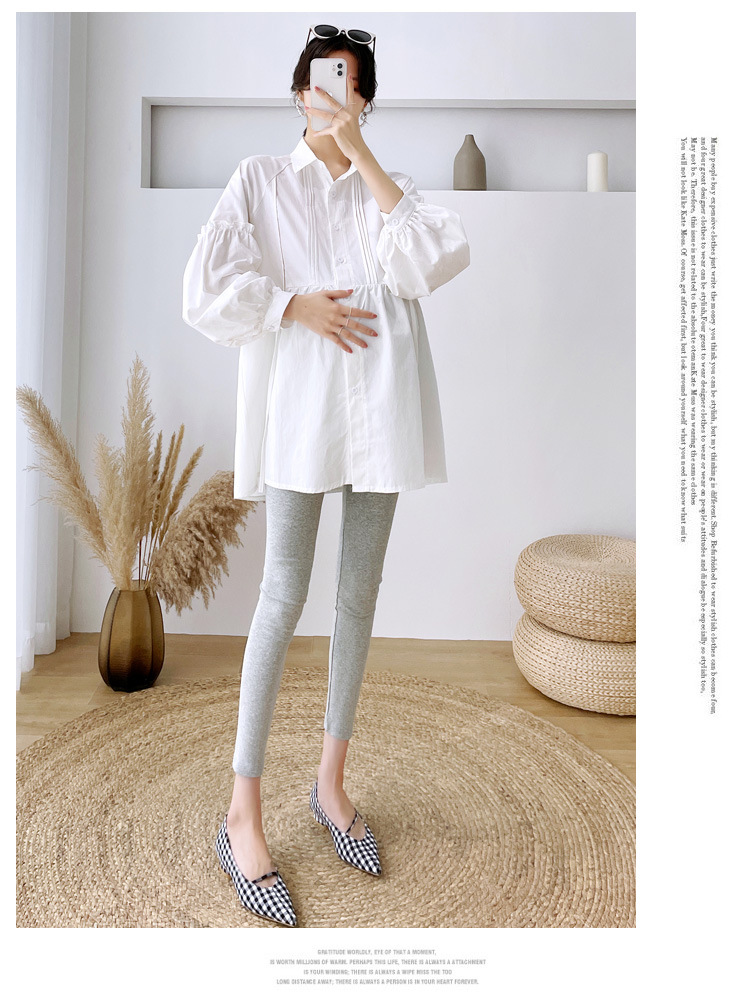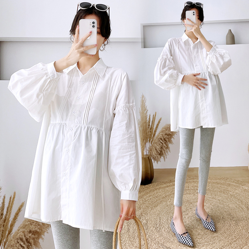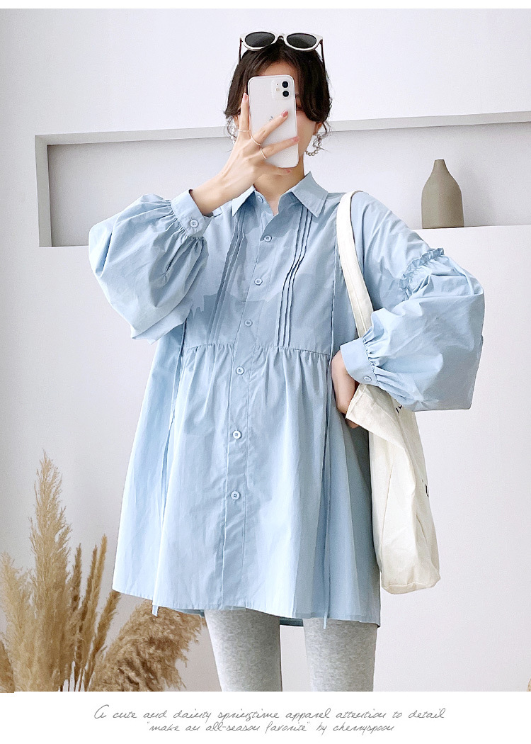 Реальный спот 2022 осень новый сплошной цвет с длинными рукавами для беременных свободный топ корейская модная рубашка синий