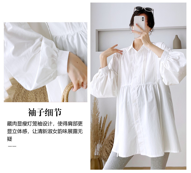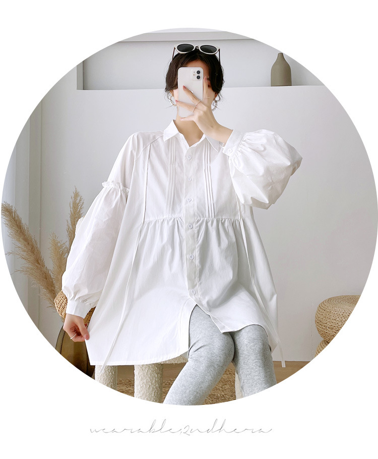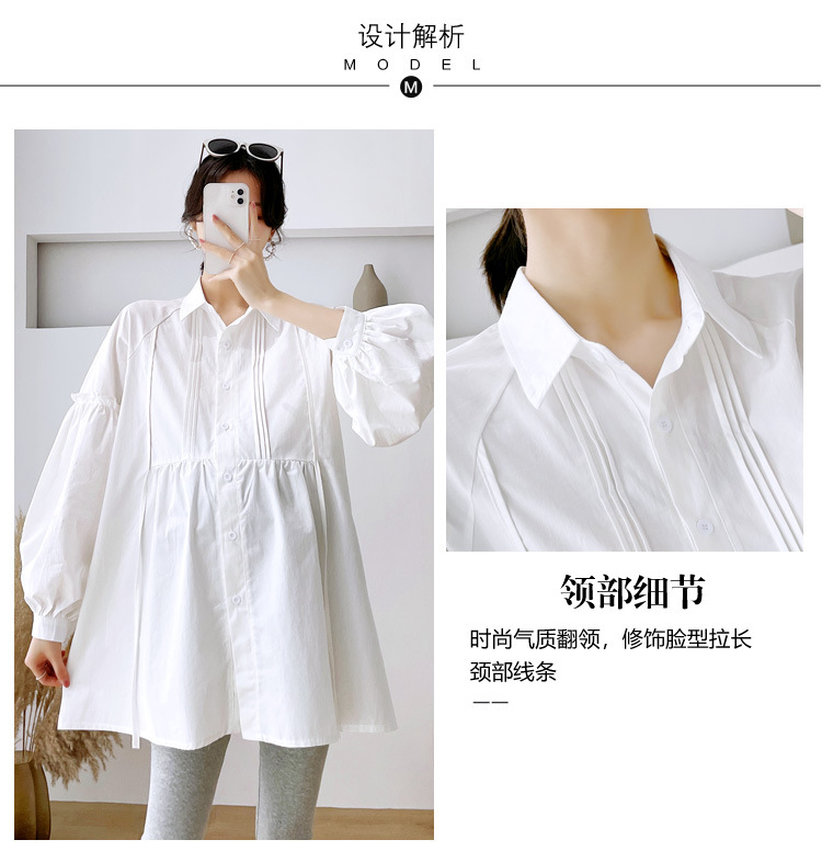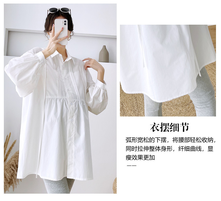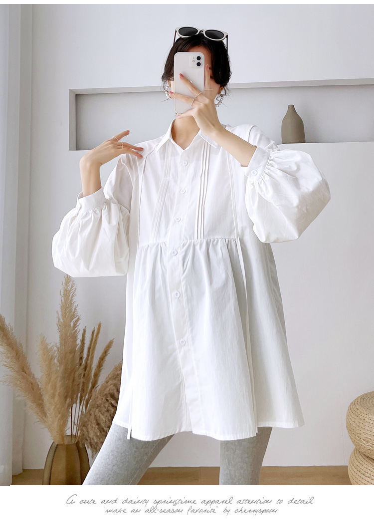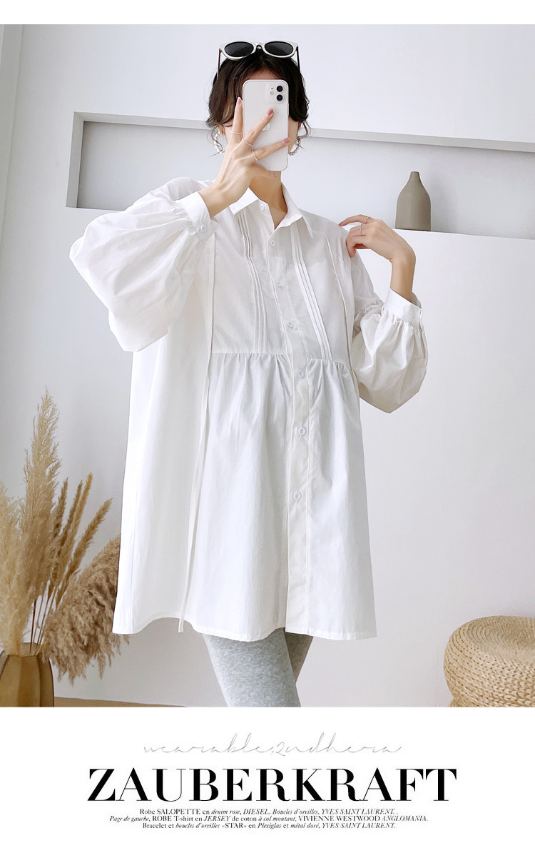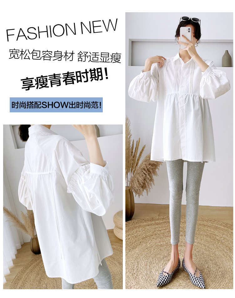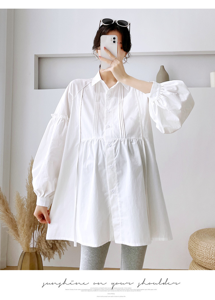Реальный спот 2022 осень новый сплошной цвет с длинными рукавами для беременных свободный топ корейская модная рубашка синий