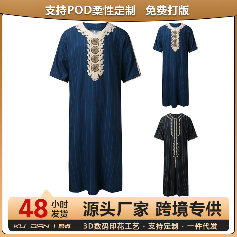 Мужской летний халат 2025: Свободный крой, марокканский стиль, 3D цифровая печать