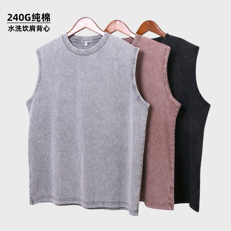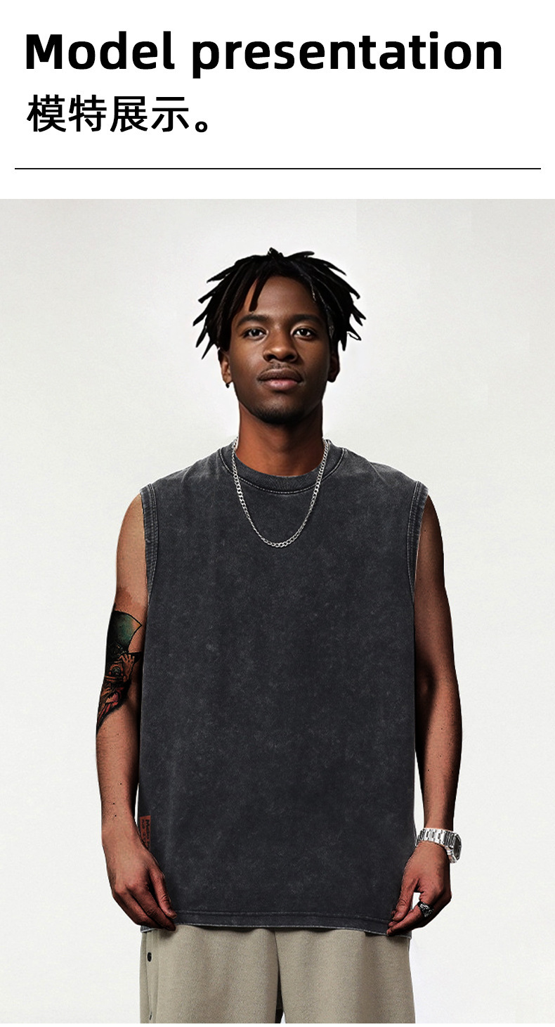 Уличный жилет трибутомии, повседневный жилет, мужской спортивный жилет для фитнеса, свободная рубашка без рукавов, 240 г, универсальный хлопковый топ с потертостями