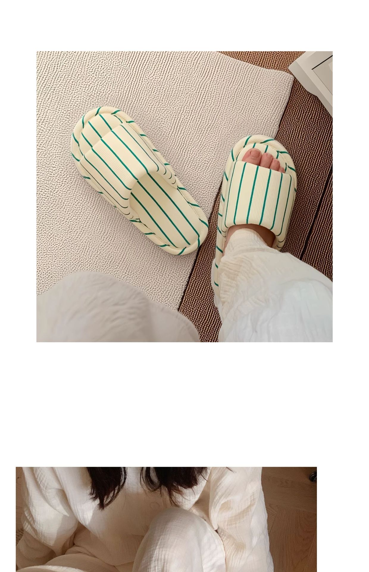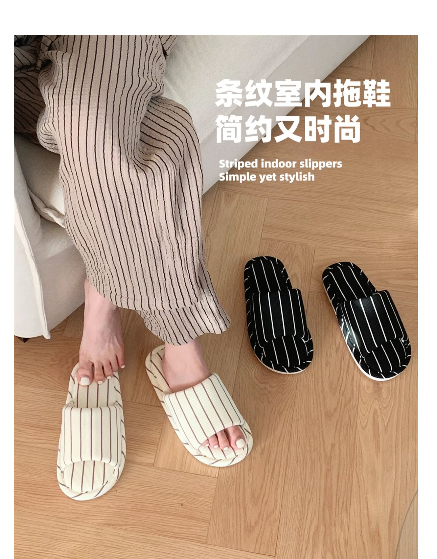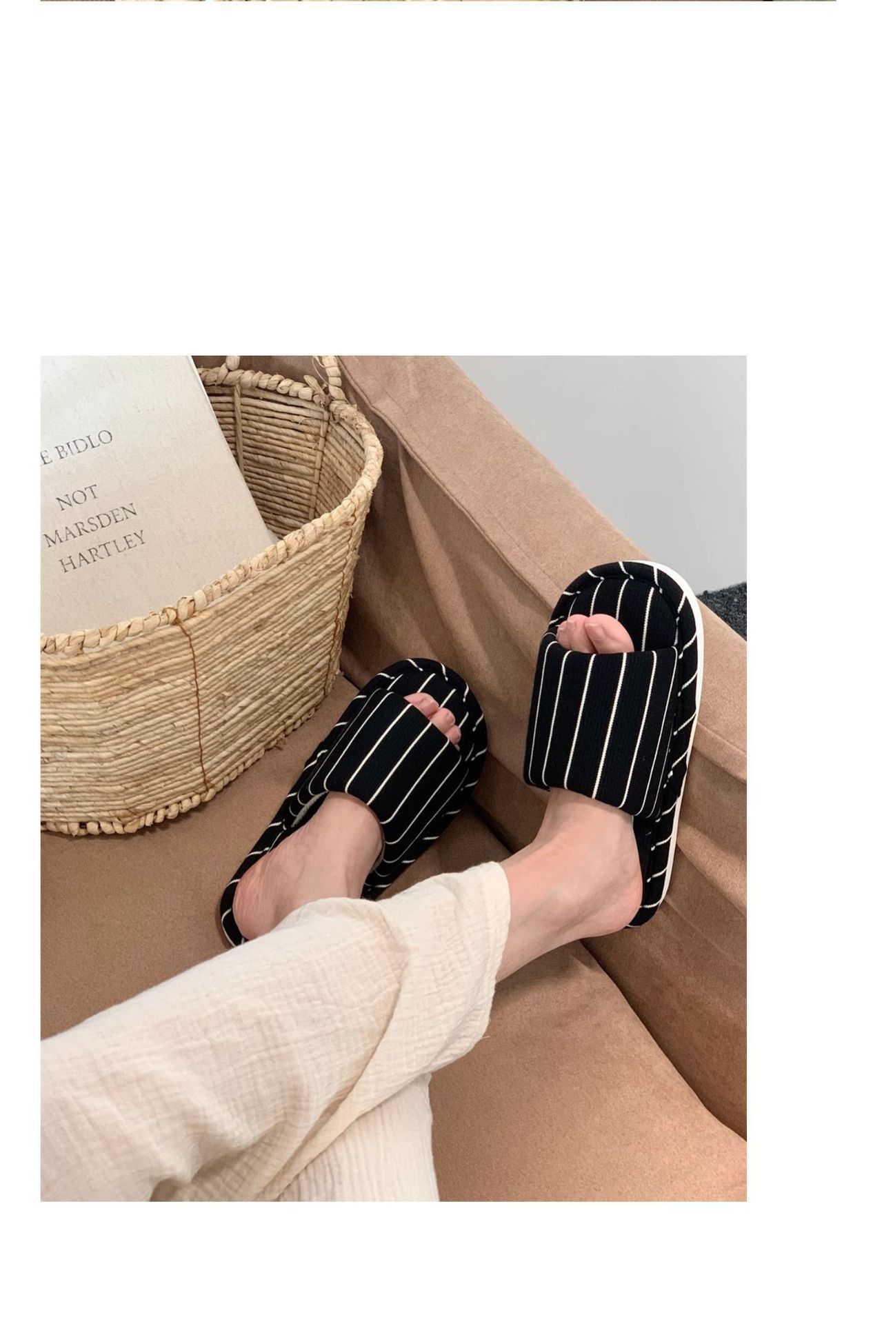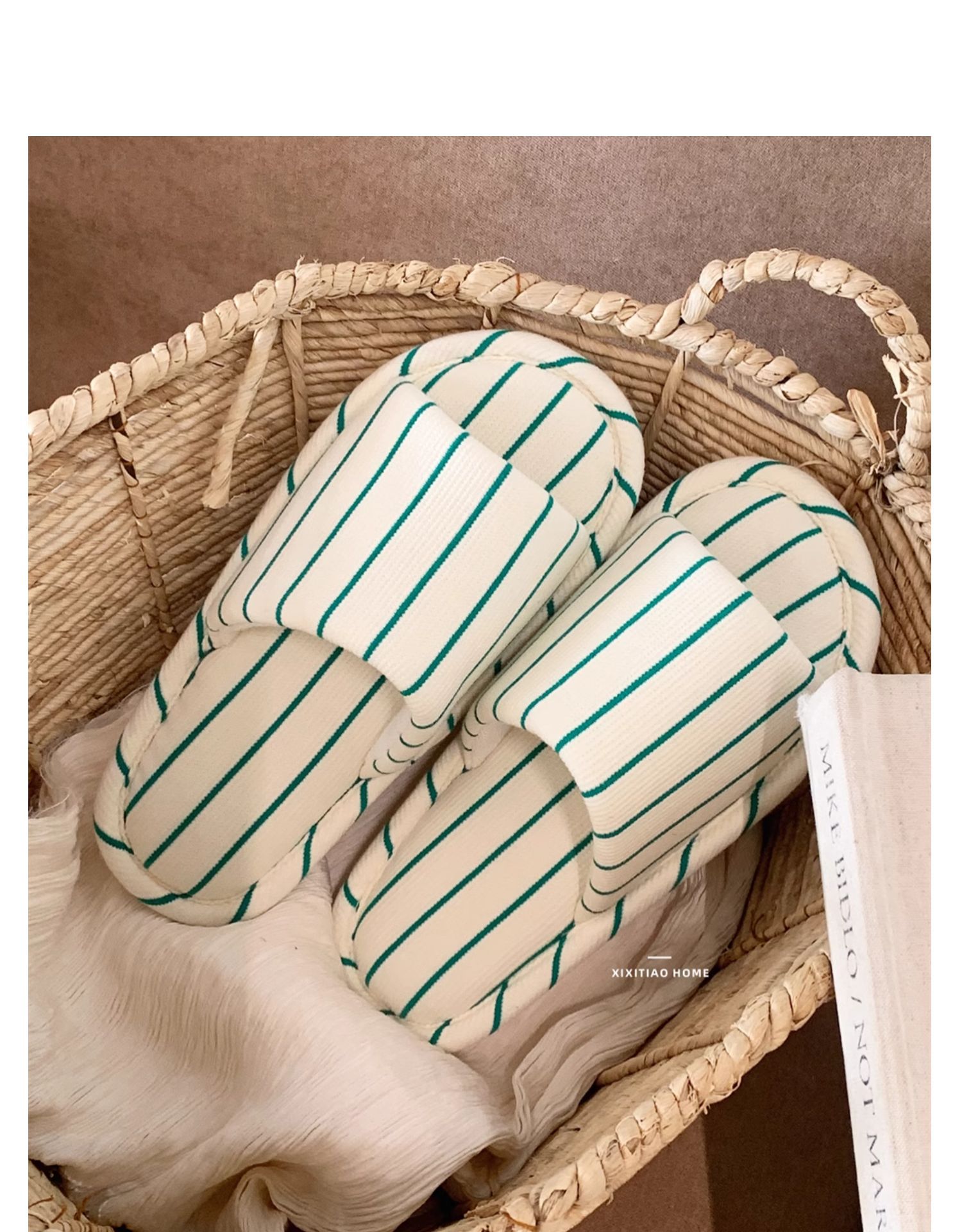 Ins простые полоски персонализированные домашние туфли для пола Японский стиль хлопок льна на мягком подошве Универсальные четыре сезона в комнате с кондиционером тапки для женщин