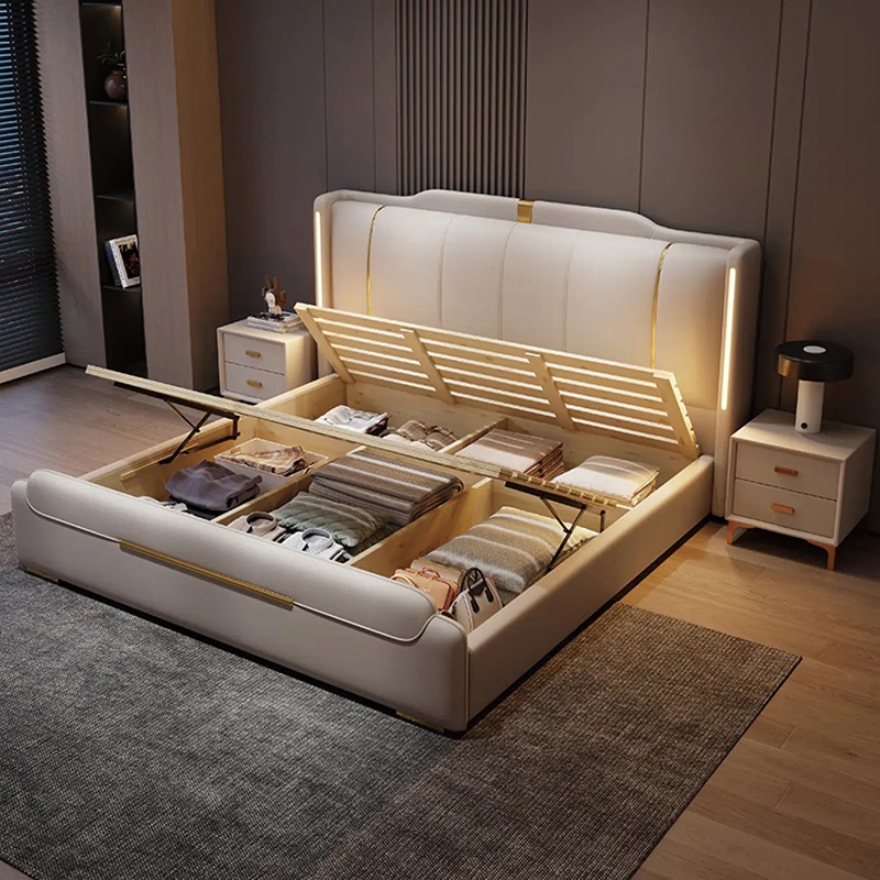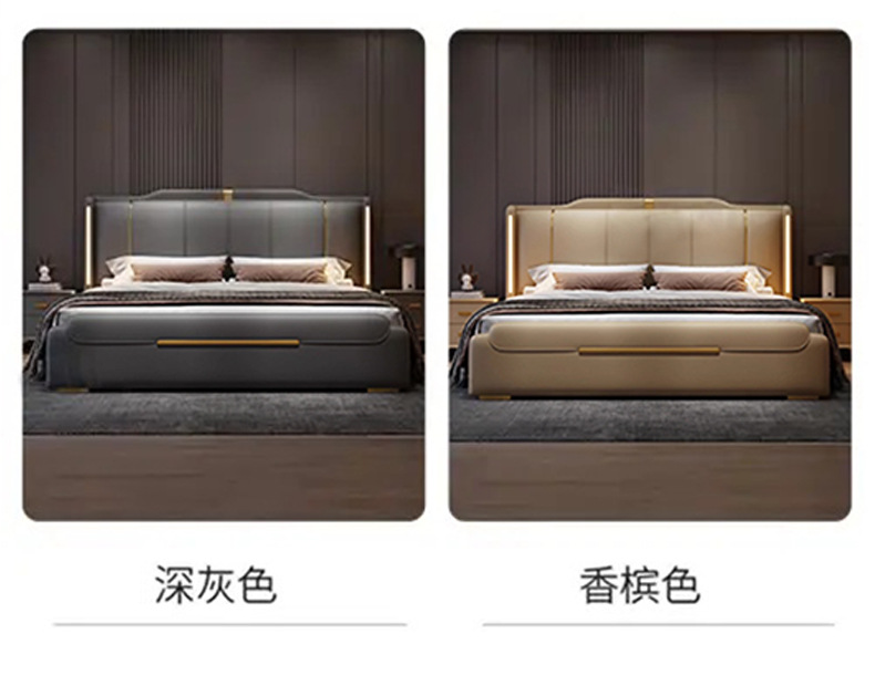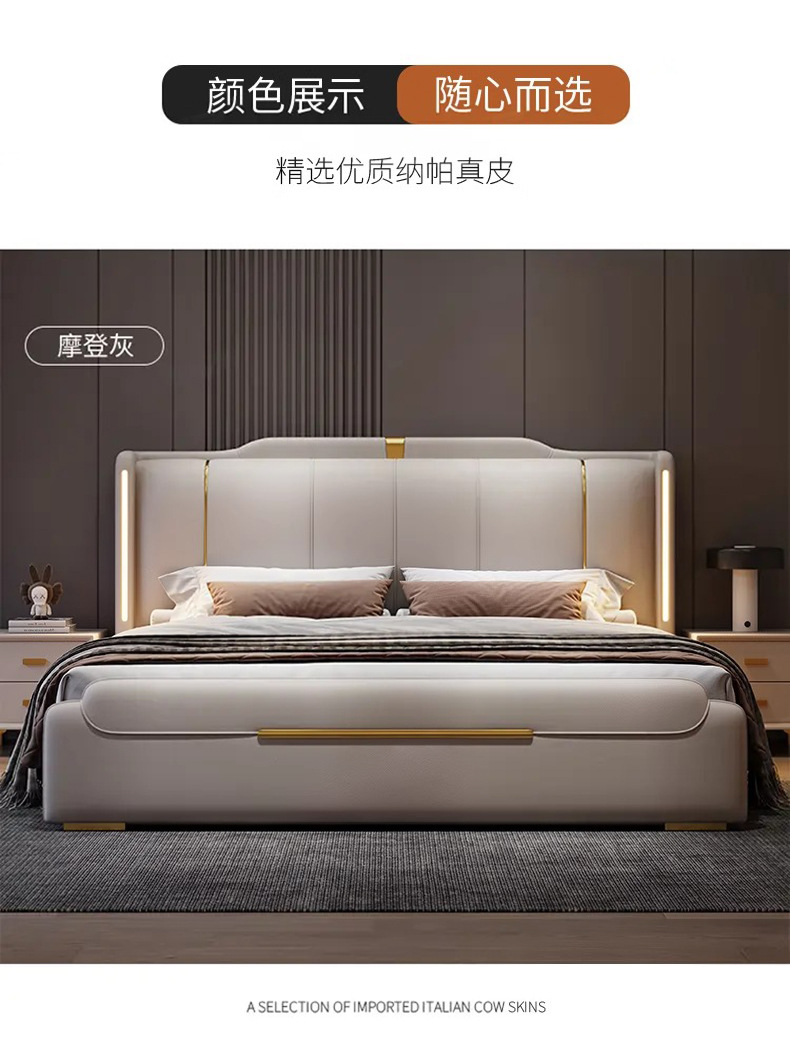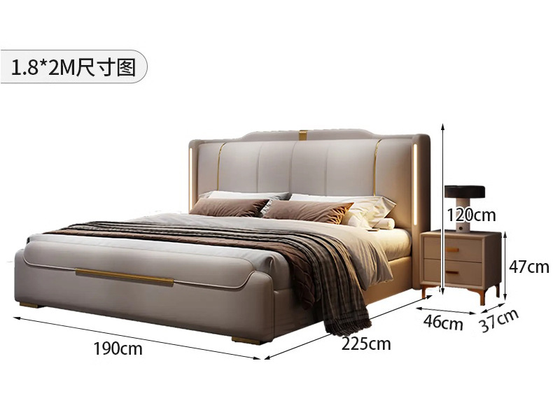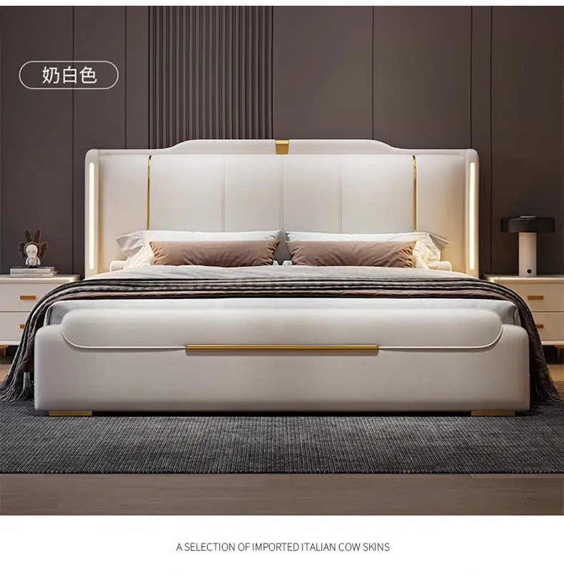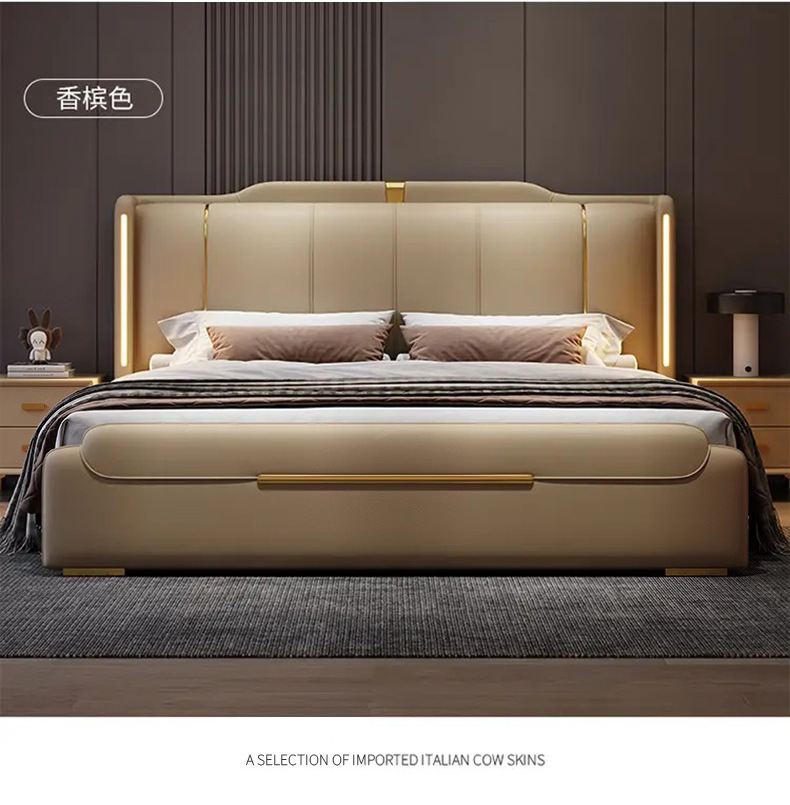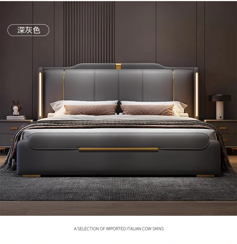 Итальянская минималистичная кожаная кровать 1,8x 2m для домашней спальни 1.5m двуспальная кровать для хранения свадебная кровать новая модель с легкой мягкой кроватью