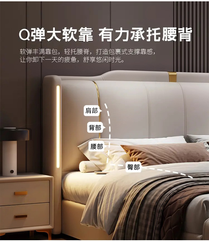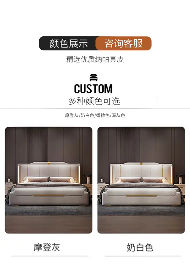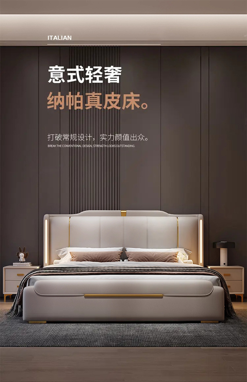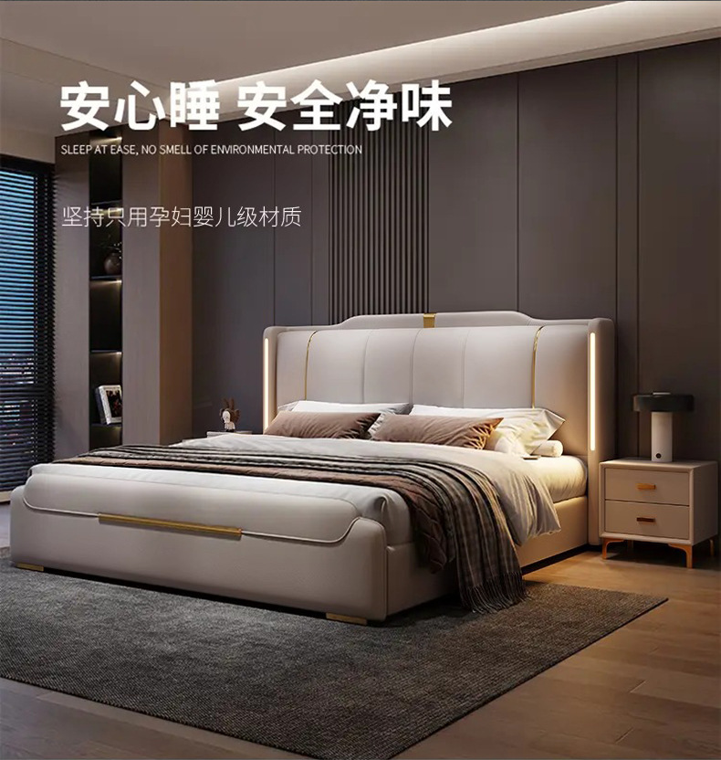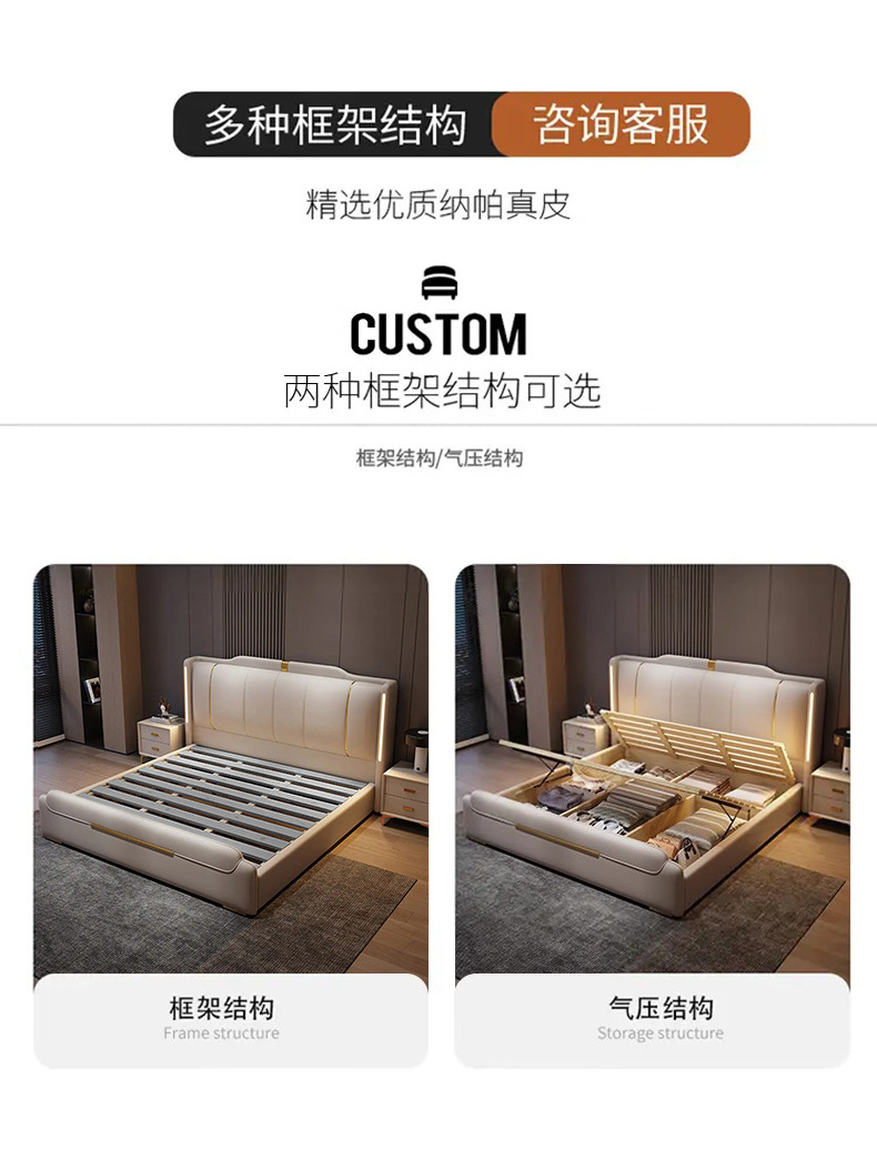 Итальянская минималистичная кожаная кровать 1,8x 2m для домашней спальни 1.5m двуспальная кровать для хранения свадебная кровать новая модель с легкой мягкой кроватью