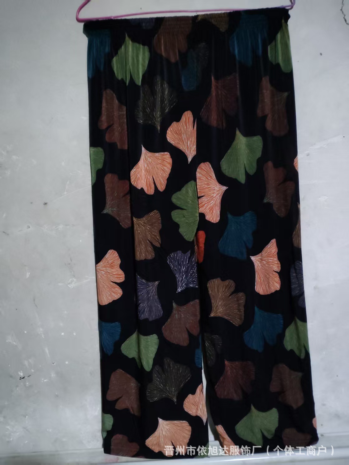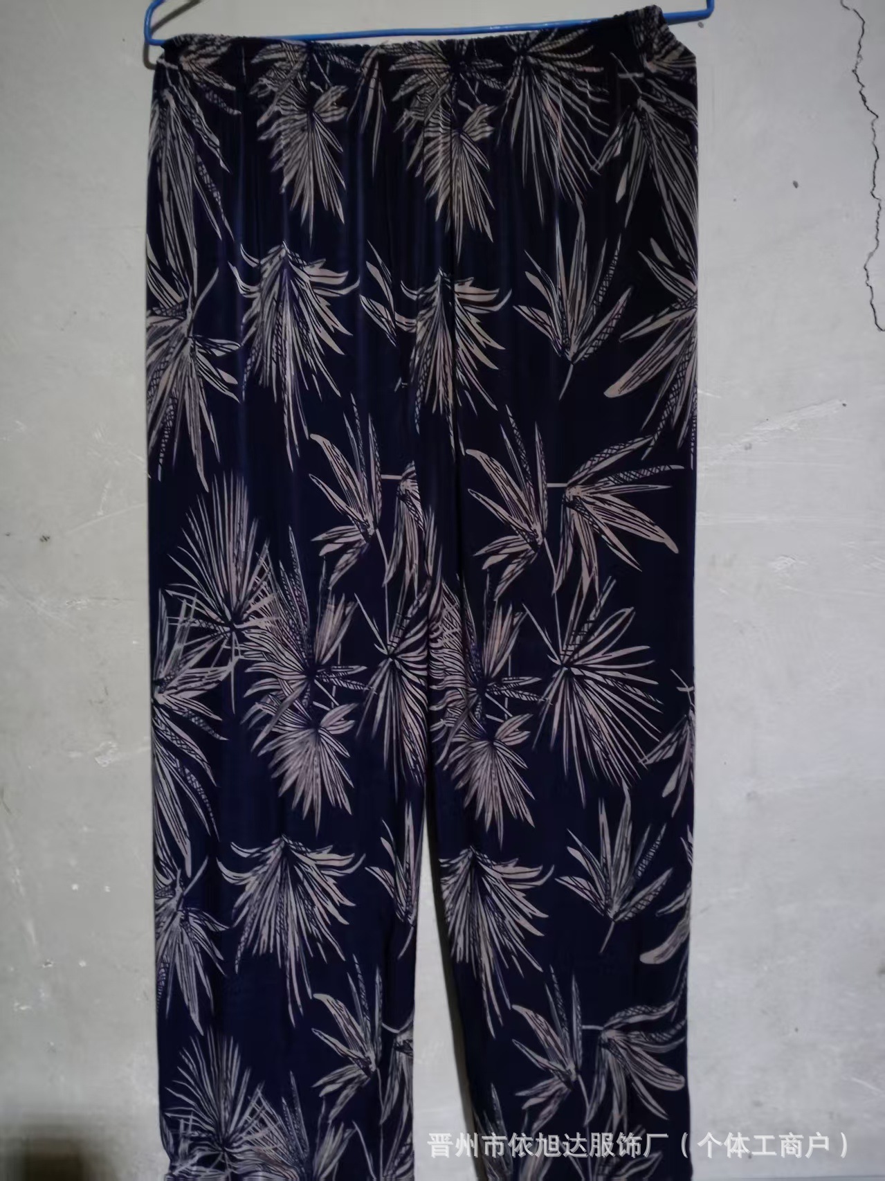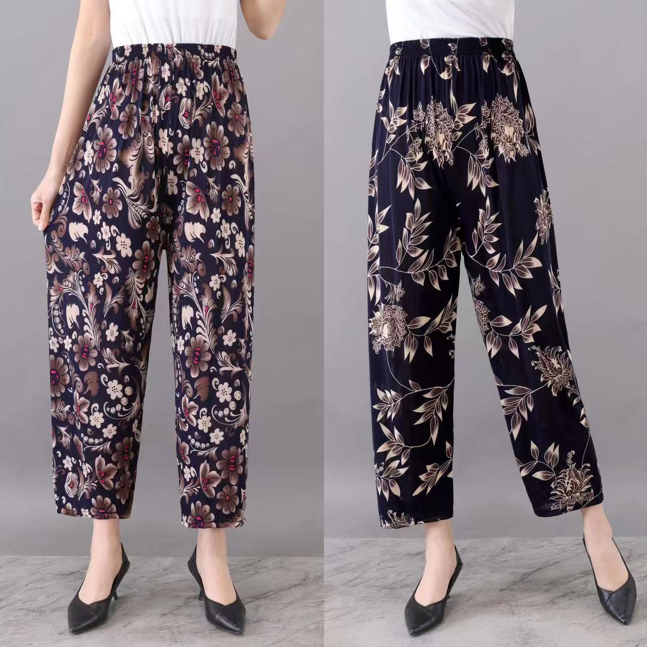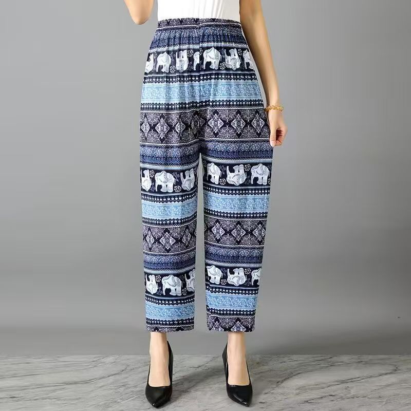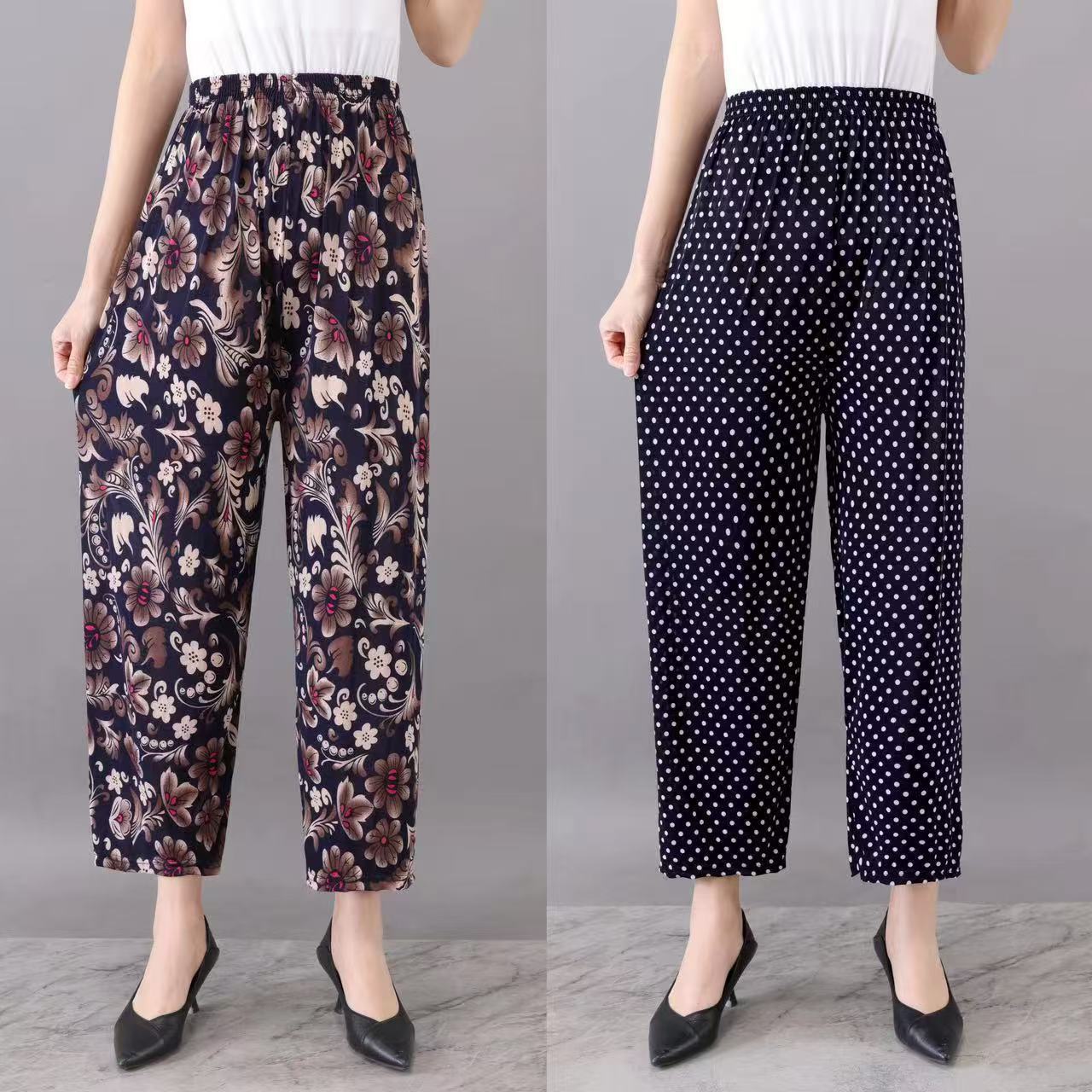 Повседневные летние женские брюки для мам для внешней торговли, эластичный ледяной шелк, большие размеры, свободный крой, тонкий стиль, высокая эластичность, высокая талия для людей среднего и пожилого возраста.