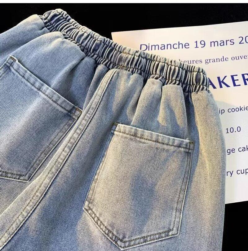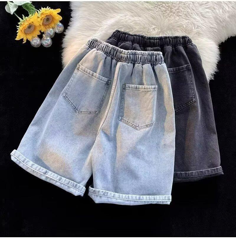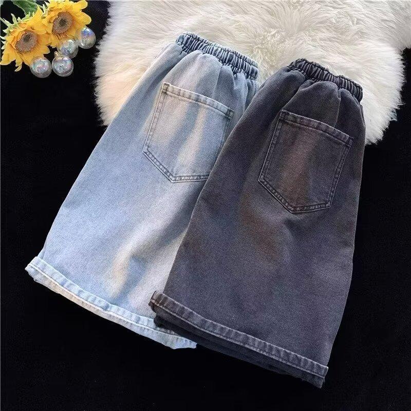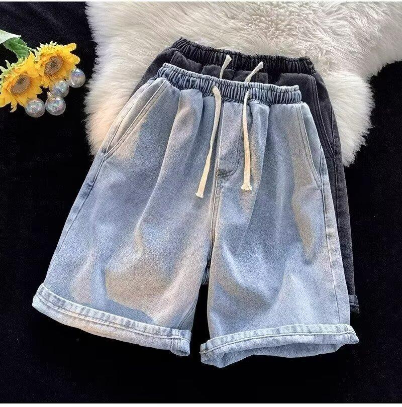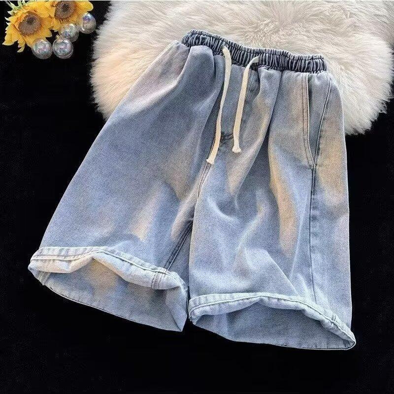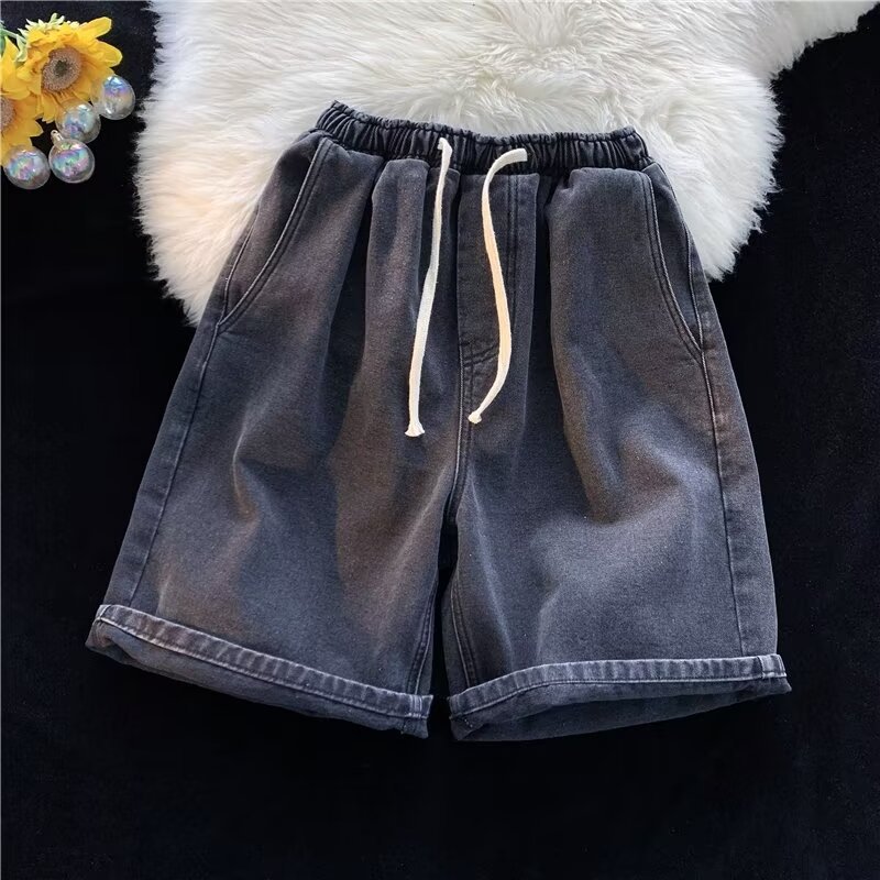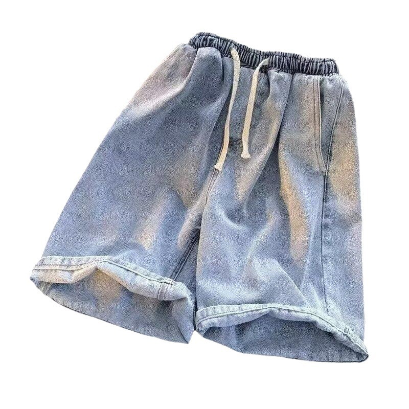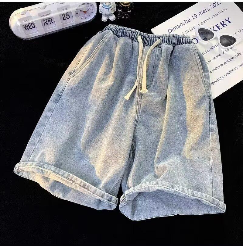 Новые джинсовые шорты мужские свободные широкие ножки средние брюки трендовые летние тонкие шнурки с эластной талией повседневные укороченные брюки