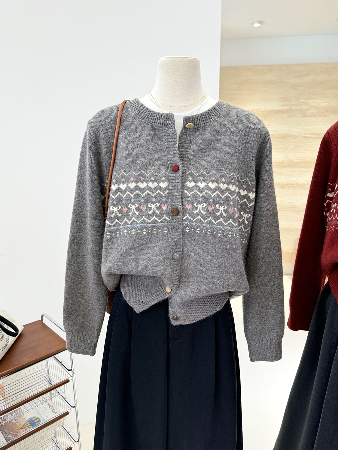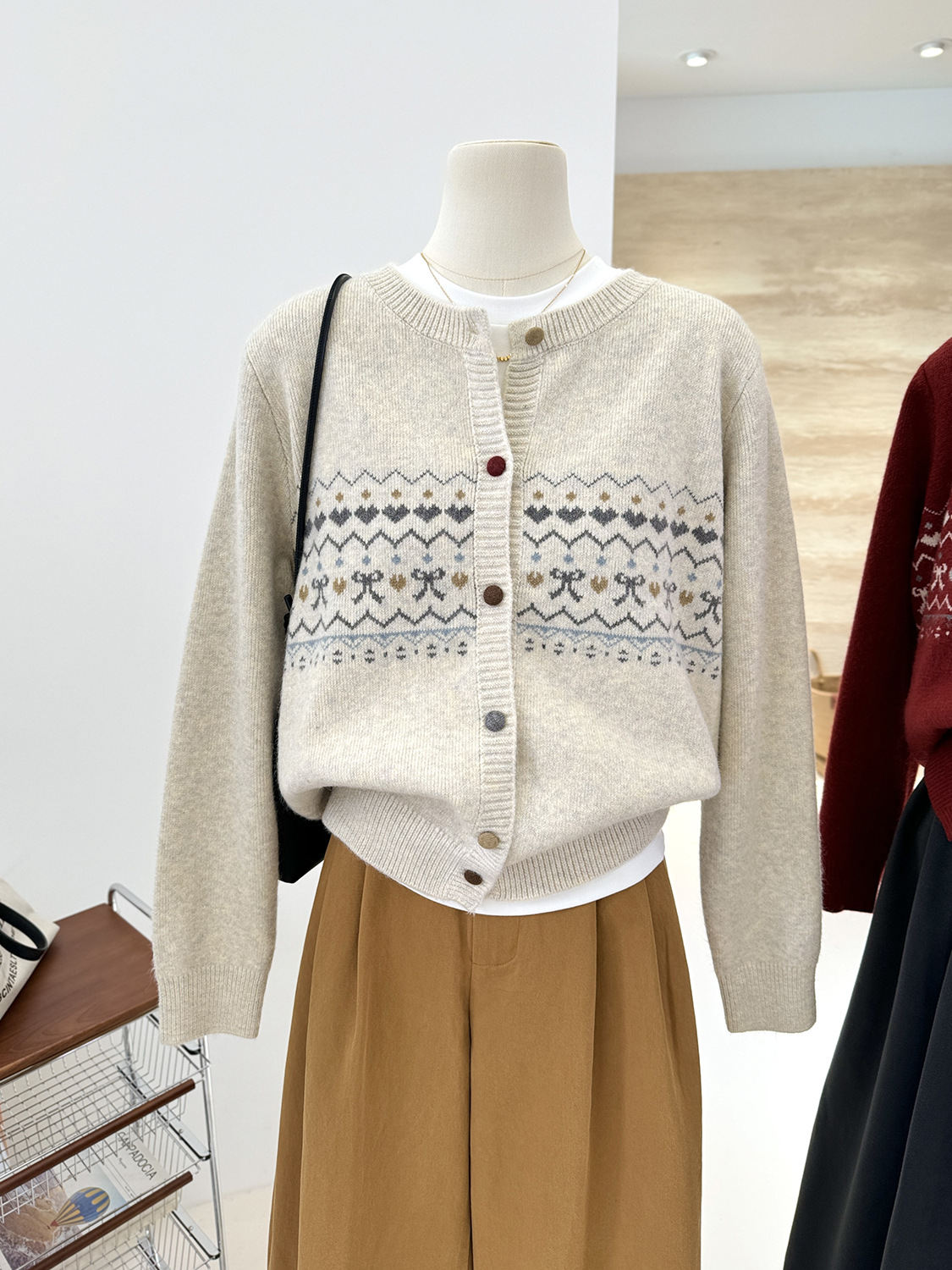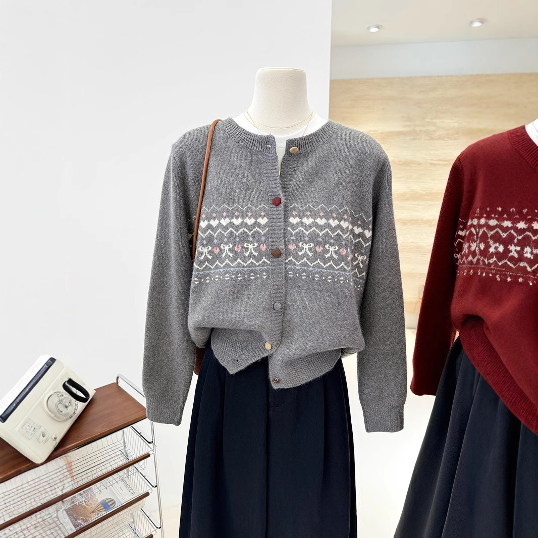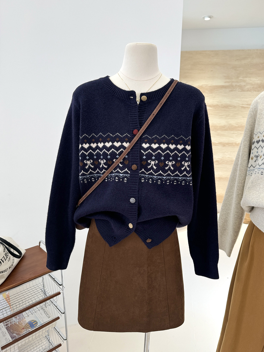 Большой размер женская весна и осень корейская версия контрастного жаккарда вязаный кардиган ленивый ветер свободный топ свитер с круглым вырезом