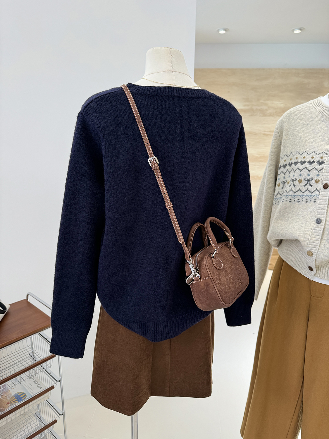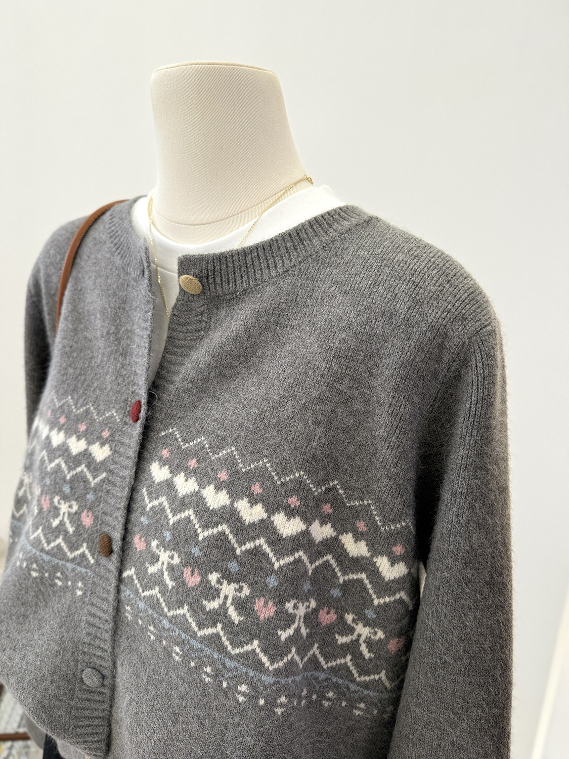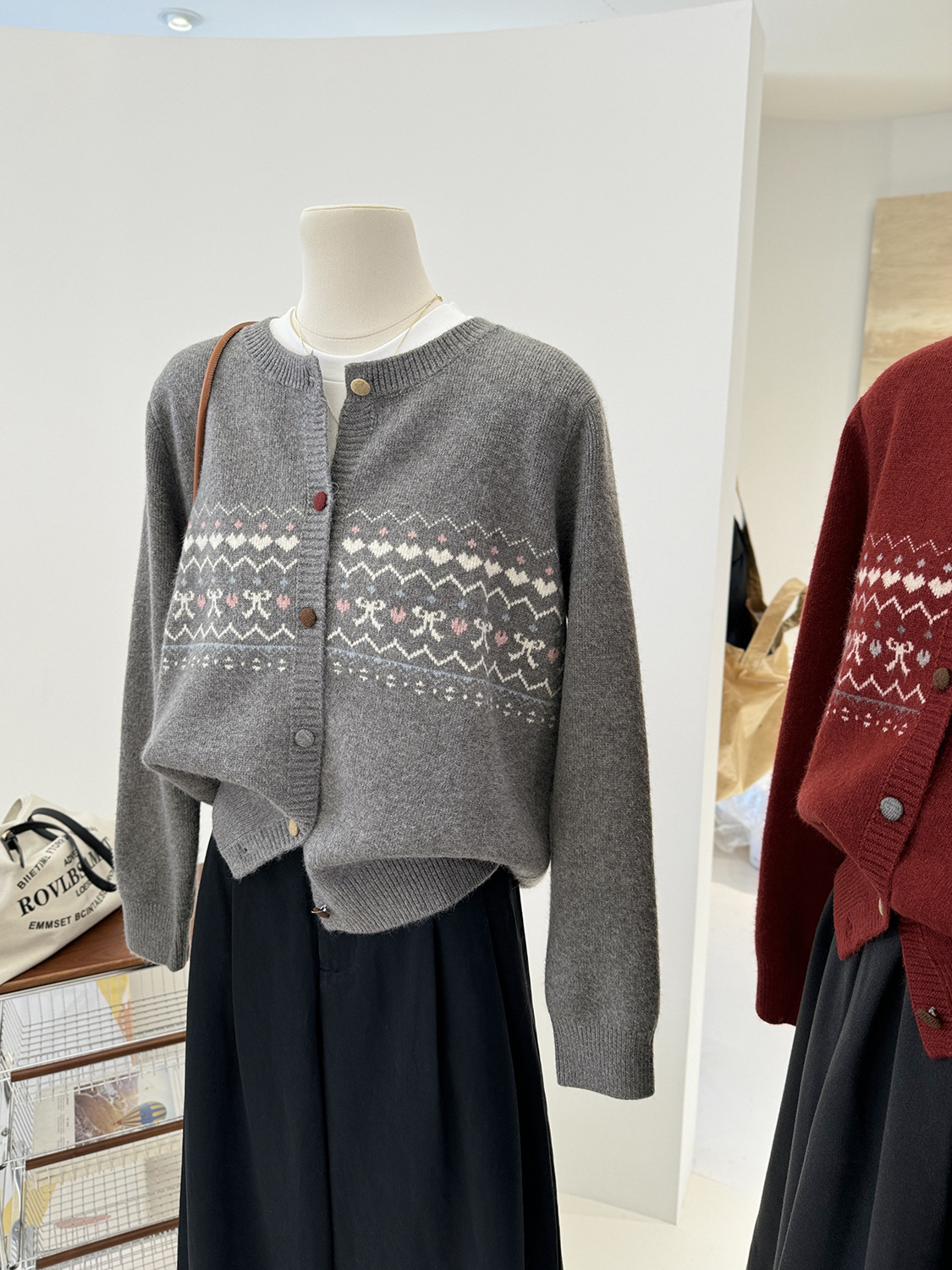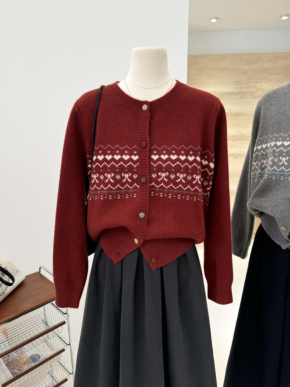 Большой размер женская весна и осень корейская версия контрастного жаккарда вязаный кардиган ленивый ветер свободный топ свитер с круглым вырезом