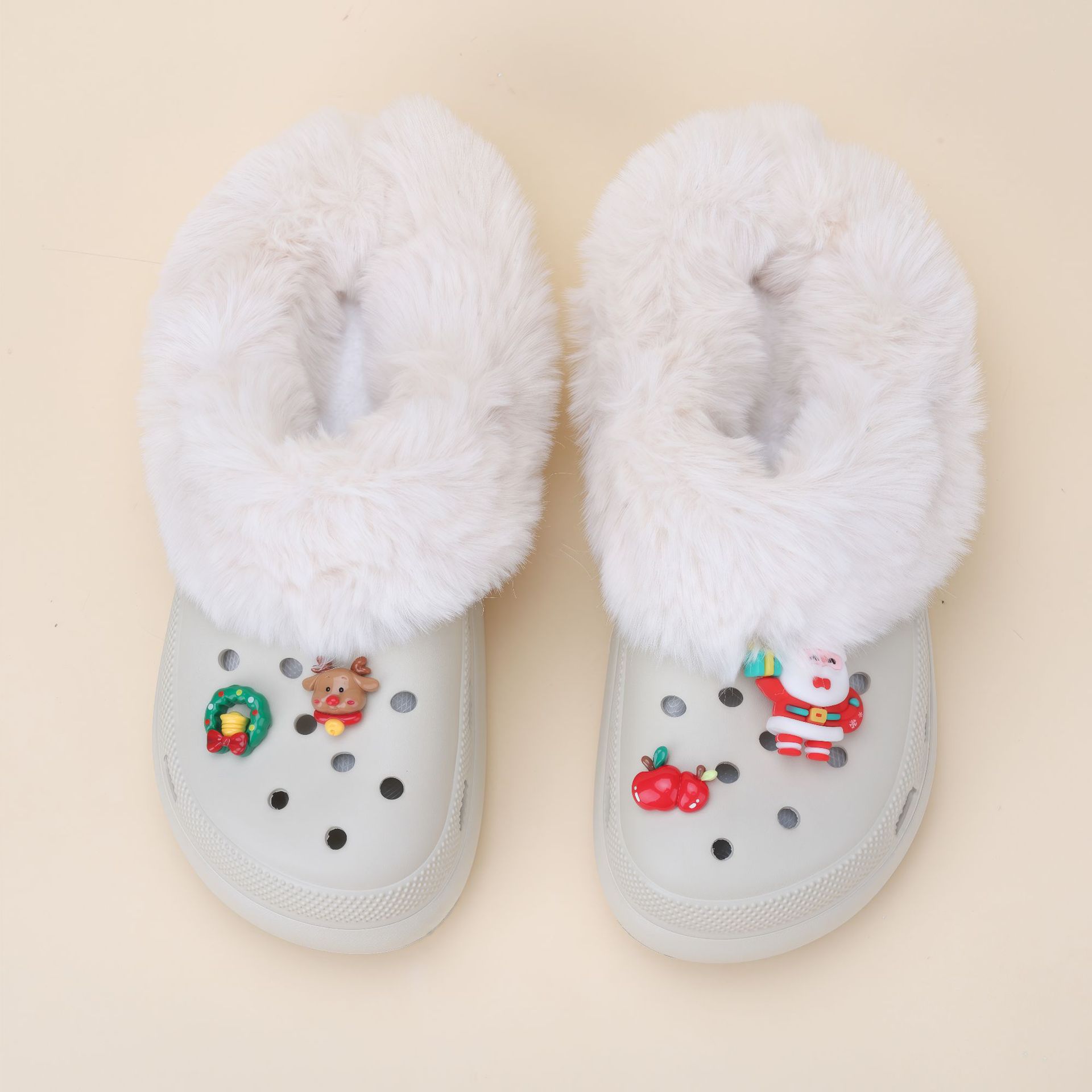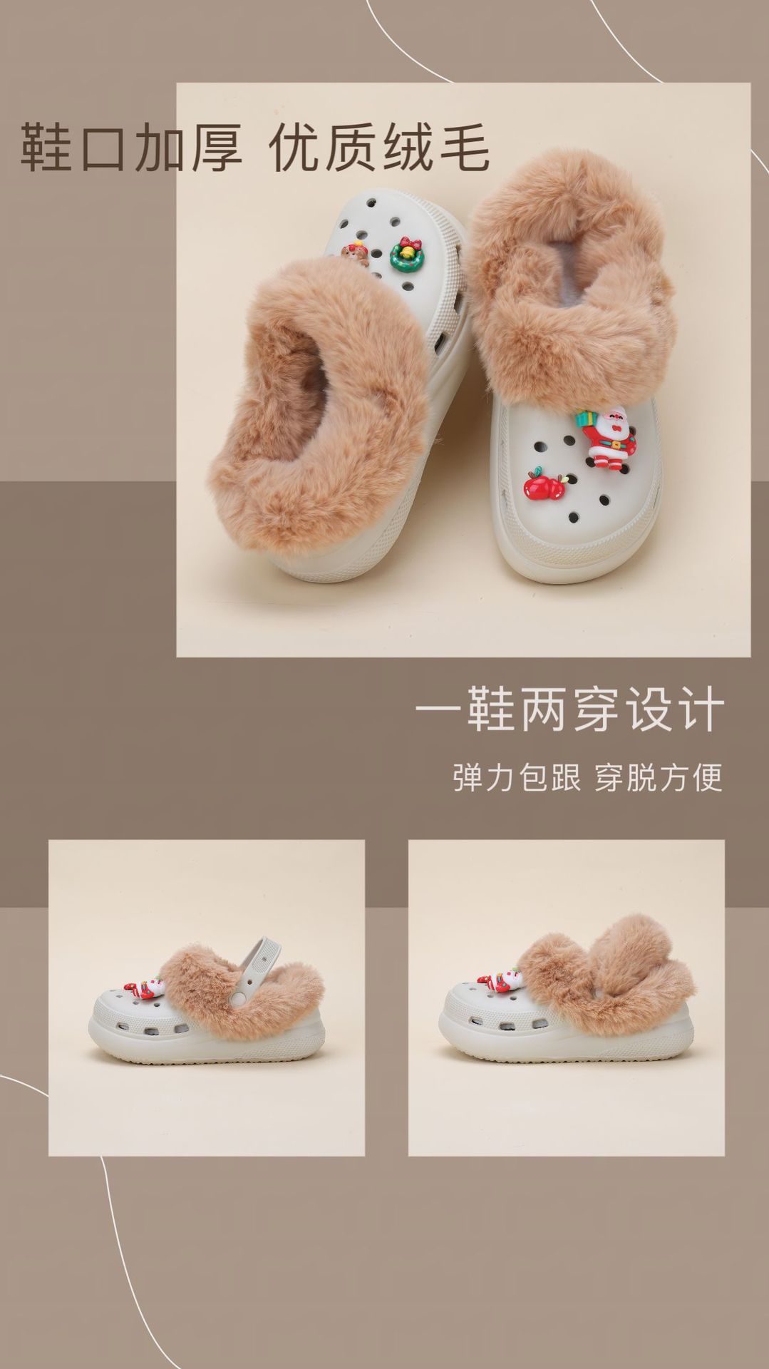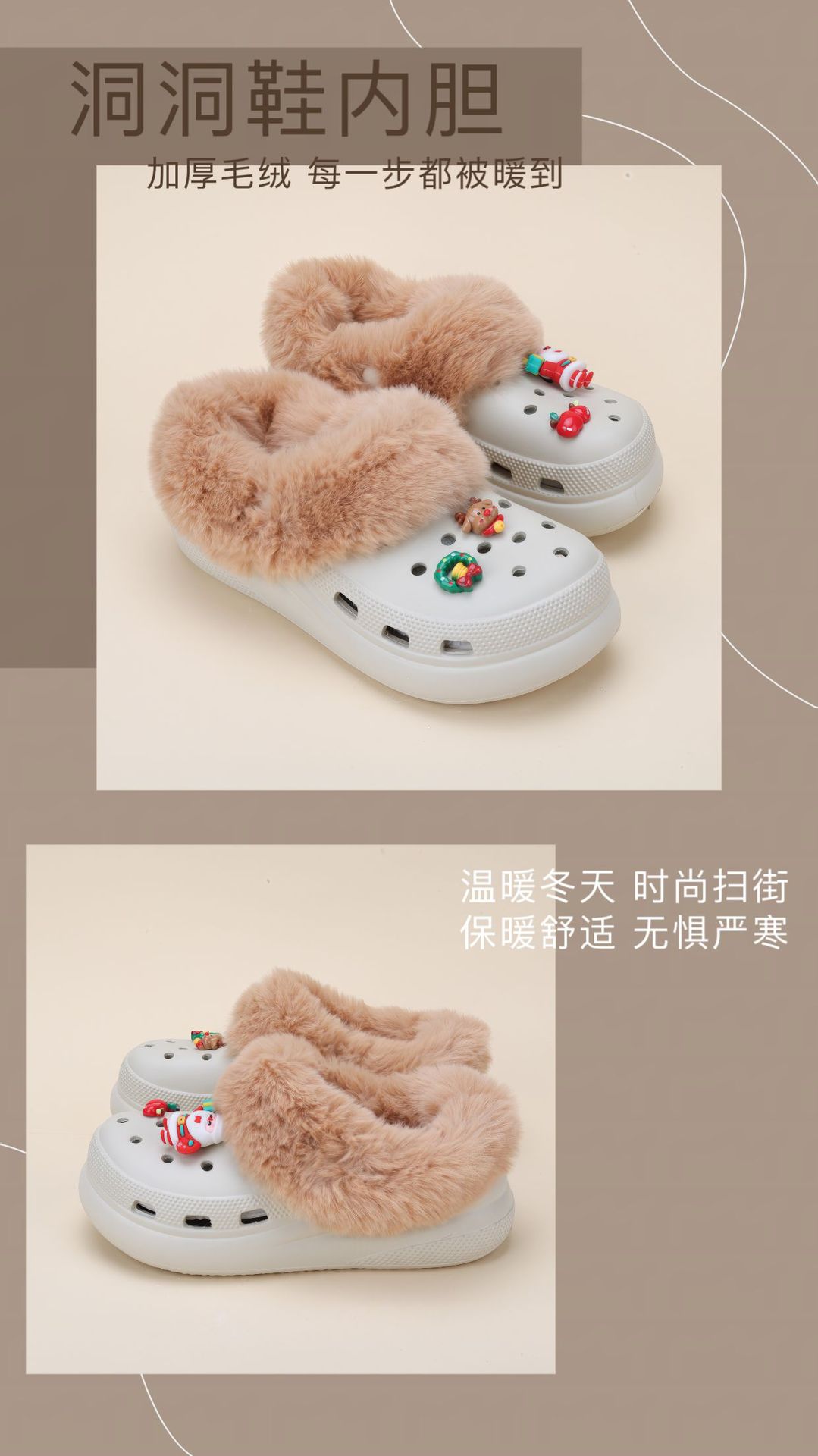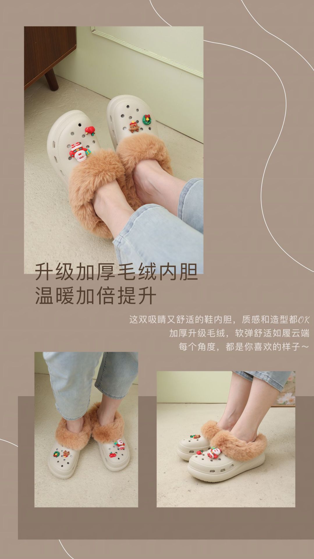 Тапочки-кроксы с флисовой подкладкой, утолщенные, с подкладкой на каблуке, из высококачественного шерстяного плюша, осенне-зимний пуховик, съемные.