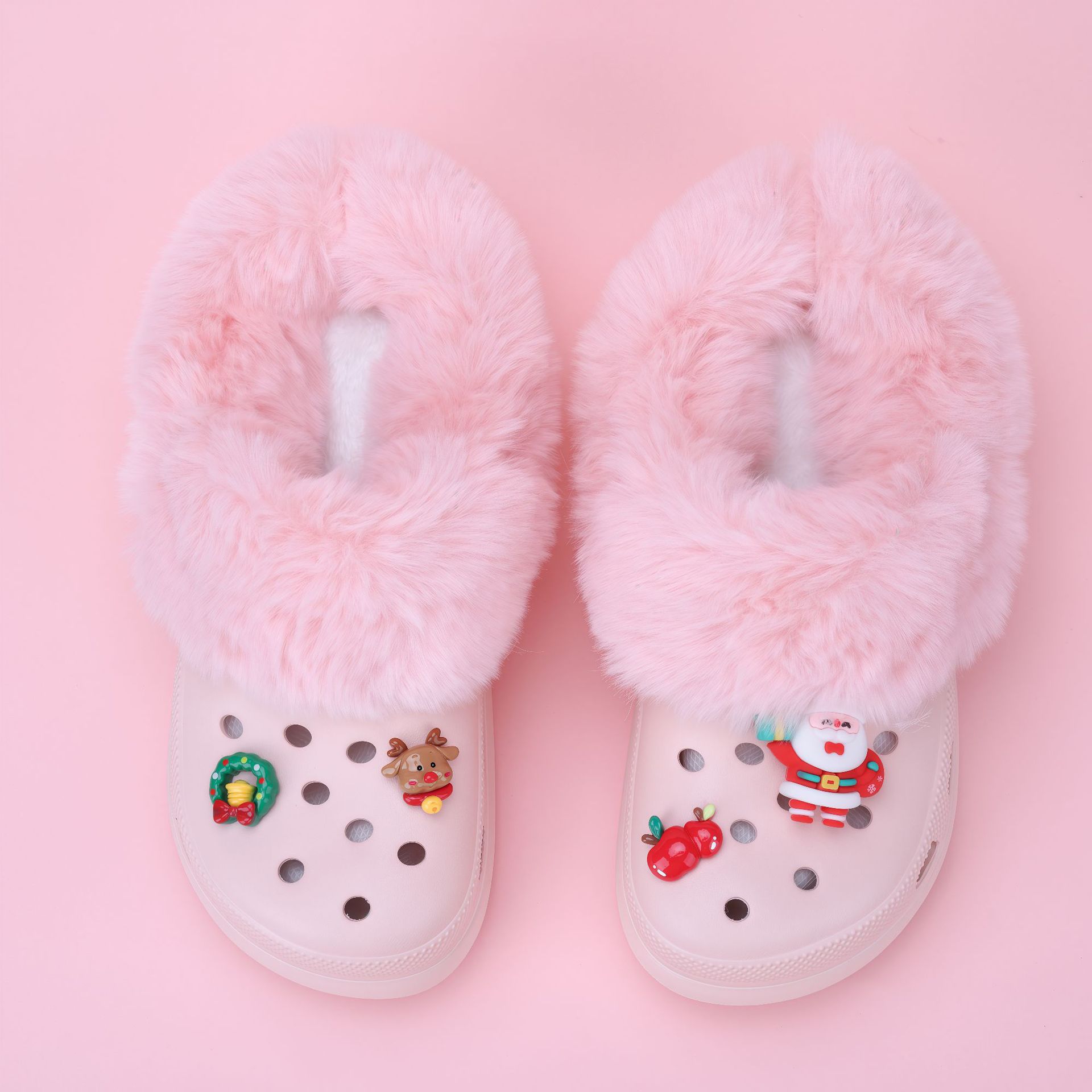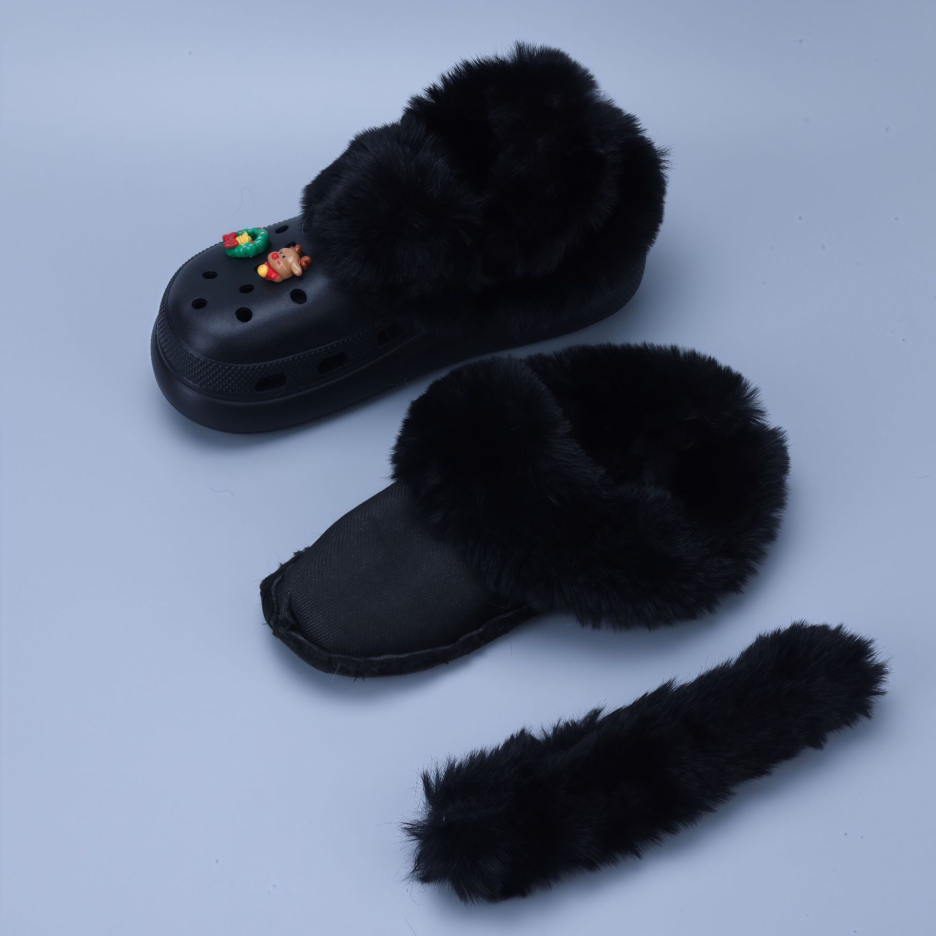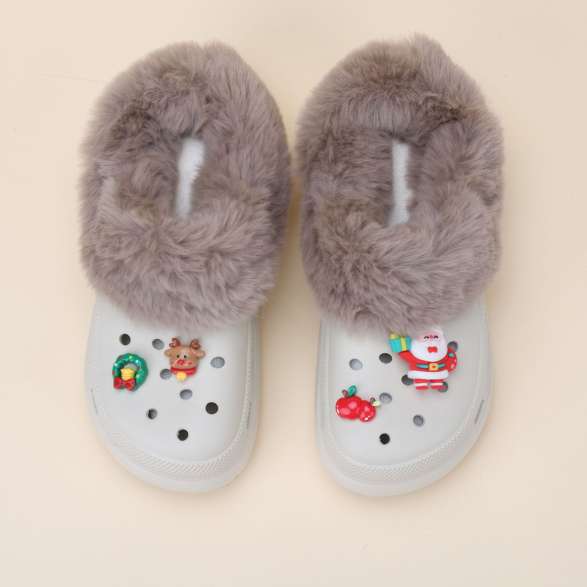 Тапочки-кроксы с флисовой подкладкой, утолщенные, с подкладкой на каблуке, из высококачественного шерстяного плюша, осенне-зимний пуховик, съемные.
