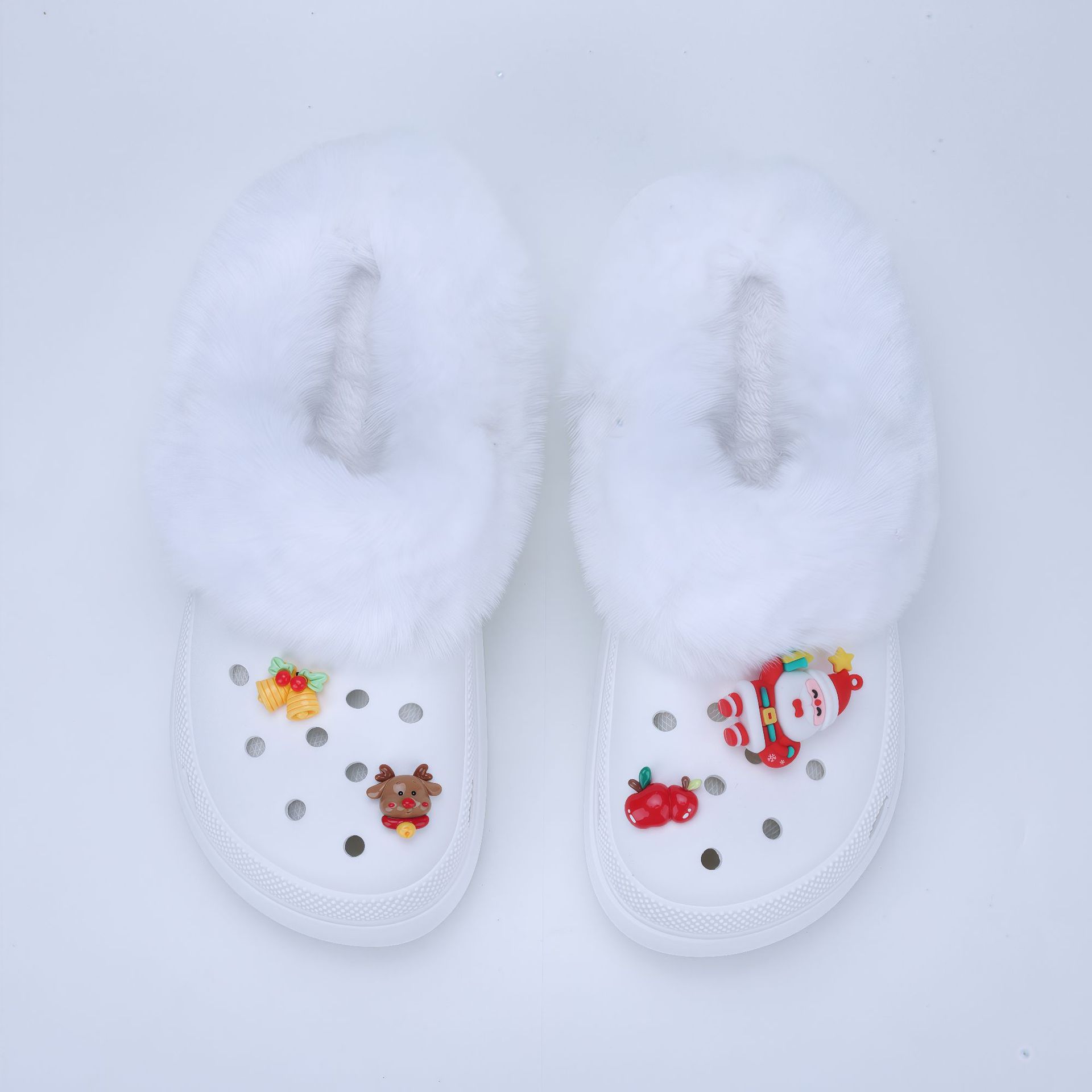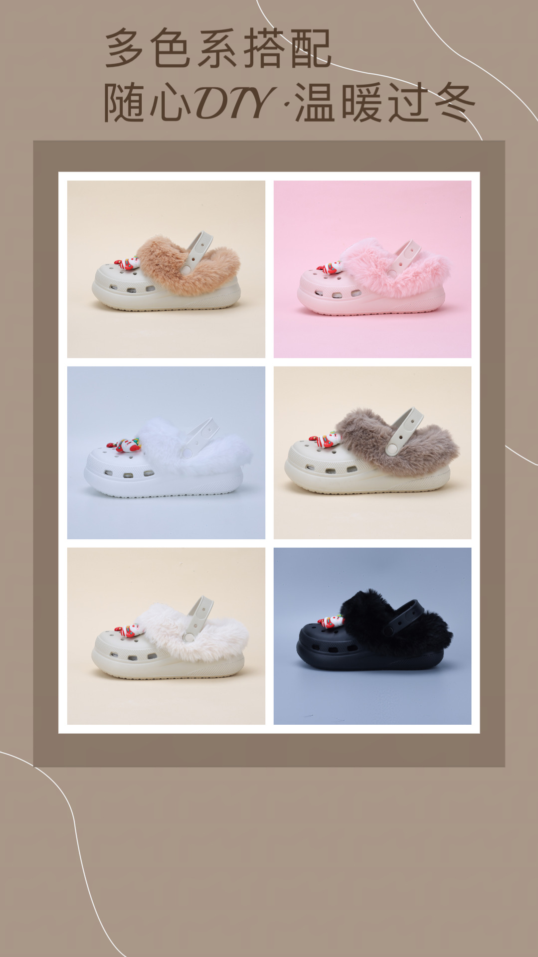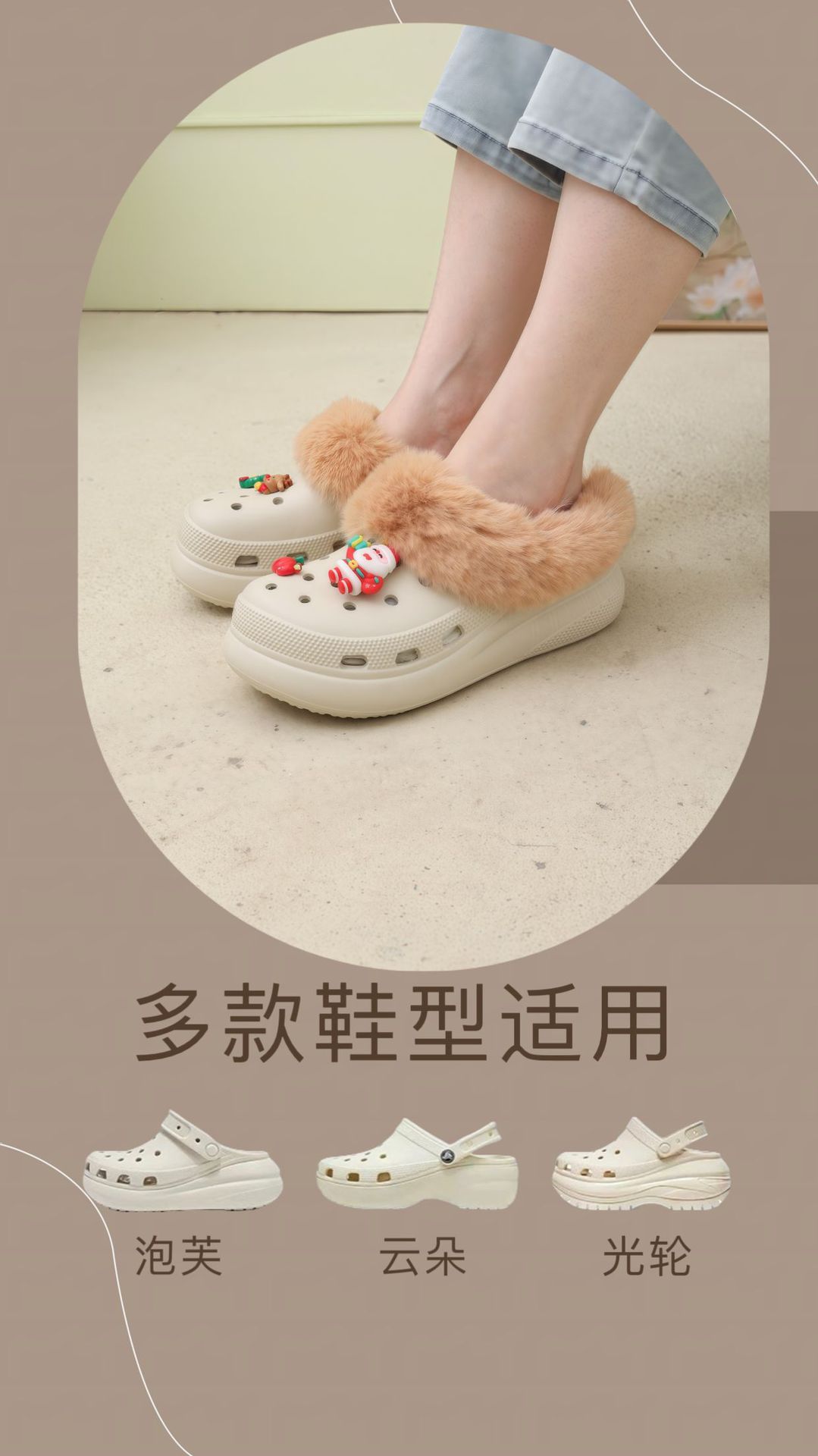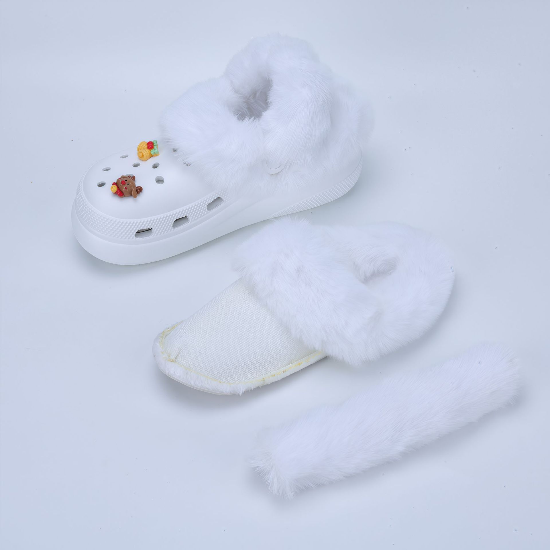 Тапочки-кроксы с флисовой подкладкой, утолщенные, с подкладкой на каблуке, из высококачественного шерстяного плюша, осенне-зимний пуховик, съемные.