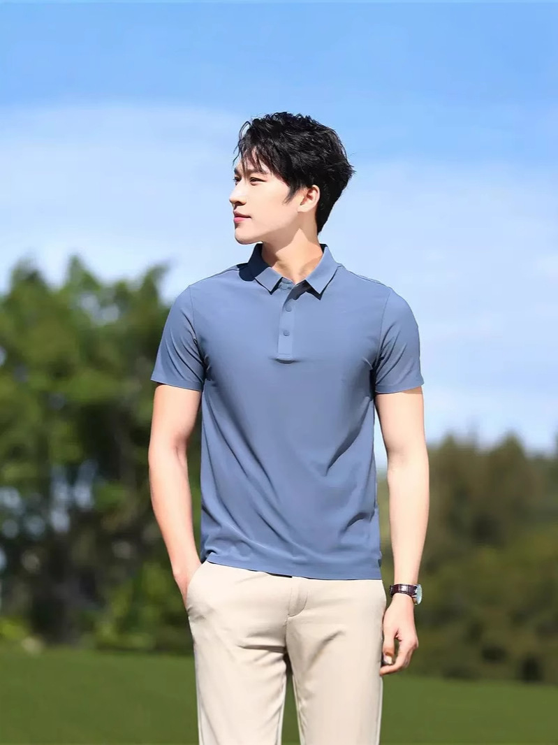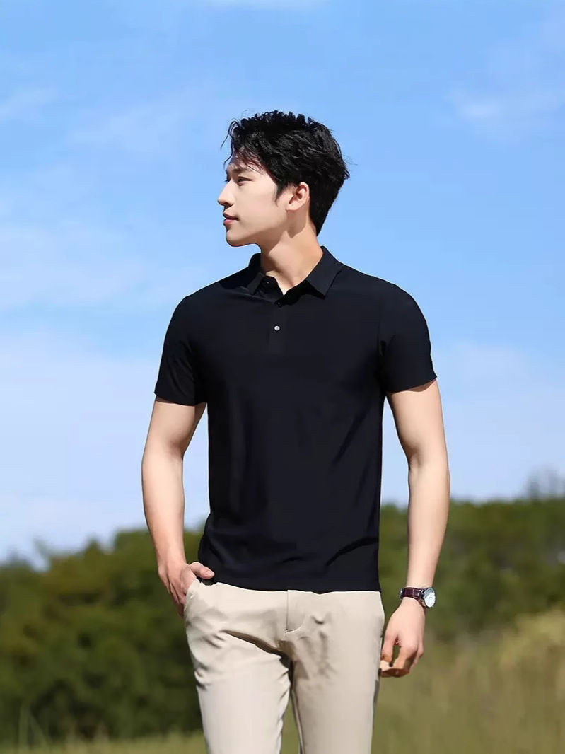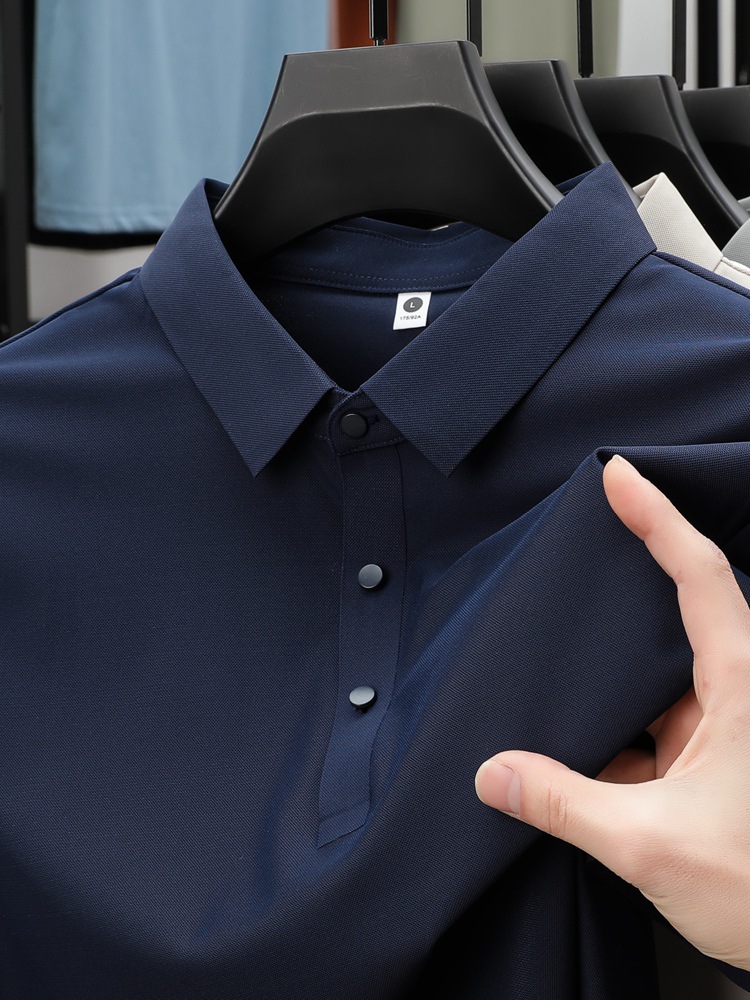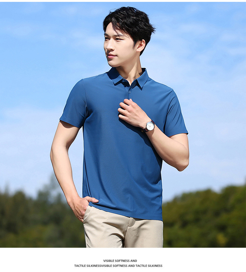 Летняя мужская бесшовная рубашка-поло из ледяного шелка с приклеенными быстросохнущими эластичными дышащими короткими рукавами, стильная деловая повседневная рабочая одежда