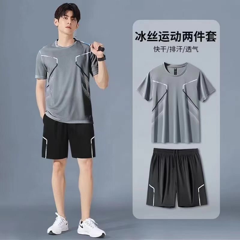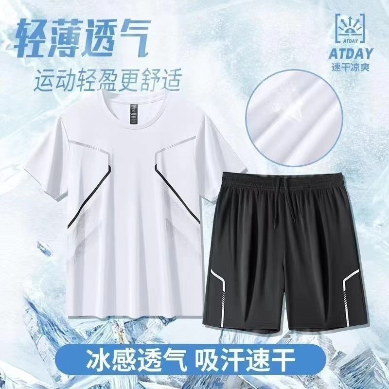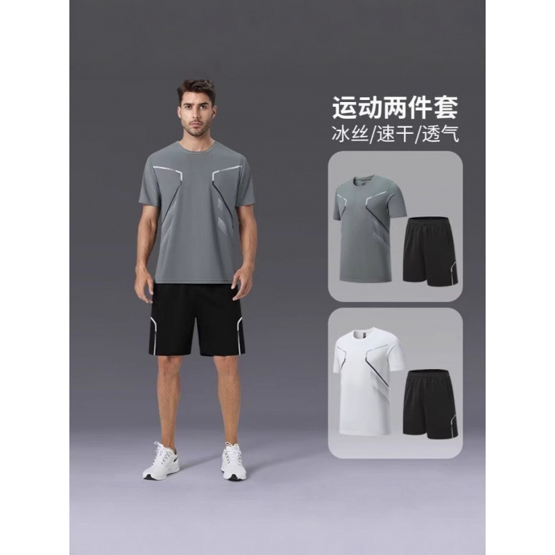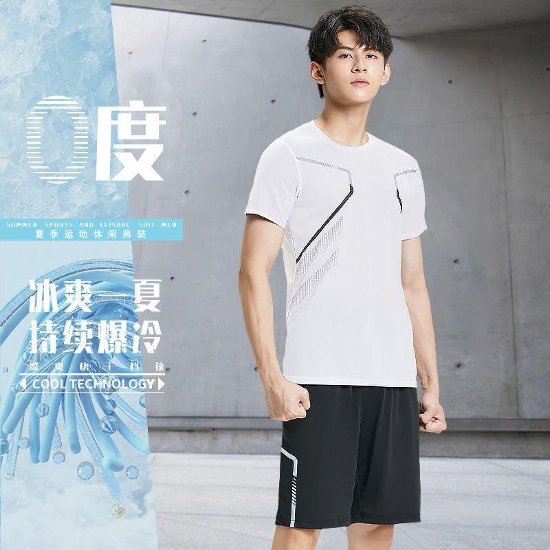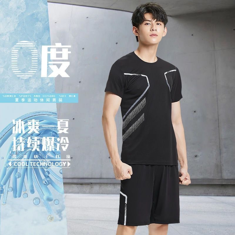 Спортивный костюм для мужчин ледяной шелк быстротушительный фитнес-футболка для бега шорты с короткими рукавами Летний тренировочный костюм для бадминтона