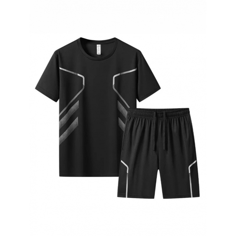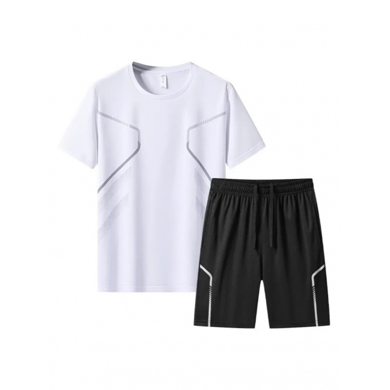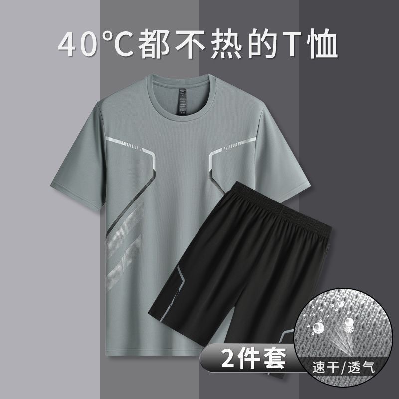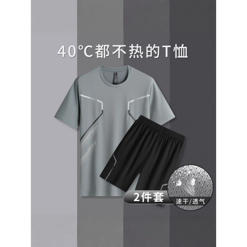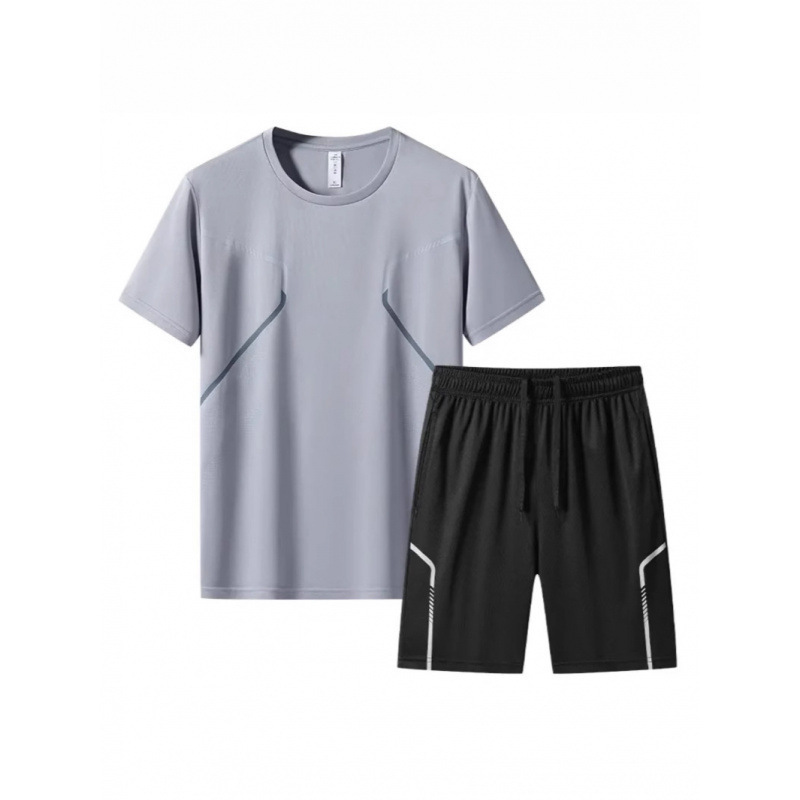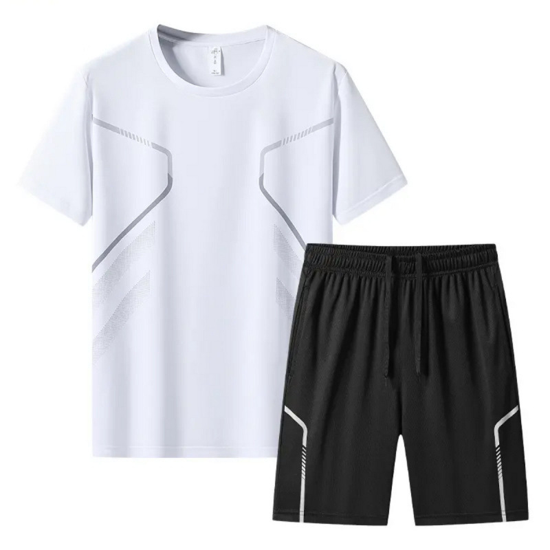 Спортивный костюм для мужчин ледяной шелк быстротушительный фитнес-футболка для бега шорты с короткими рукавами Летний тренировочный костюм для бадминтона