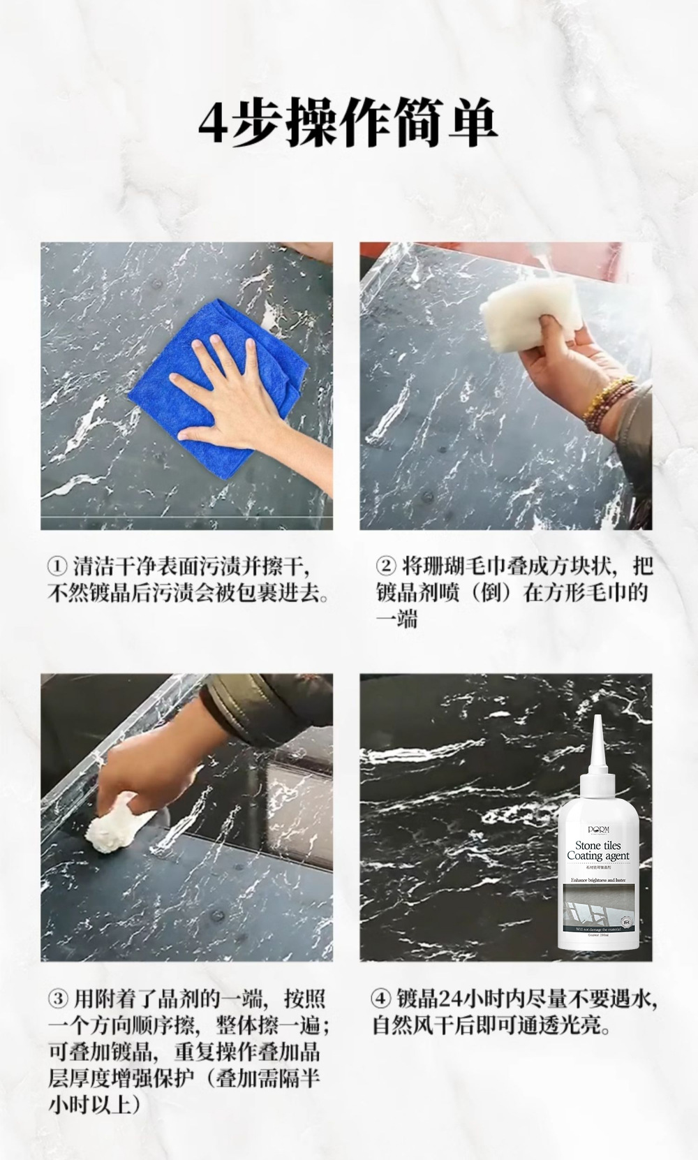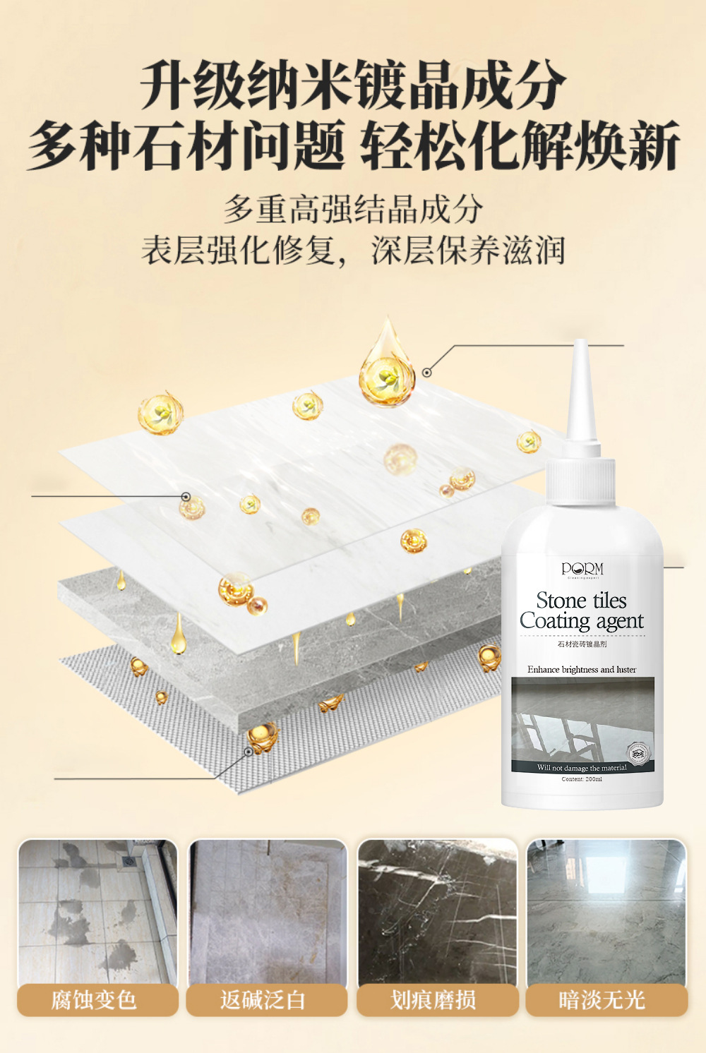 Каменное покрытие, мраморная поверхность, восстановленная плитка, отбеливатель, восстанавливающий восстановитель, возвращает основание, нанокристаллы