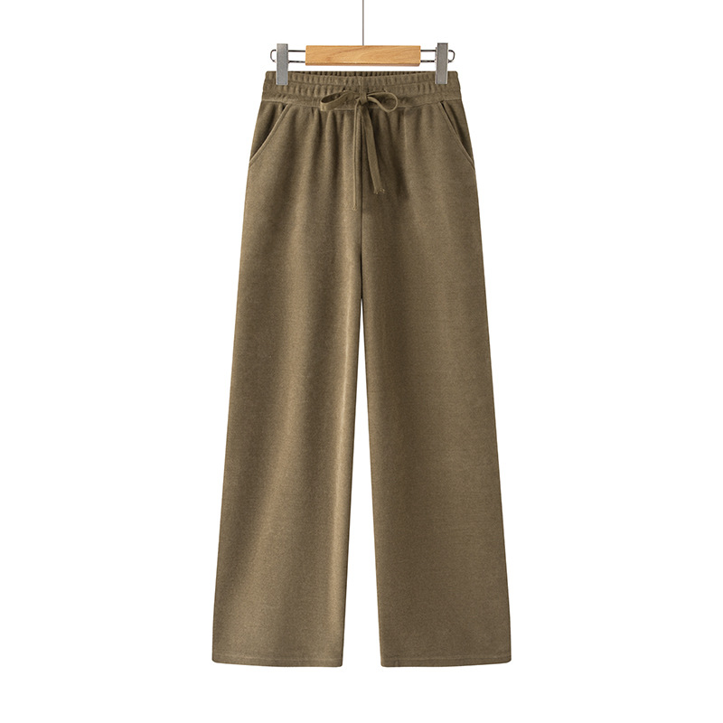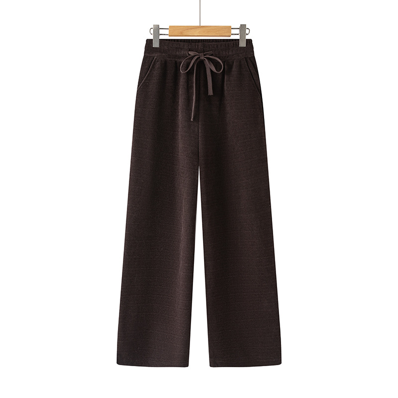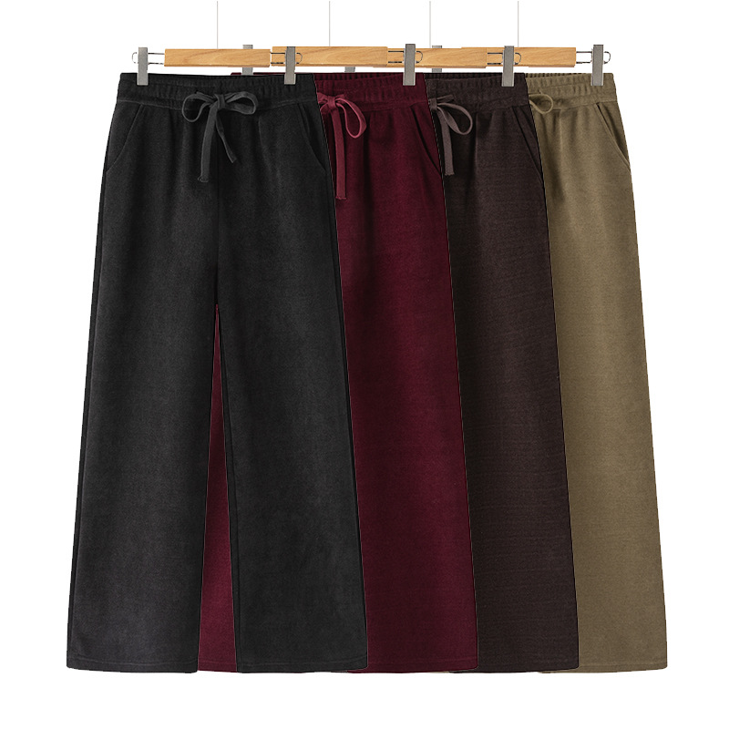 Брюки для женщин среднего возраста и пожилых людей на флисовой подкладке, утепленные, в клетку, с широкими штанинами, объемным высоким поясом и шнурком, свободные прямые брюки для мам, коллекция Осень/Зима 2025