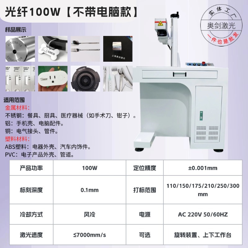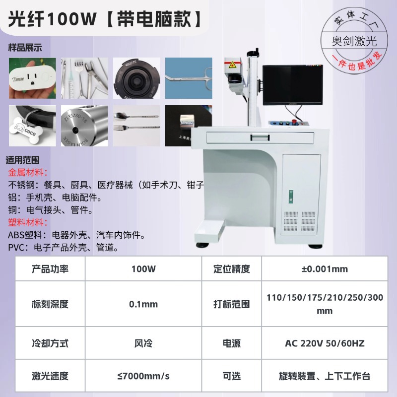 Оптоволокно 20Вт-без компьютера; Оптоволокно 20Вт-с компьютером; Оптоволокно 30Вт-без компьютера; Оптоволокно 30Вт-с компьютером; Оптоволокно 50Вт-без компьютера; Оптическое волокно 50Вт-с компьютером; Оптоволокно 100Вт-без компьютера; Оптоволокно 100Вт-с компьютером; OEM/ODM образец - без использования станков; Различные конфигурации моделей — свяжитесь с отделом обслуживания клиентов для получения точной стоимости.; Нестандартные образцы обработки OEM