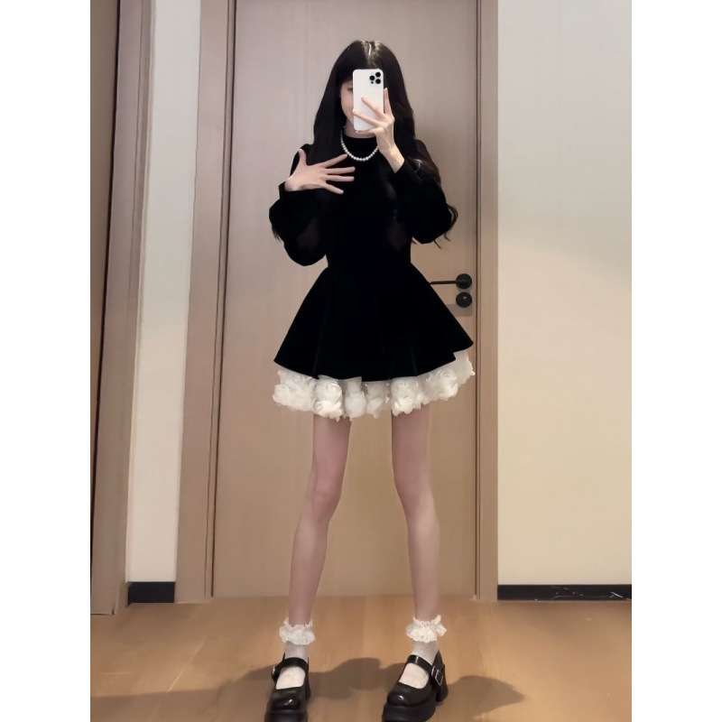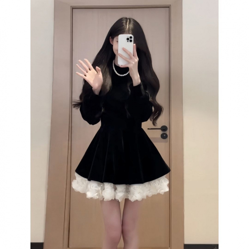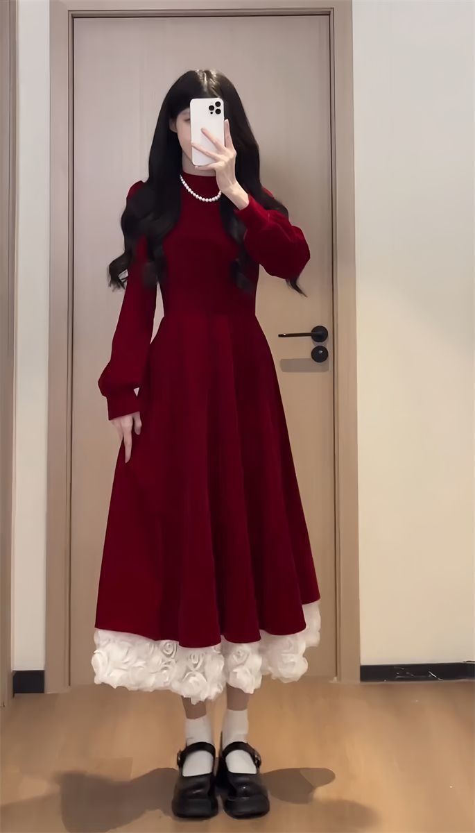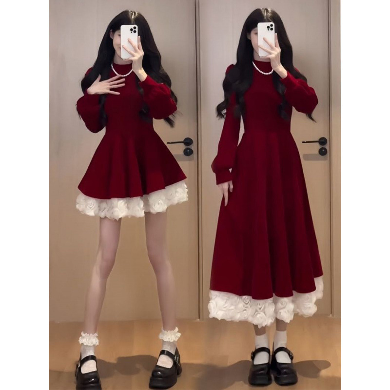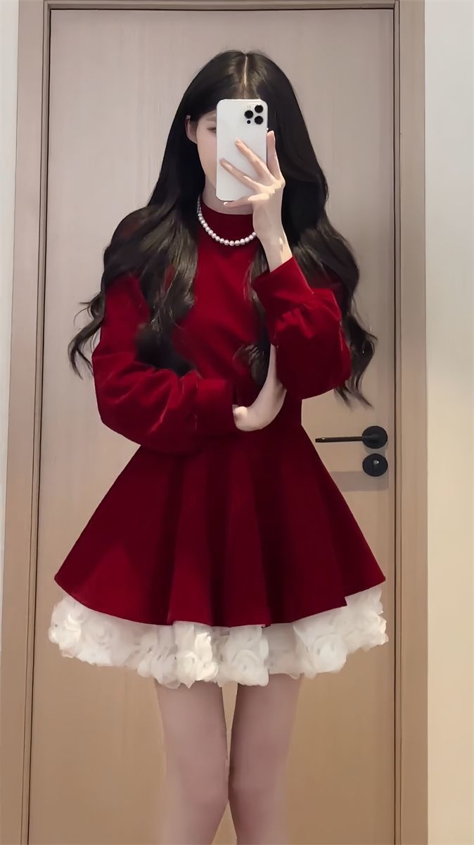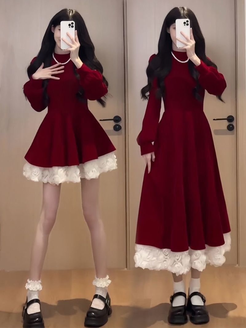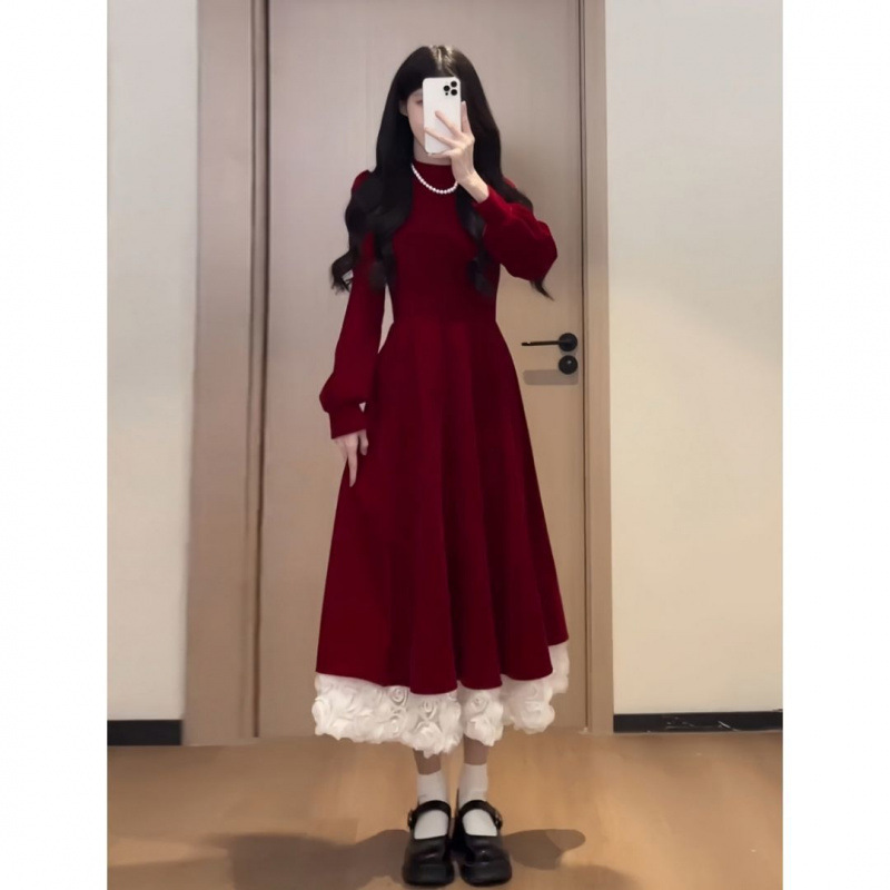 Чувство подруги в бархатном платье с талией Женская осень-зима 2024 Рождественский костюм Сладкое красное платье с уменьшением возраста