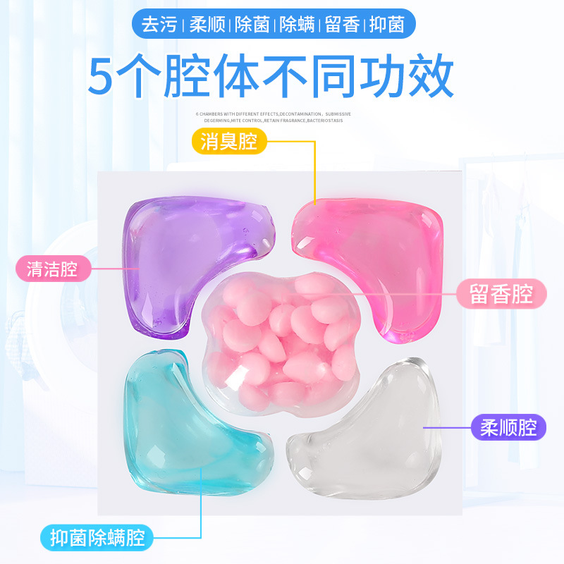 Ароматизирующие гранулы для стирки Tisbeni 5D Camellia, пятисекционные шарики для стиральных машин.