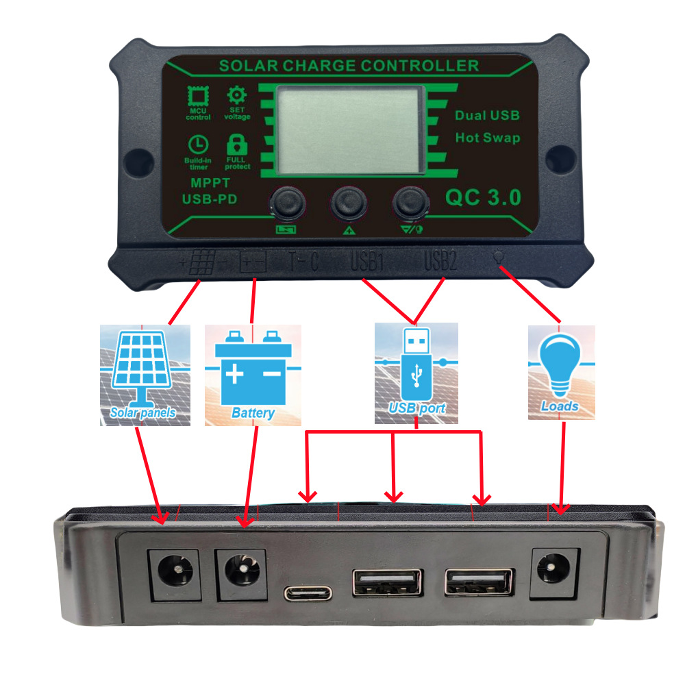 Новый солнечный контроллер с быстрой зарядкой MPPT, двойная розетка USB с портом постоянного тока для простой установки и использования, стабилизация напряжения зарядки