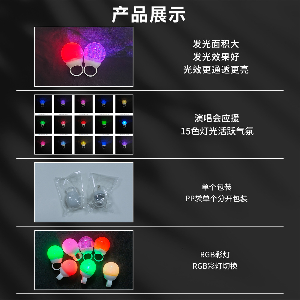 它轻便易戴,解放双手,让你尽情挥舞,释放激情! 多种炫彩光效,随心切换,与音乐节奏完美融合,打造专属你的应援style! 无论是演唱会、音乐节,还是派对聚会,发光手指灯都能让你成为人群焦点,尽情享受狂欢时刻!