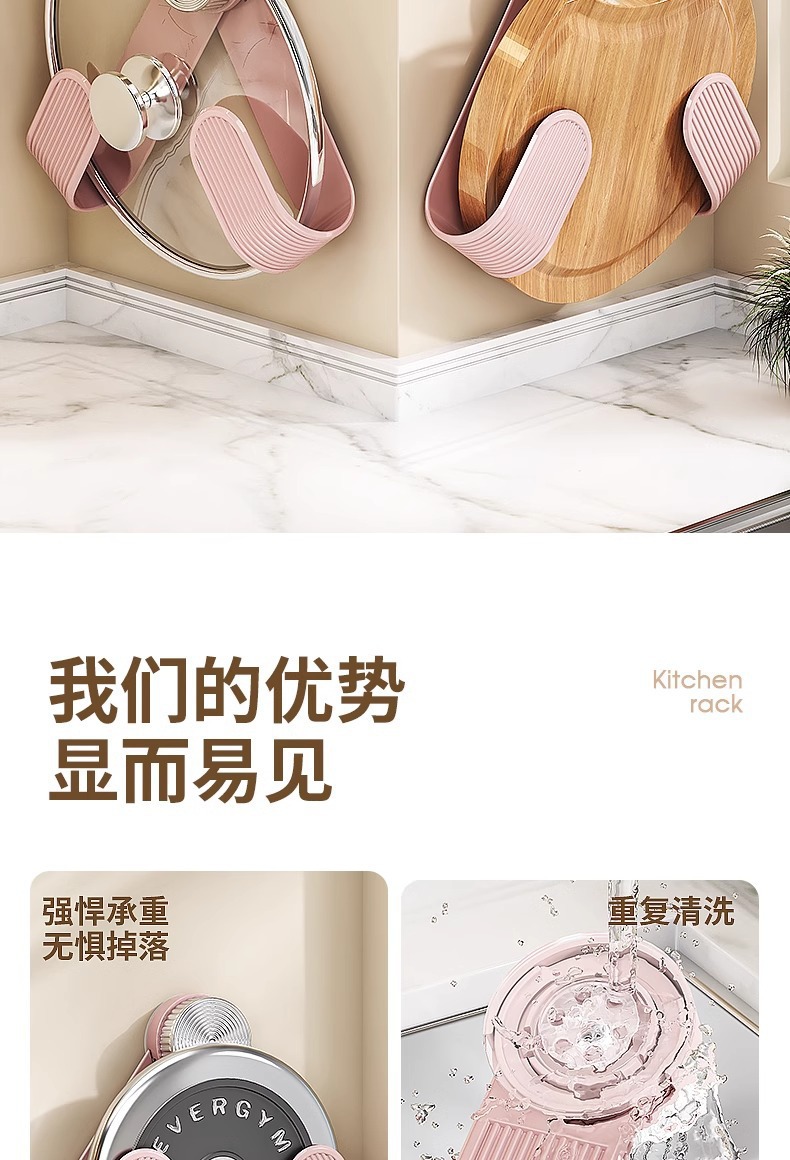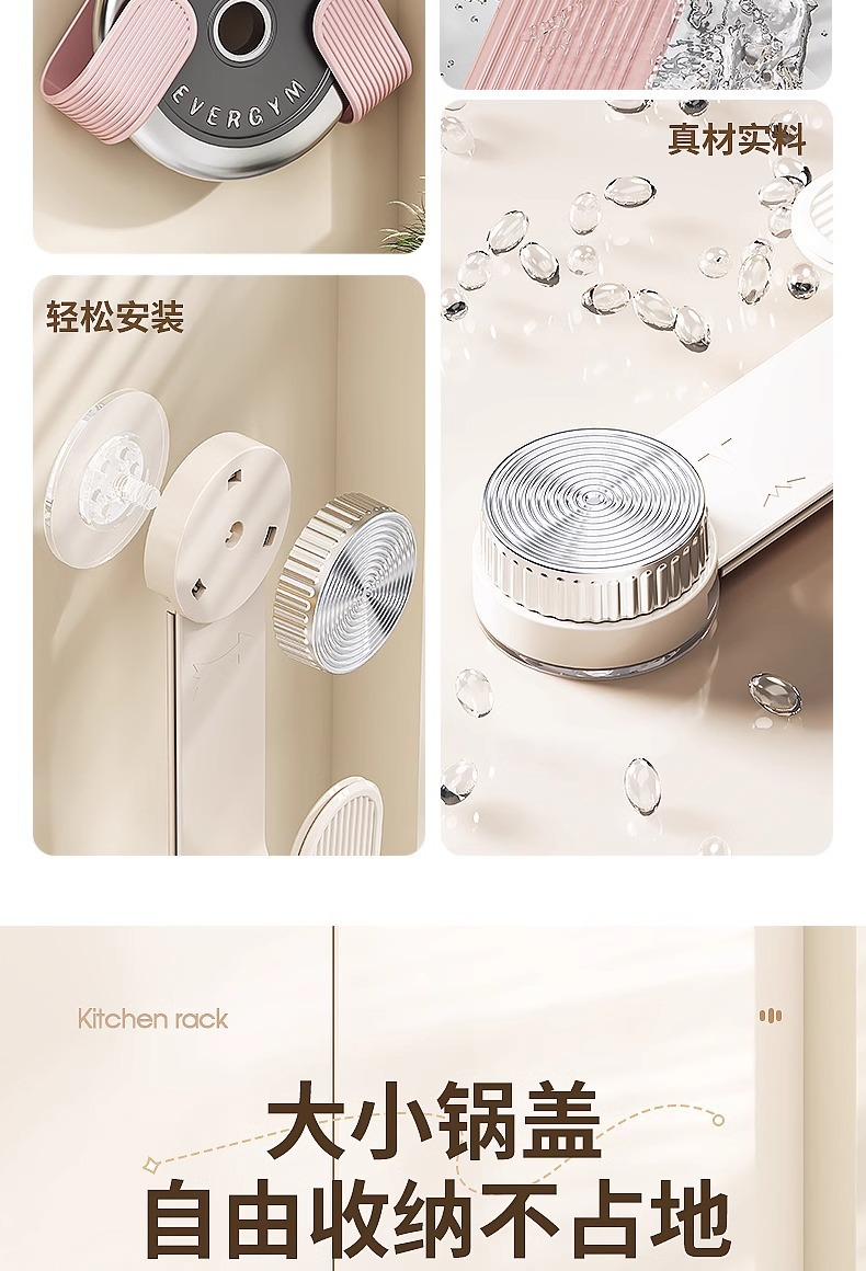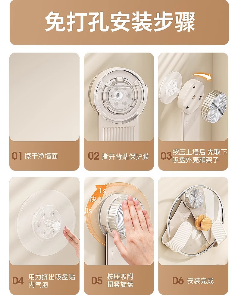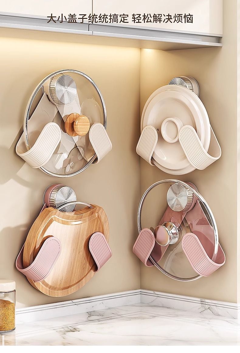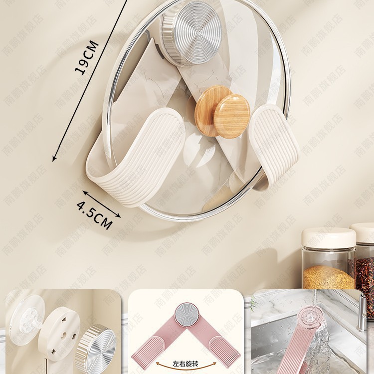 Кремовая присоска. Вращающаяся подставка для крышки кастрюли. Настенная кухонная стойка для хранения без перфорации. Стеллаж для хранения. Стеллаж для разделочной доски. Стеллаж для разделочной доски.