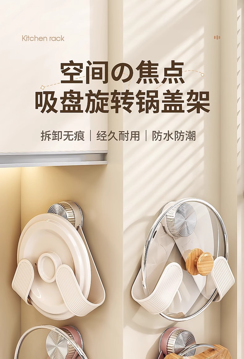Утолщенная вращающаяся подставка для крышек с присоской, настенная, без сверления, кухонная полка для хранения, подвесная полка для хранения, новая модель.