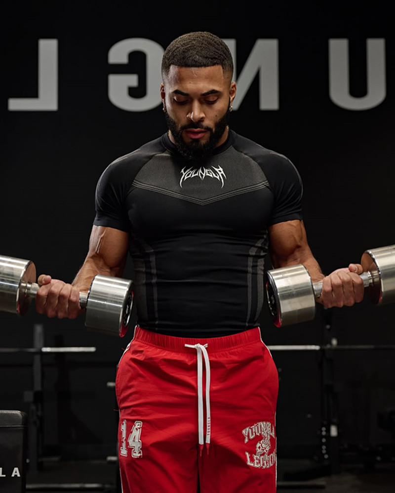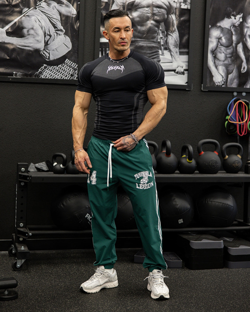 YOUNGAL новый тренажерный костюм тренер спортивная футболка колготки мужской тренировочный костюм с коротким рукавом