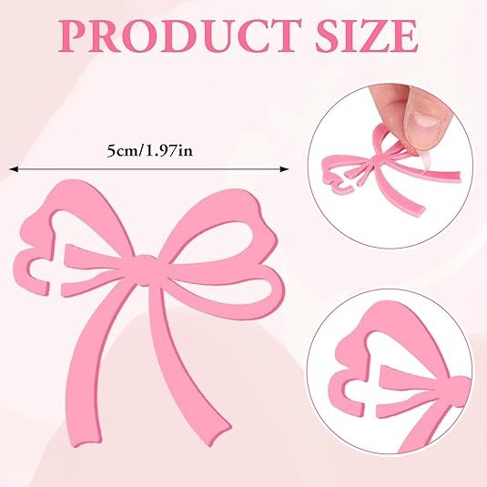 Лук No4 6*5см1,9г; Лук №1 4,5*5,3см; Бант №2 5*4см; Бант №3 5*3,5см; Лось 8,2*5,0см; Облака 4*2,9см; Шестиугольник 4,3*4,9см; Диаметр волнистого стиля 5,5 см.; Одиночная бабочка 4,7*6см; Двойная бабочка 4,8*4,8см; Стиль листа 4,5*4 см; Кролик в стиле 4*4 см; Лук No6 3,4*3,4 см; Лук No7 5*4см; Лук No 8 5*5см; Любовь 5*4,5 см