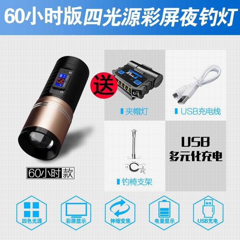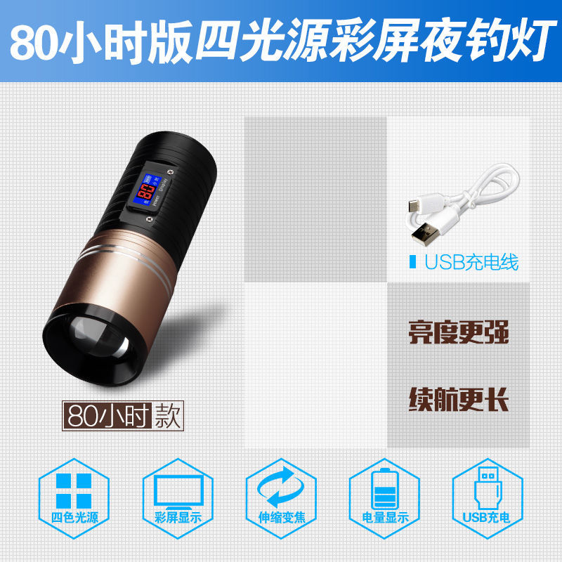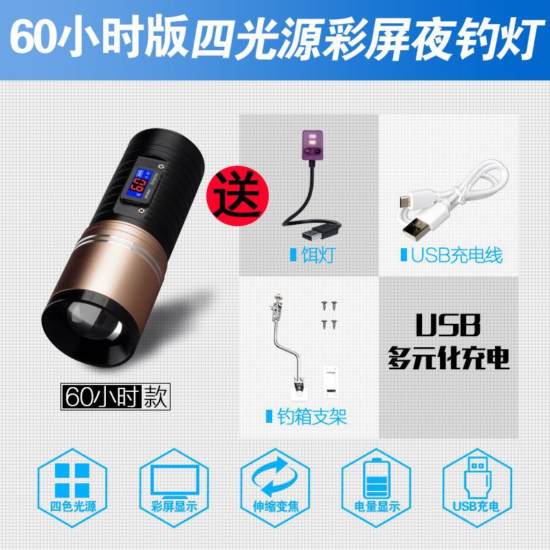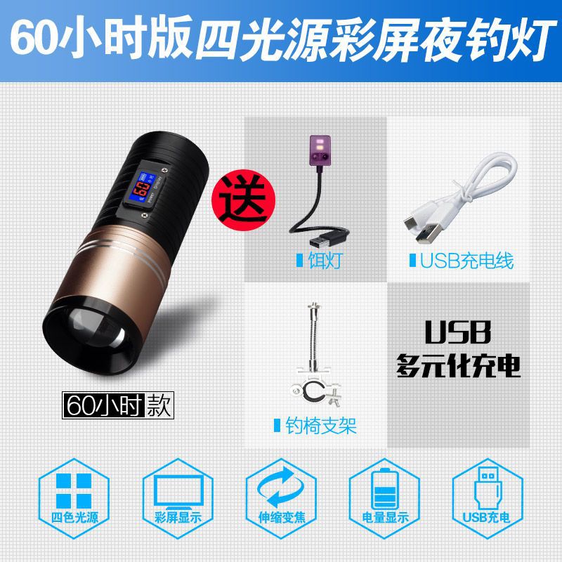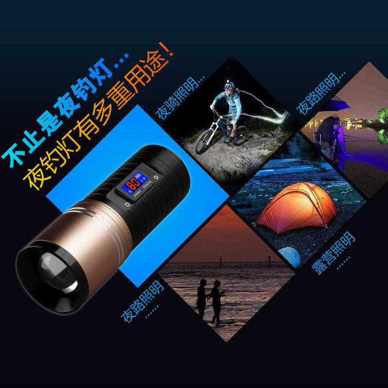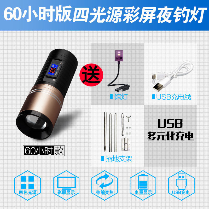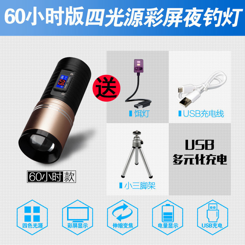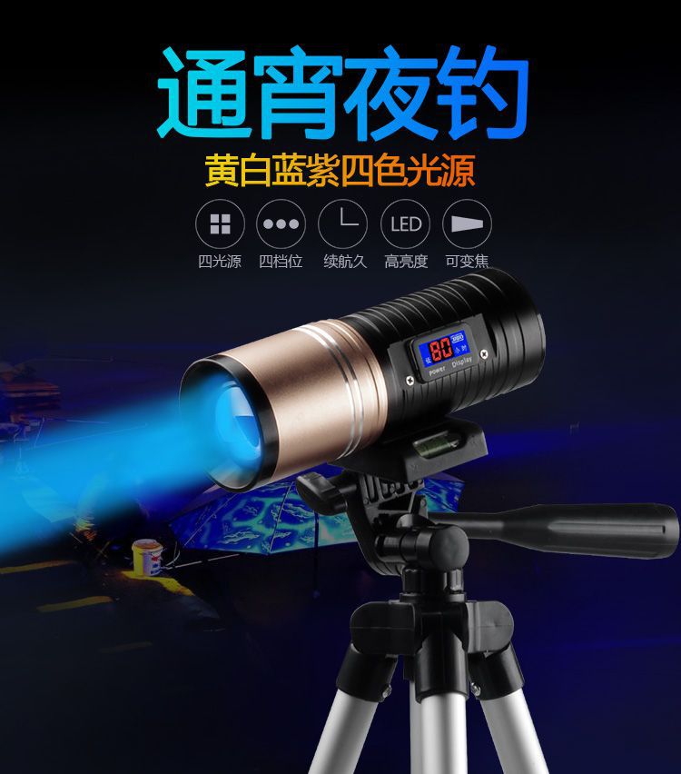 [Бесплатная доставка] сплав ночной рыболовный свет сильный свет рыболовный свет фиолетовый свет настольная рыбалка многофункциональная приманка зарядка синий фонарик