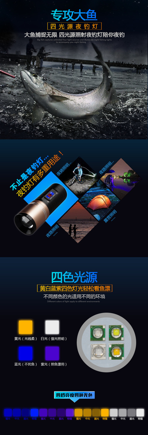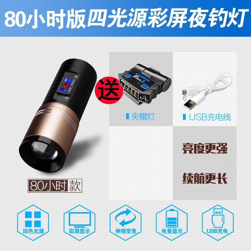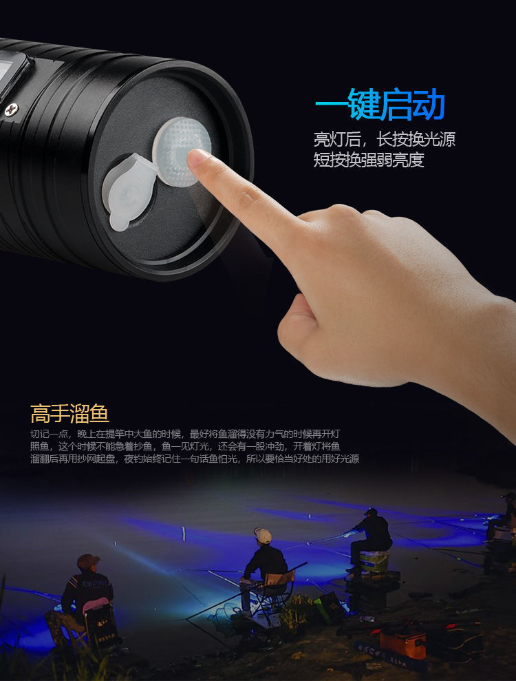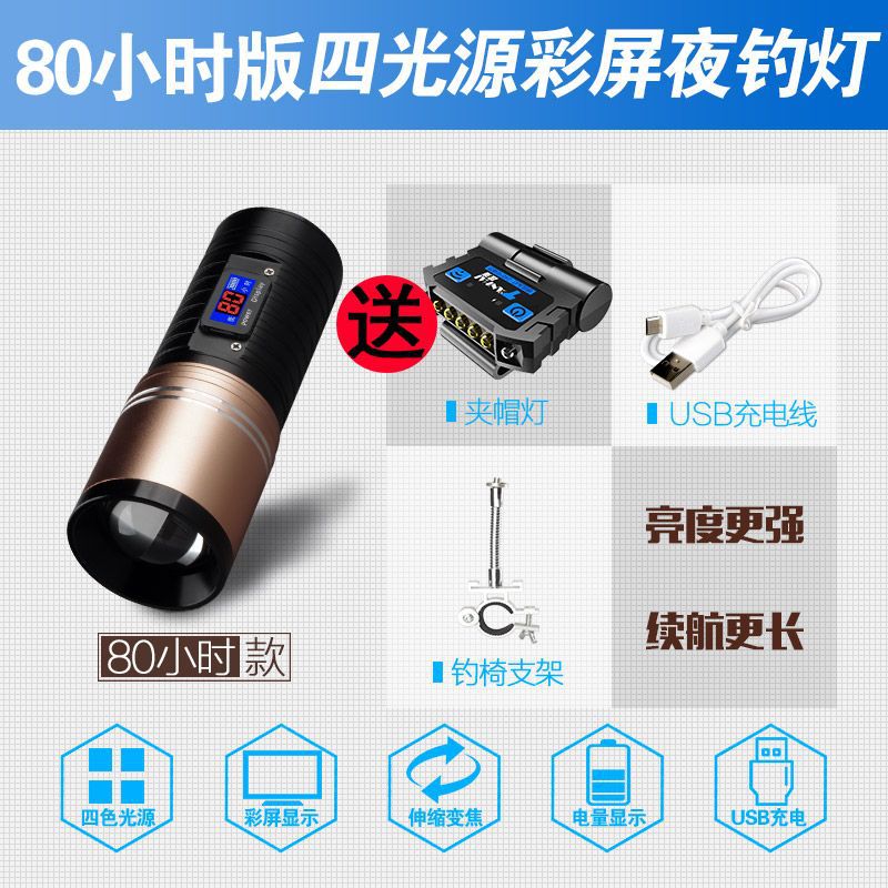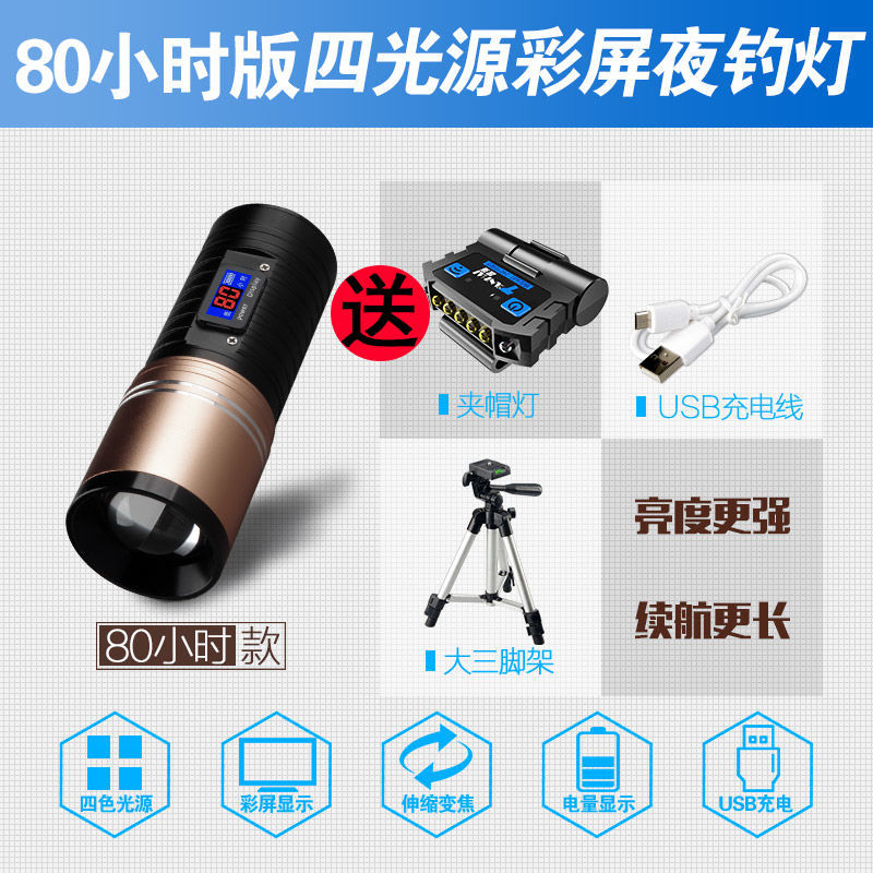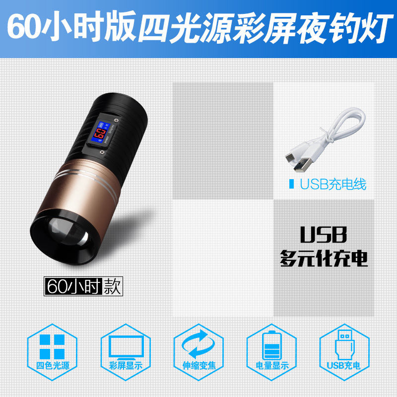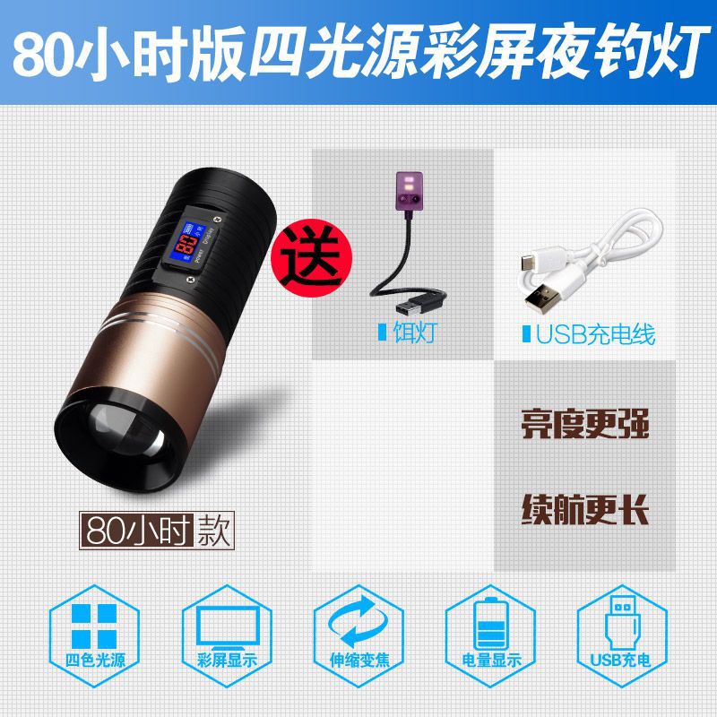 [Бесплатная доставка] сплав ночной рыболовный свет сильный свет рыболовный свет фиолетовый свет настольная рыбалка многофункциональная приманка зарядка синий фонарик