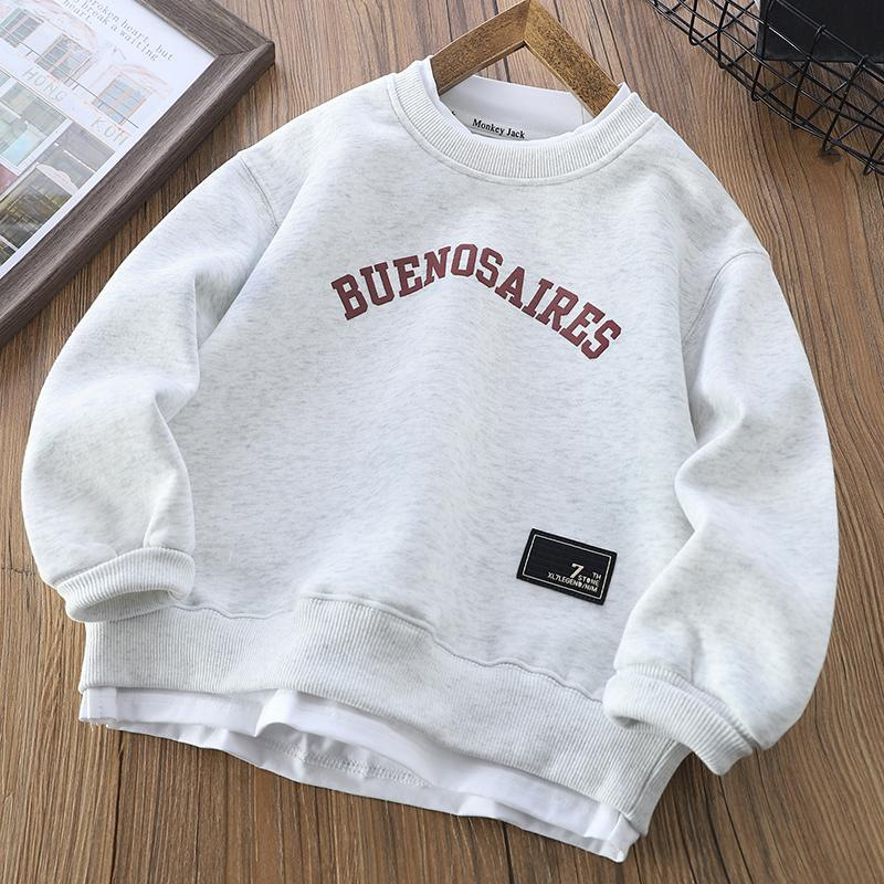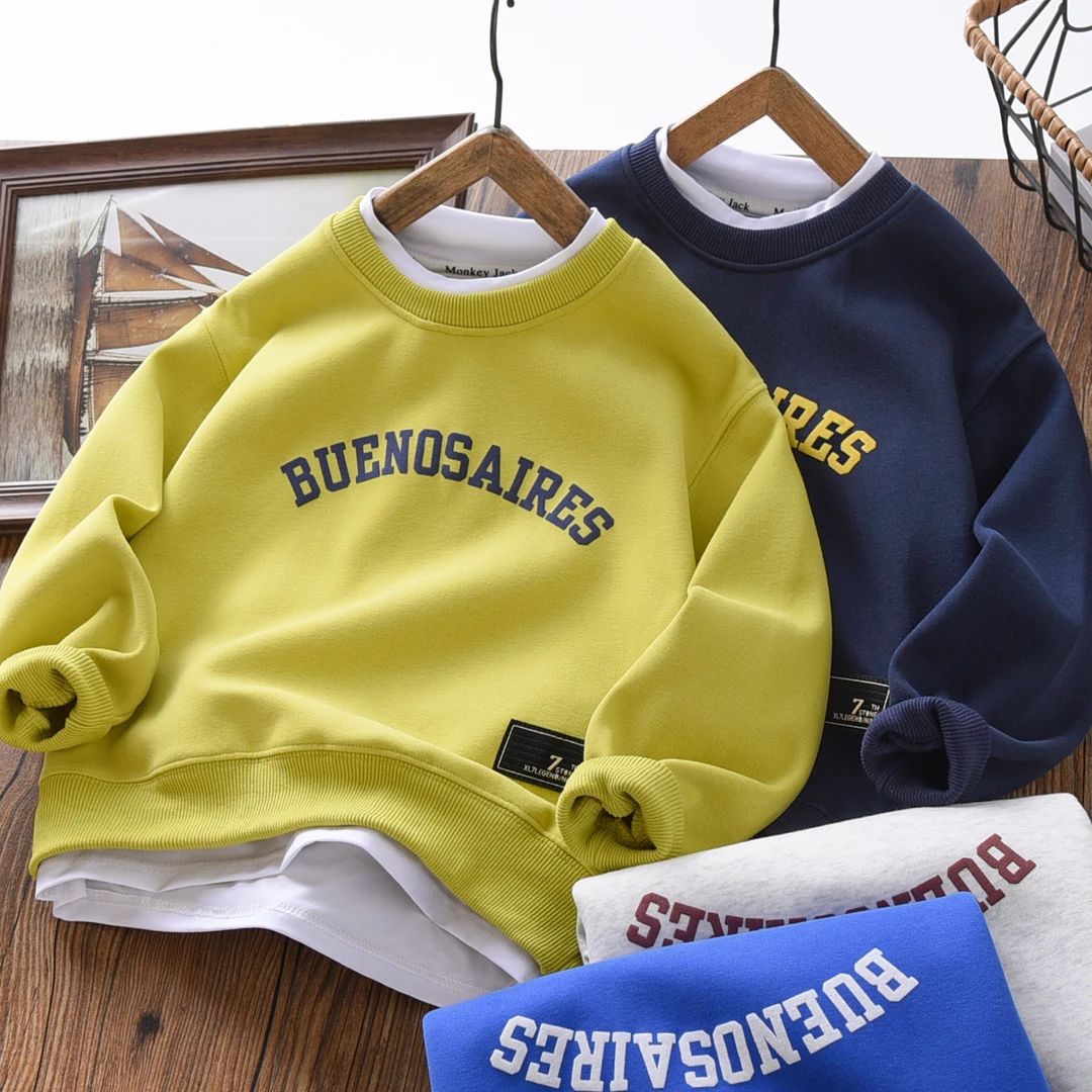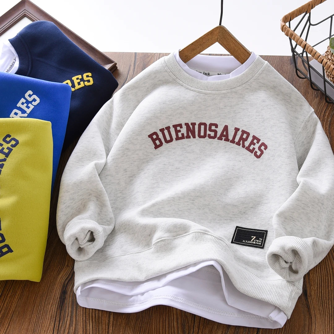Новая детская толстовка с принтом букв, имитирующая двухслойность, для весны и осени, большой размер, круглый вырез, модная верхняя одежда.
