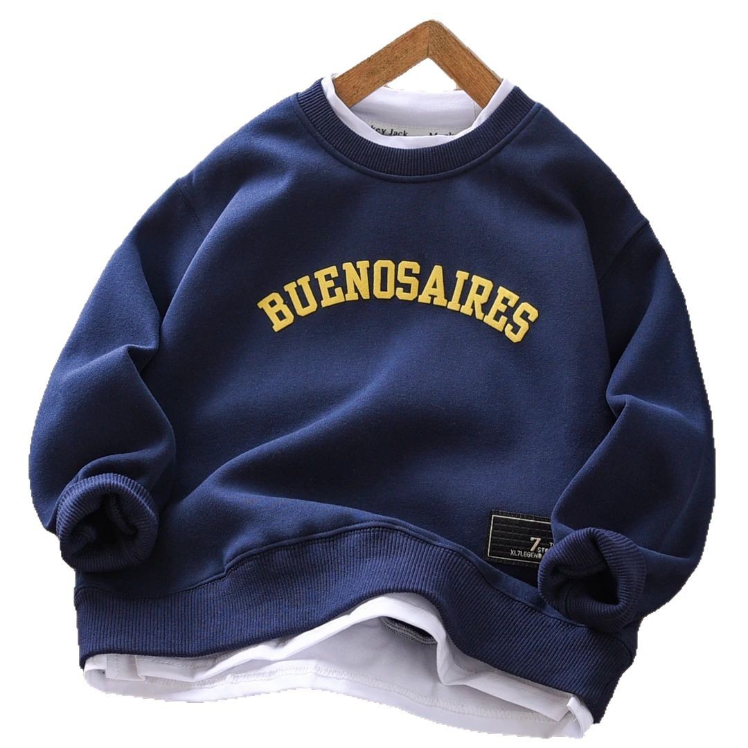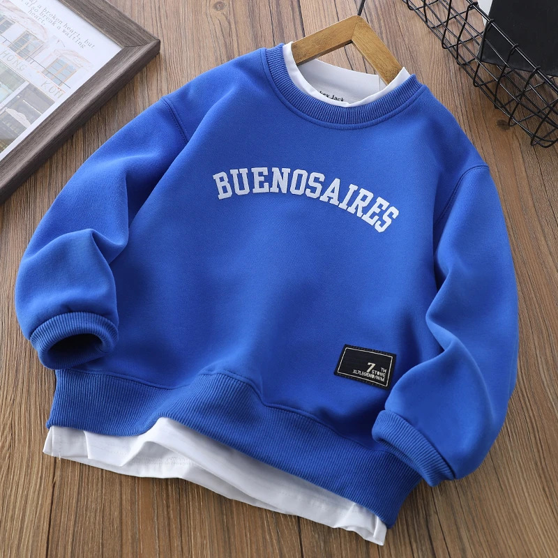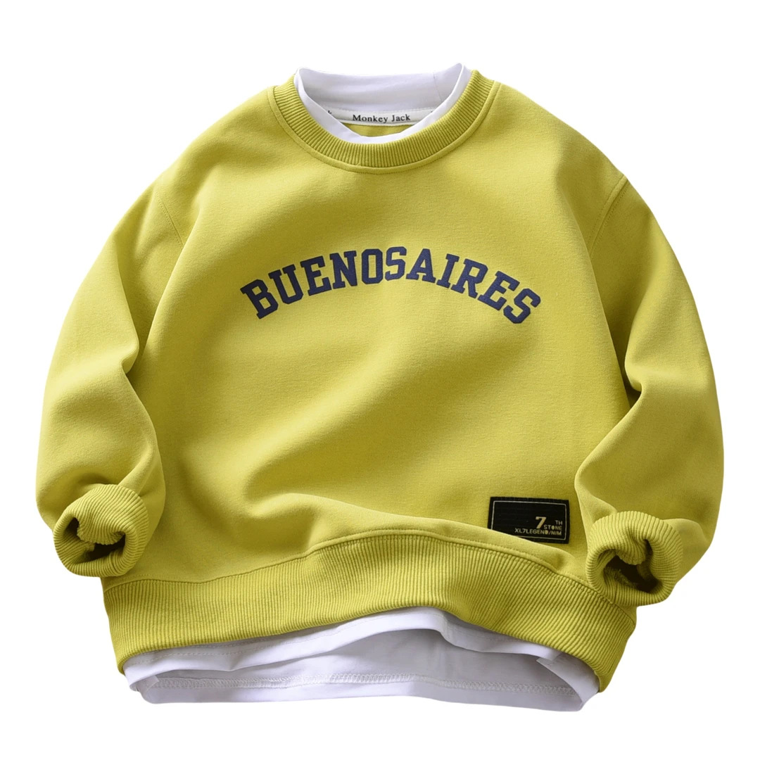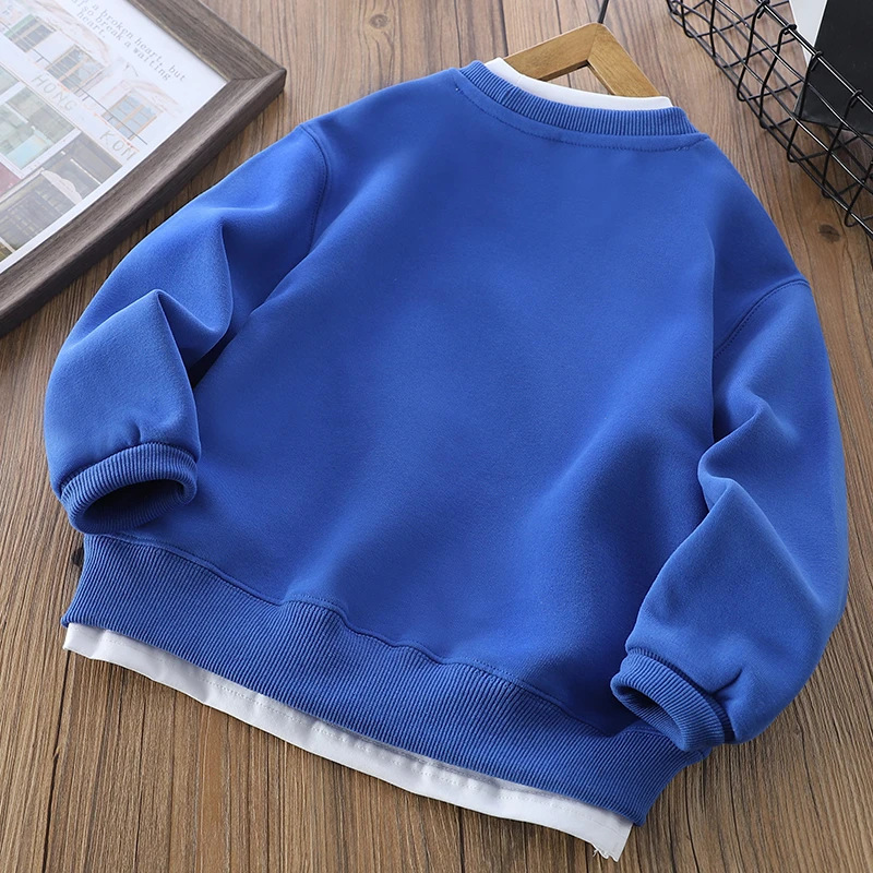 Новая детская толстовка с принтом букв, имитирующая двухслойность, для весны и осени, большой размер, круглый вырез, модная верхняя одежда.