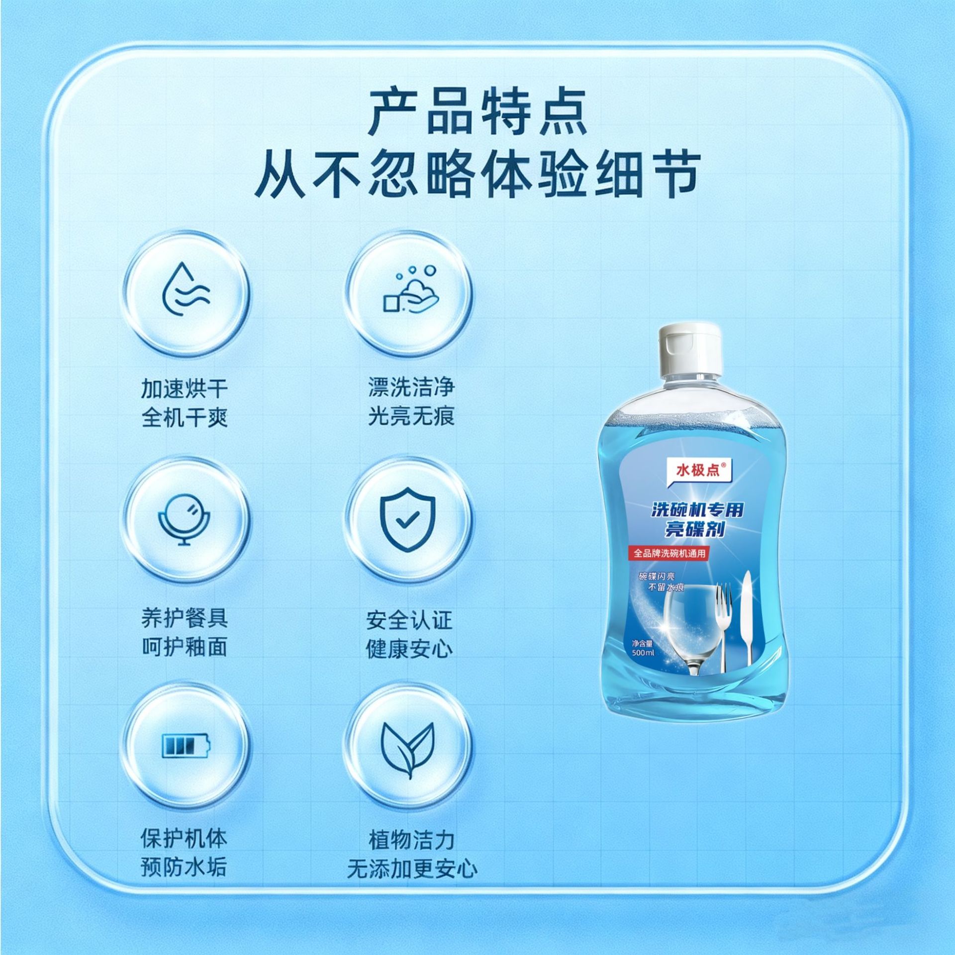 [Qing Soap Mother] Средство для ополаскивания посудомоечной машины, универсальное 500 мл, специальное мультиэффектное средство для посуды, водонепроницаемый осветлитель для размеров