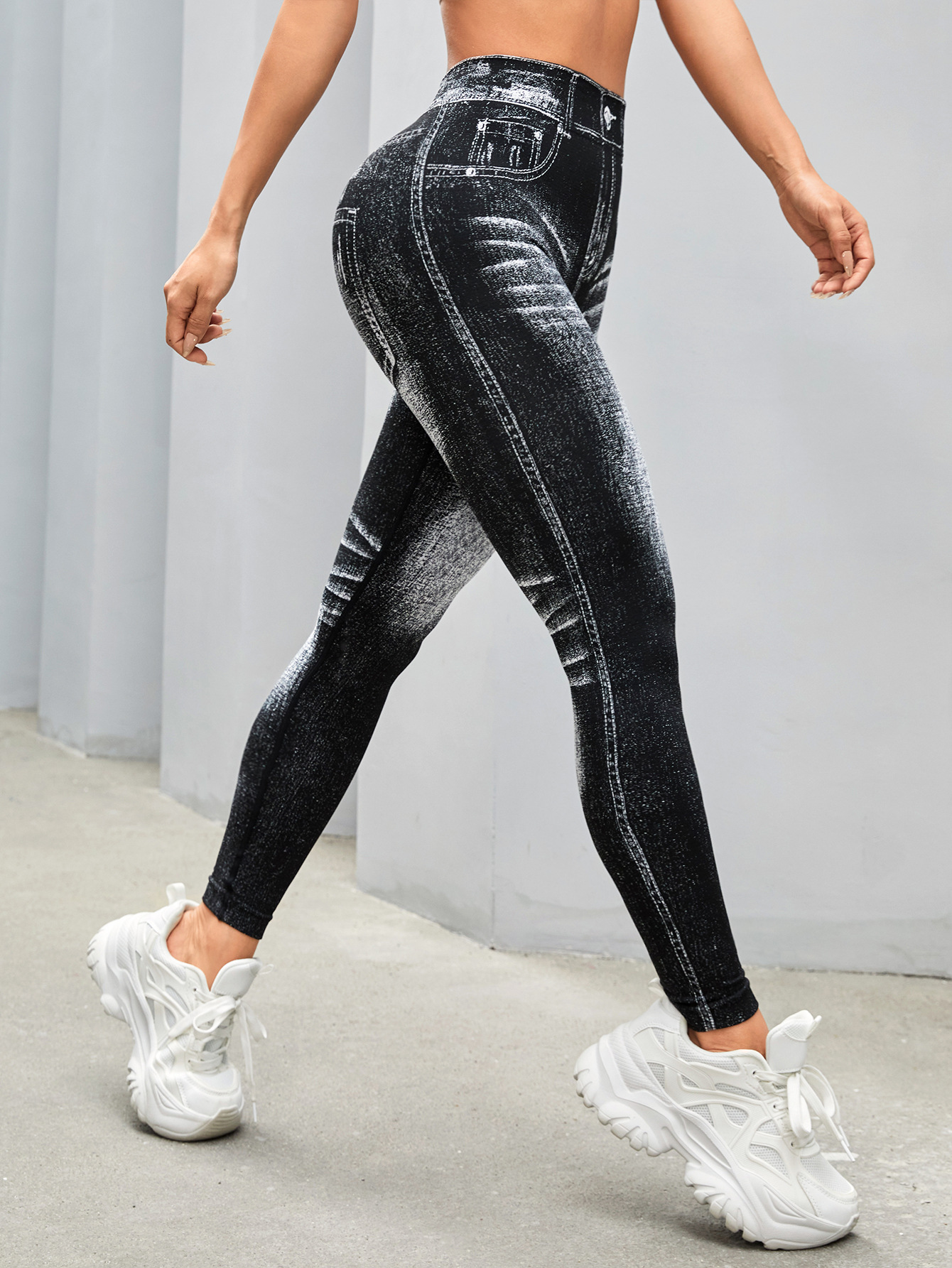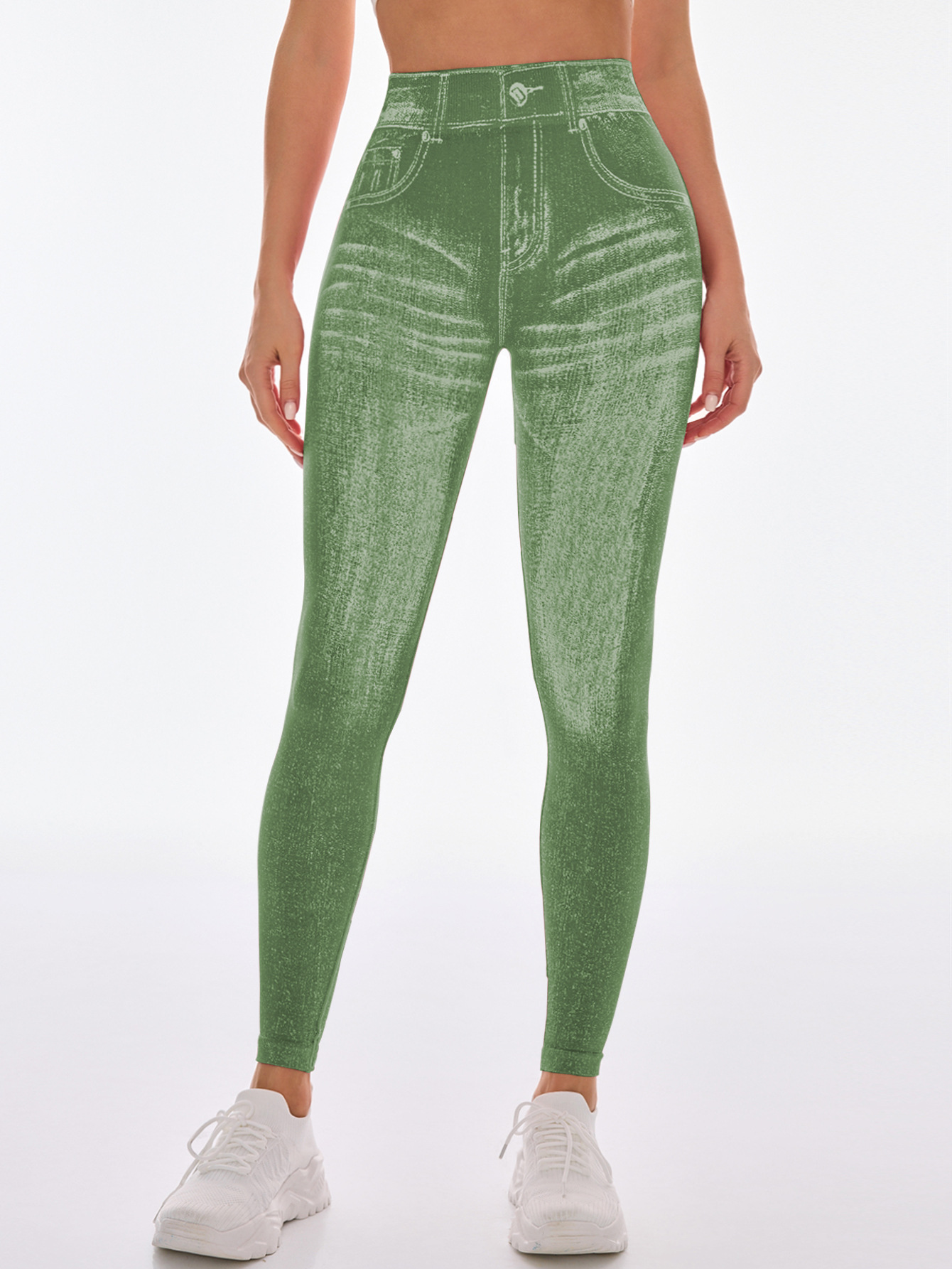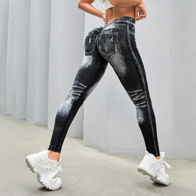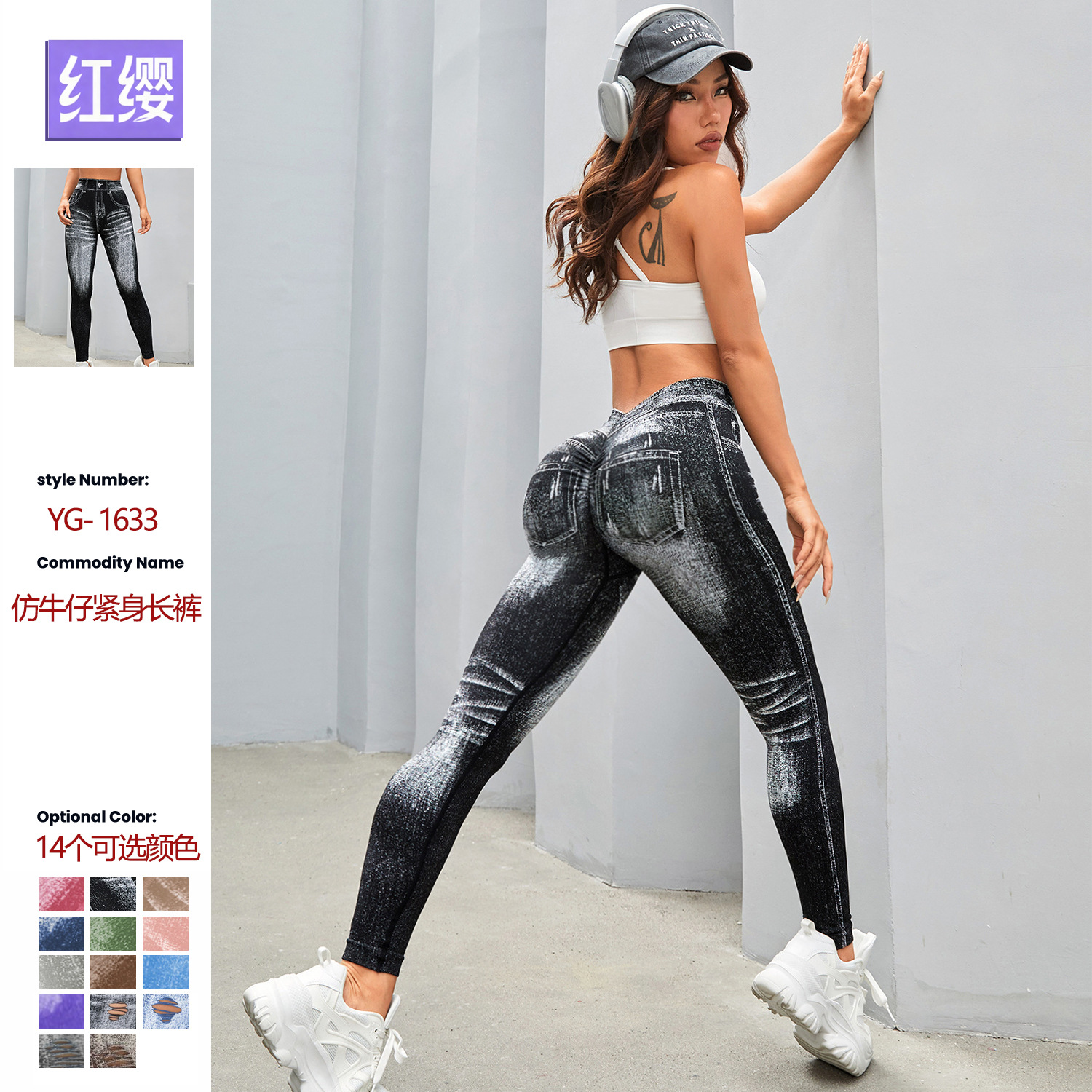 Бесшовные женские леггинсы Muyao из имитации денима для йоги, с V-образным вырезом на талии, подтягивающие ягодицы, быстросохнущие, облегающие, для бега, спорта и фитнеса, длинные.