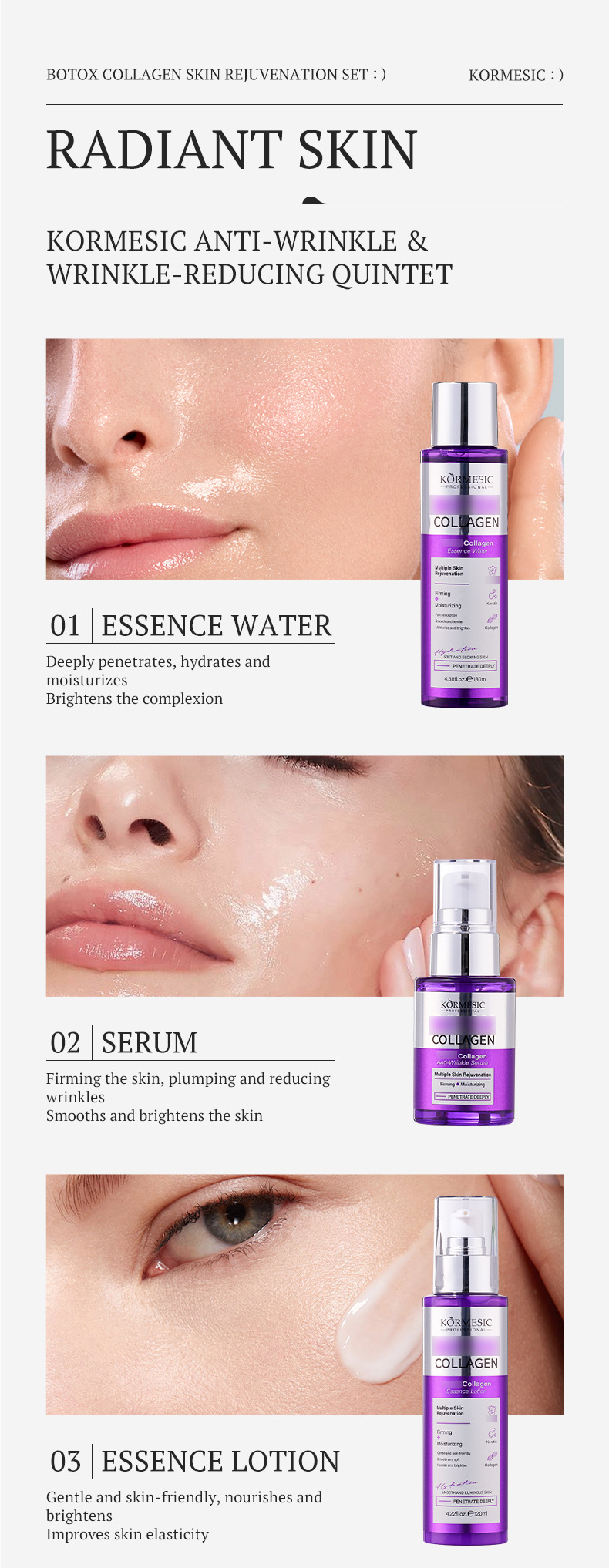 KORMESIC коллагеновая пятикомпонентная серия для ухода за кожей лица, оптовые поставки для трансграничного экспорта от производителей.